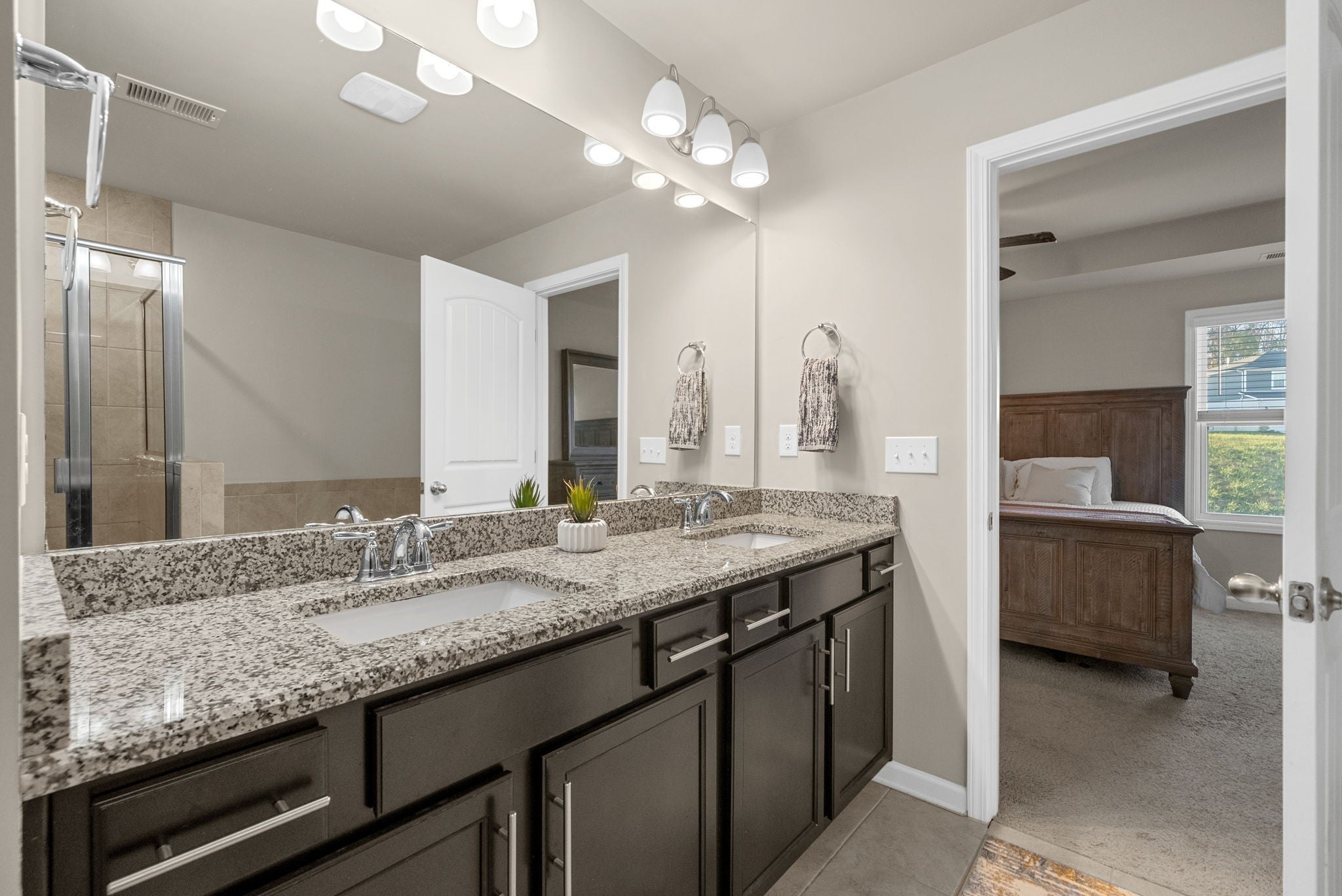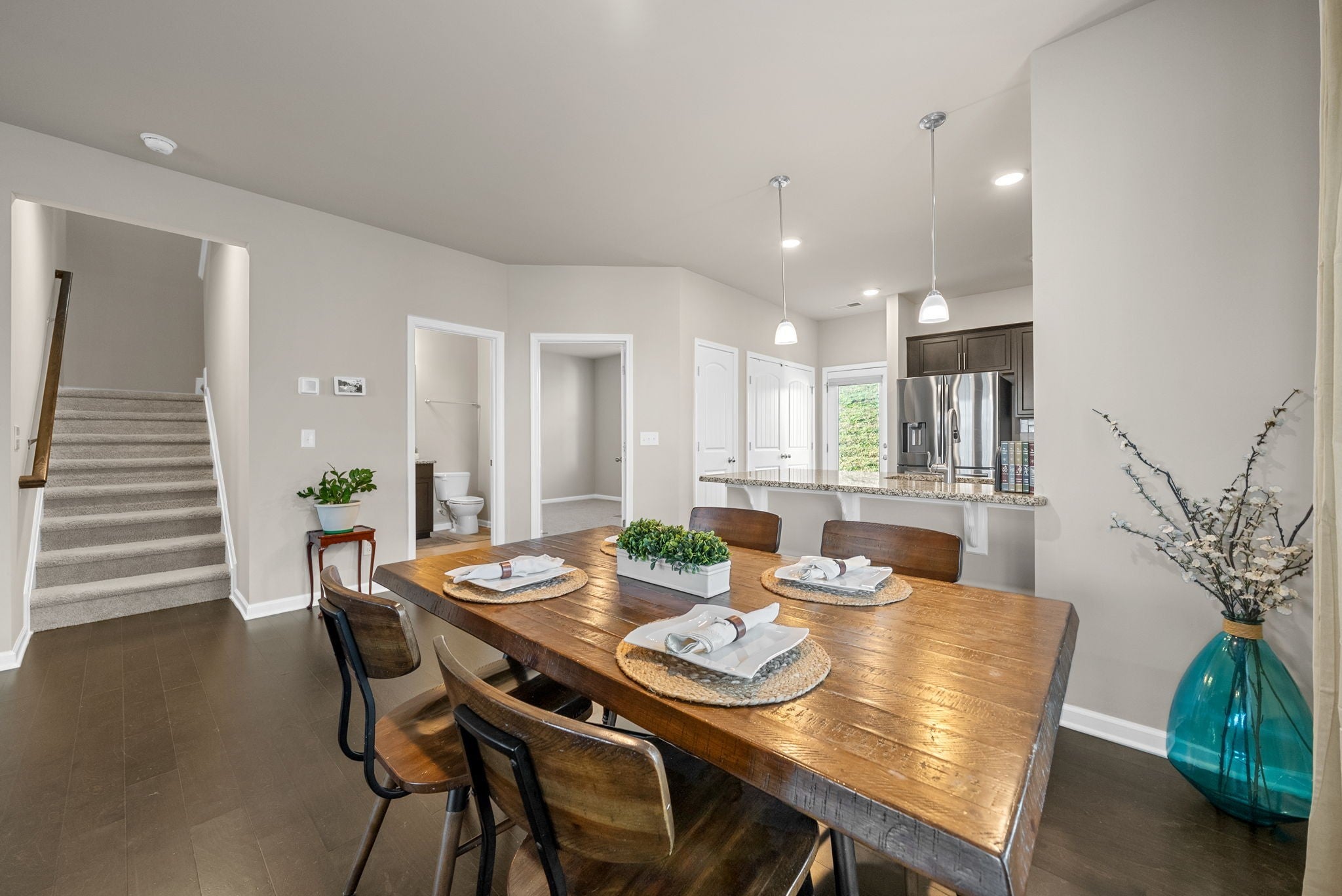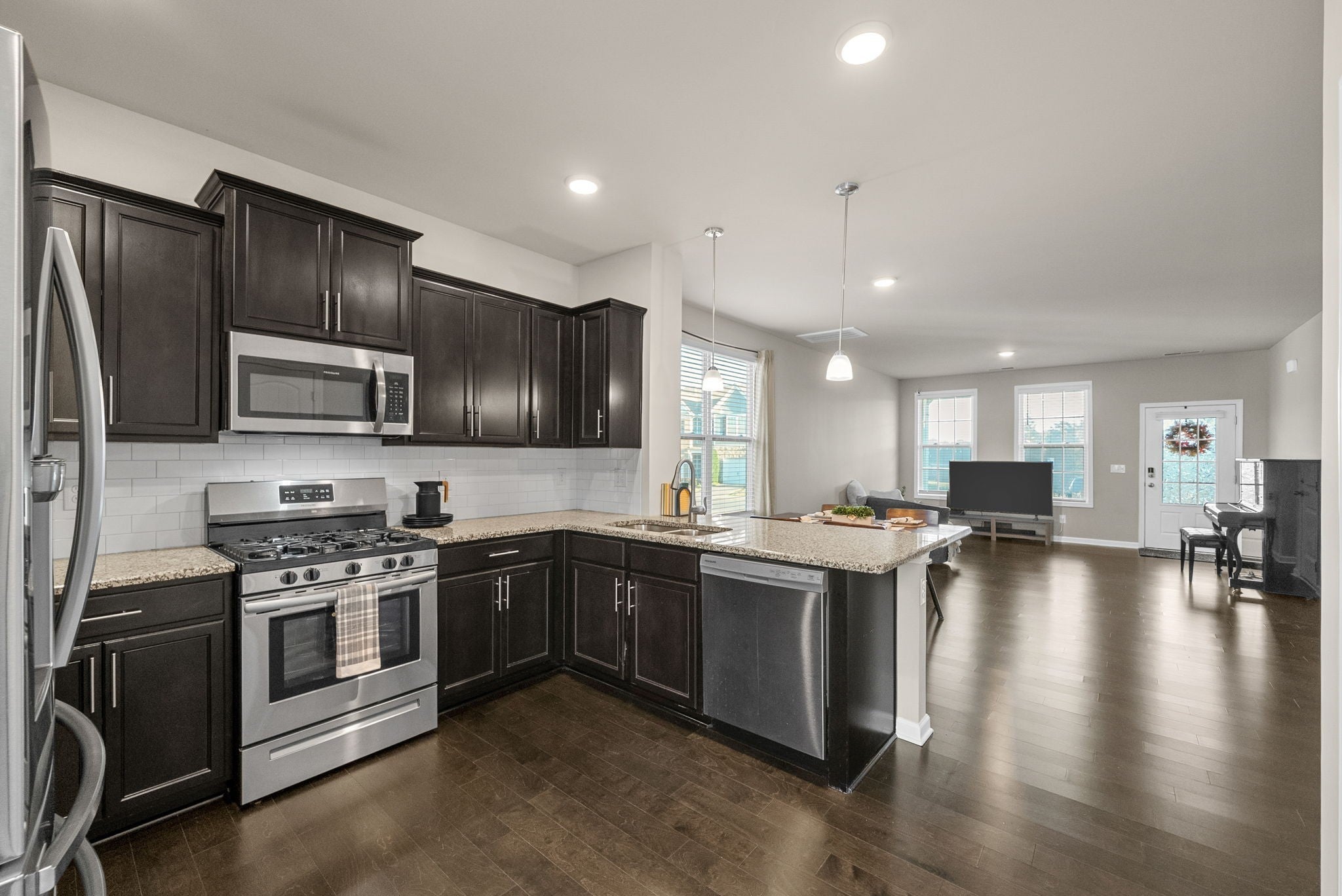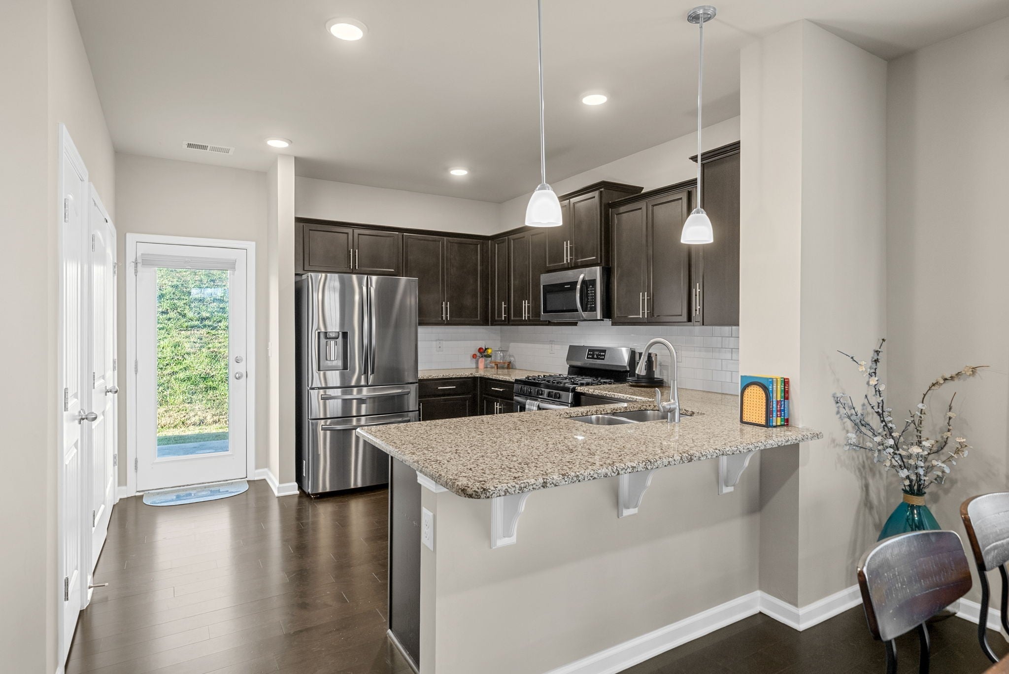 Welcome to this elegant end-unit townhome in the highly desirable Woodmont community! The open floor plan features hardwood floors, granite countertops, tile backsplash, and stainless steel appliances. A main-level guest suite with a full bath offers flexibility for visitors, a home office, or multi-generational living. Upstairs, the spacious primary suite includes vaulted ceilings, a walk-in closet, double vanities, a soaking tub, and a tiled shower. Enjoy maintenance-free living with the HOA covering exterior upkeep, lawn care, and pool access. Just steps from the community pool and guest parking—super convenient for you and your guests! Ideally located just minutes from I-24, shopping, dining, and Paul Johns Park.