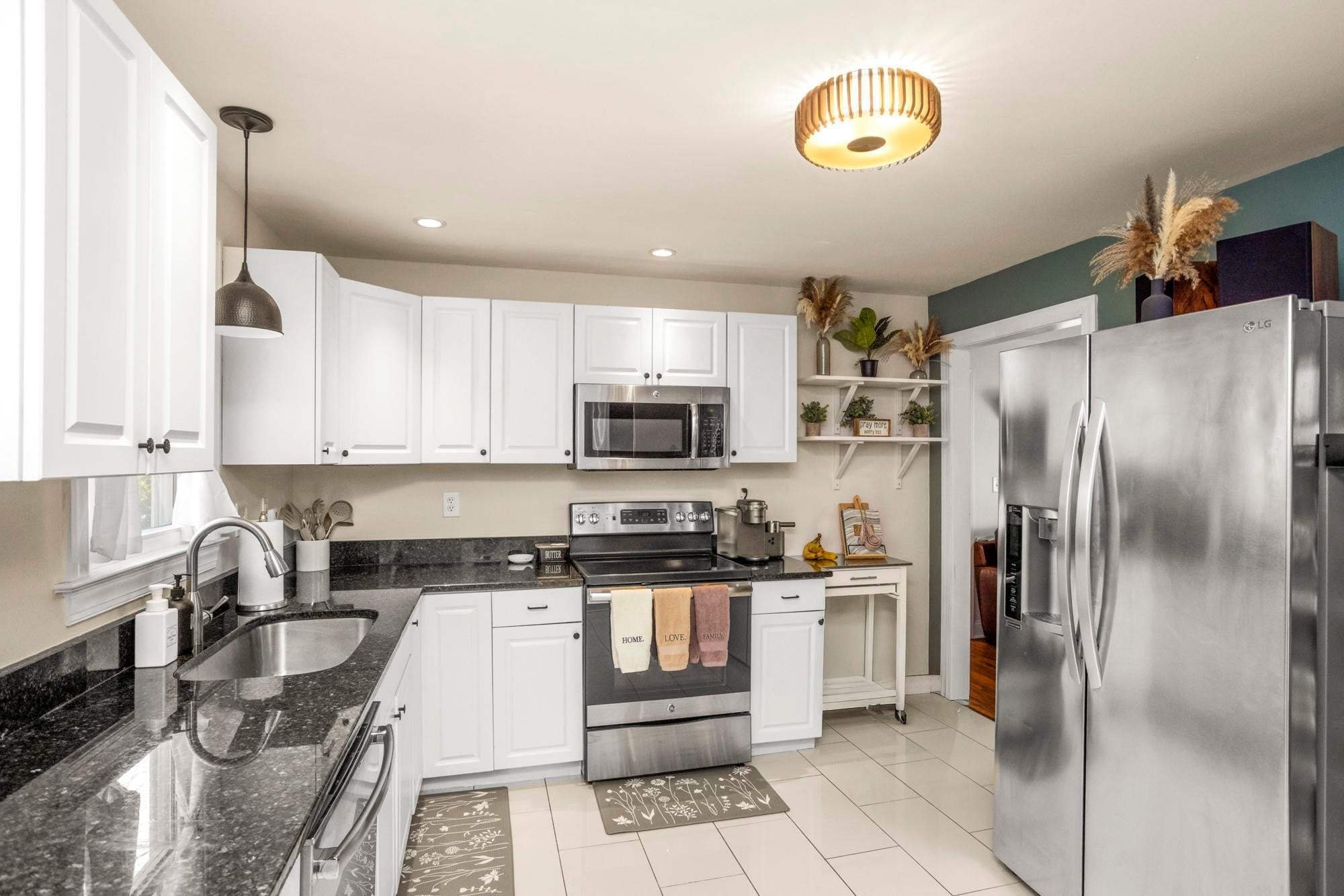 - Built-In Electric Oven, Built-In Electric Range, Dishwasher, Disposal, Dryer, Microwave, Refrigerator, Stainless Steel Appliance(s), Washer