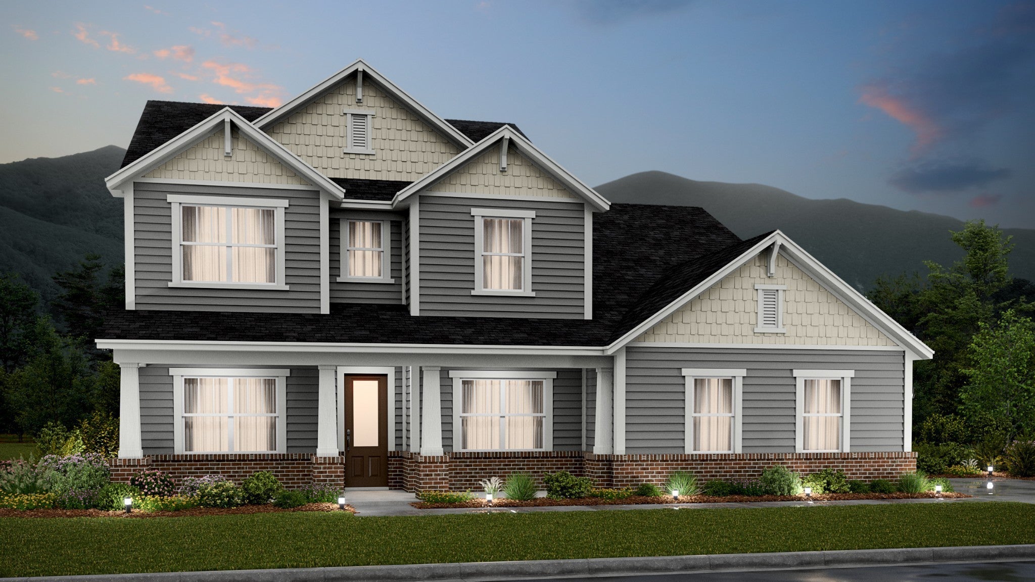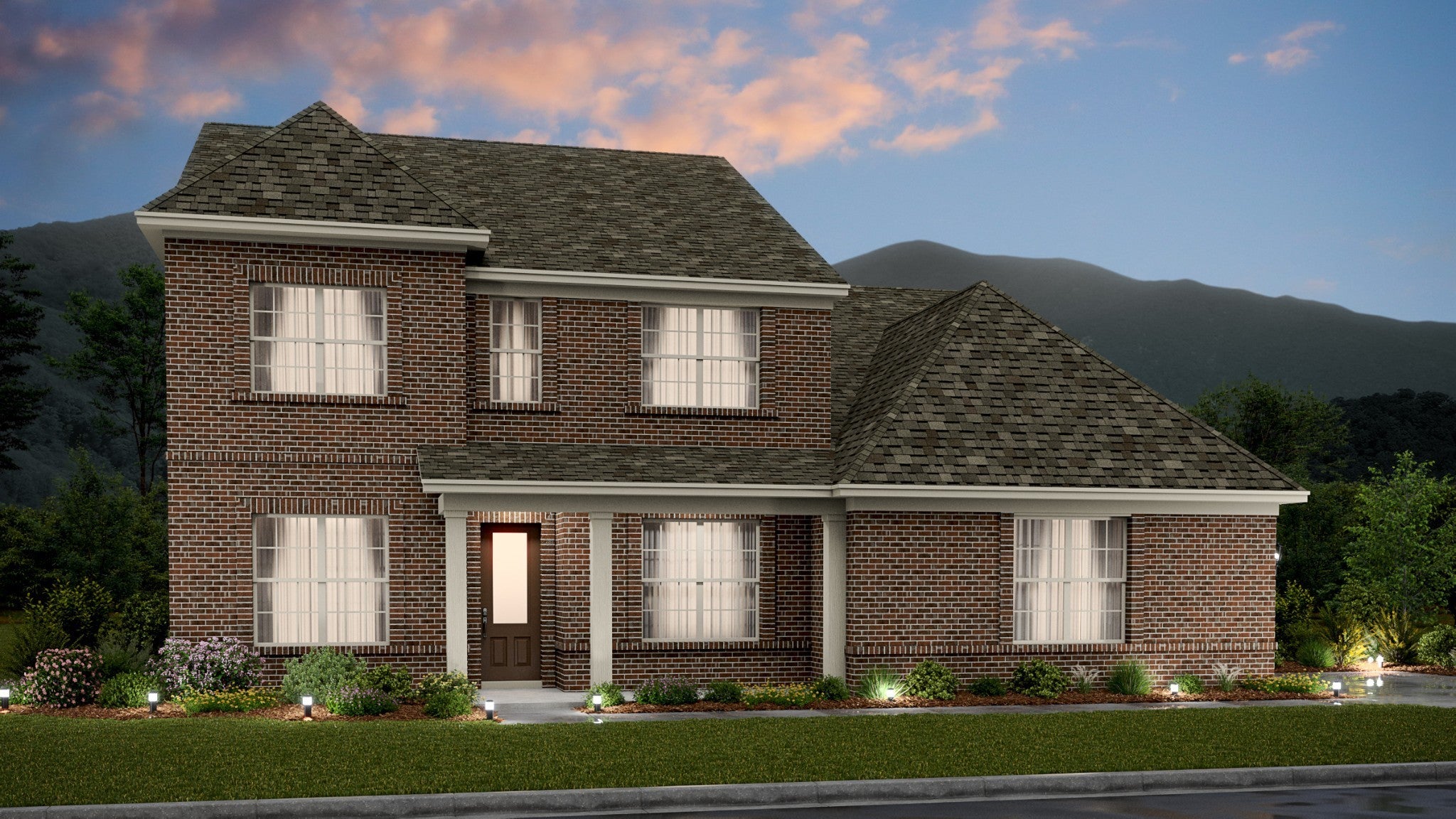 The first floor of this two-story home shares an open layout between the kitchen, nook and family room for easy entertaining and access to the patio for outdoor lounging. A more formal dining room is at the front of the home for dinner parties and a study to work from home. Two bedrooms are on the first floor, including a luxe owner's suite and a secondary bedroom, ideal for overnight guests. Upstairs are three secondary bedrooms, a versatile game room and a media room for added living space. *Images from a furnished model of this home. Actual configuration and features may vary.