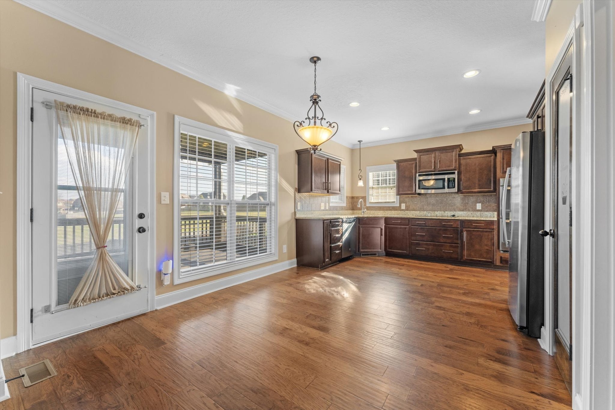 - Double Oven, Electric Oven, Electric Range, Dishwasher, Disposal, Ice Maker, Microwave