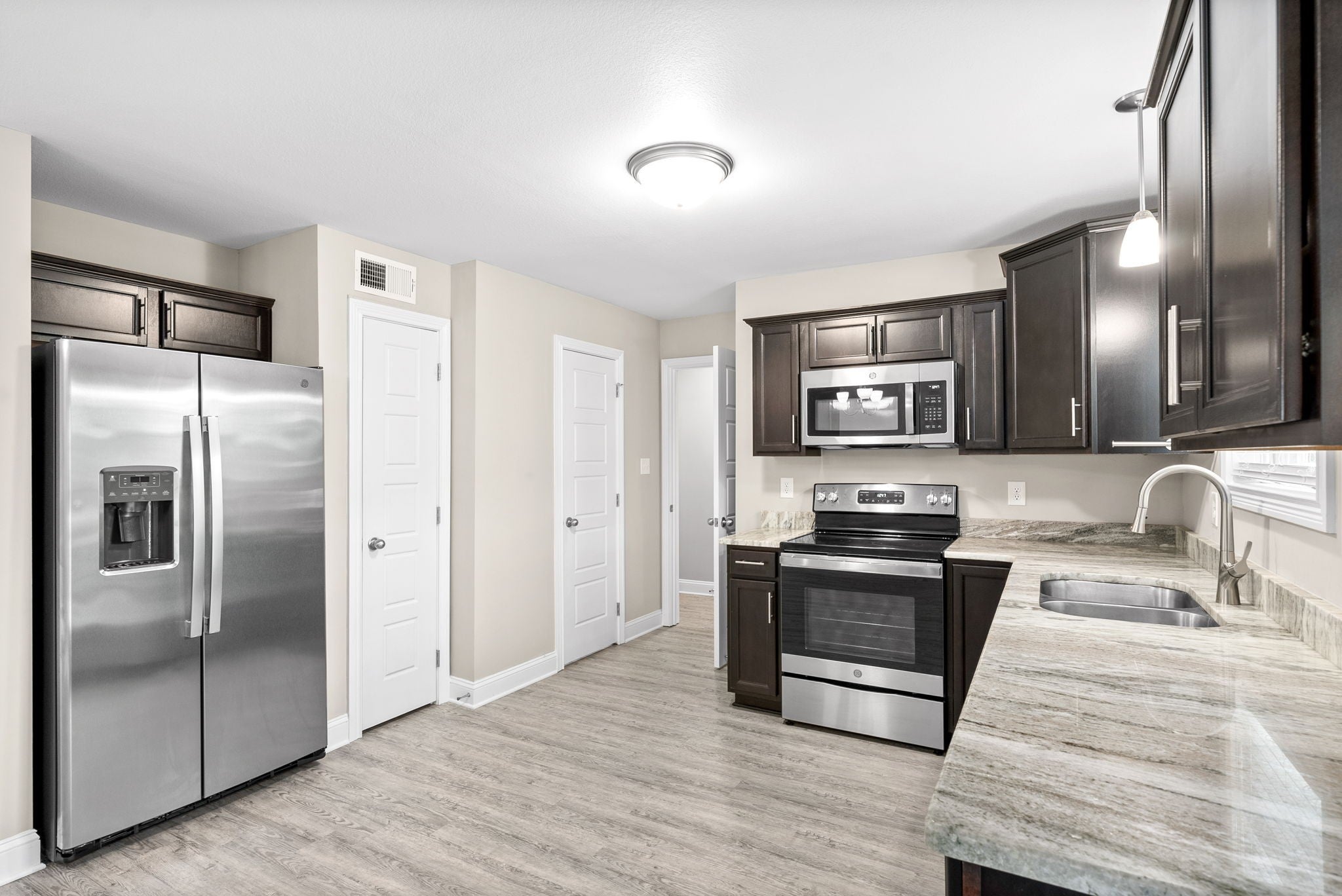 - Oven, Range, Dishwasher, Microwave, Refrigerator, Stainless Steel Appliance(s)