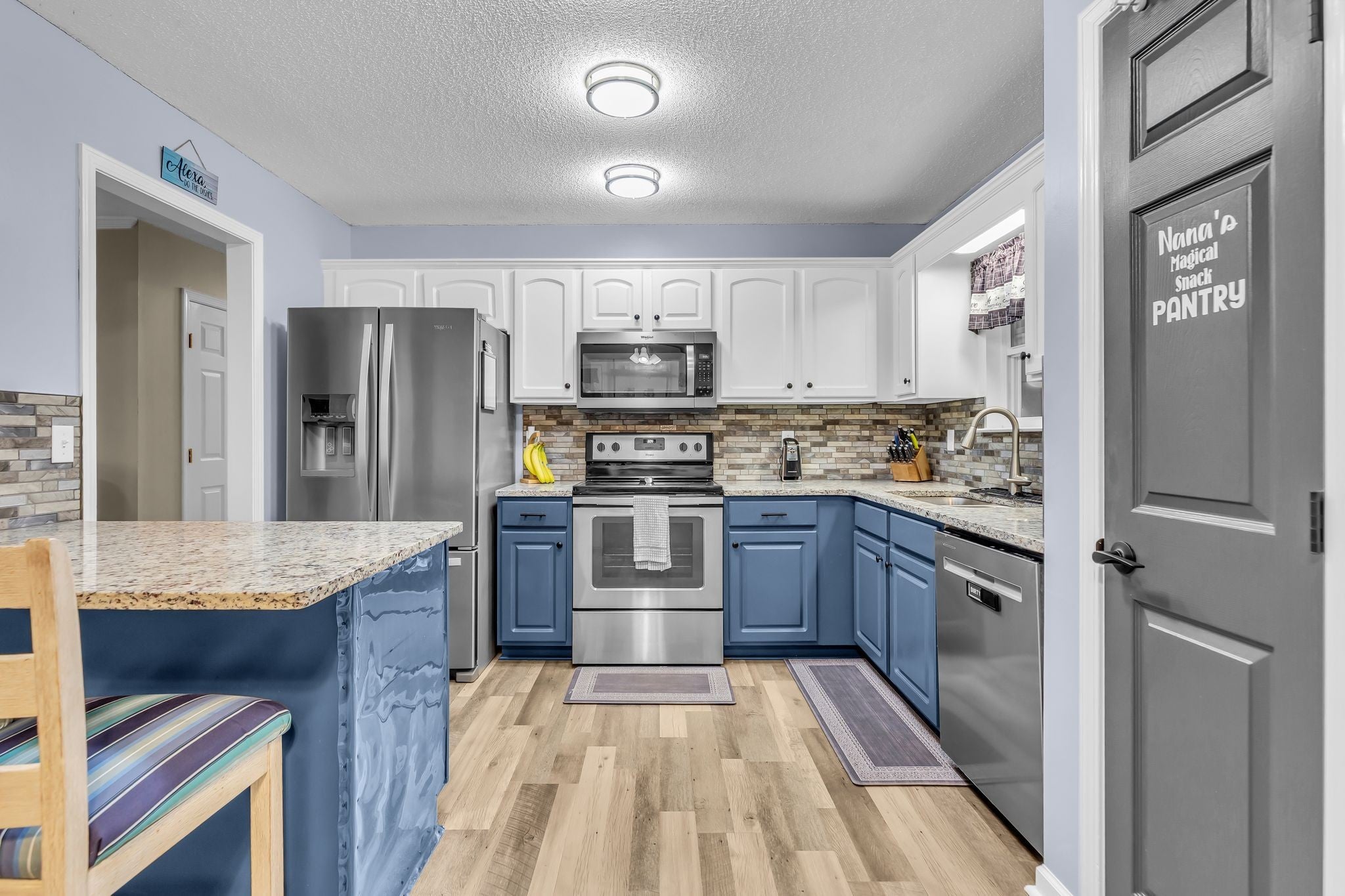 - Electric Range, Dishwasher, Microwave, Refrigerator