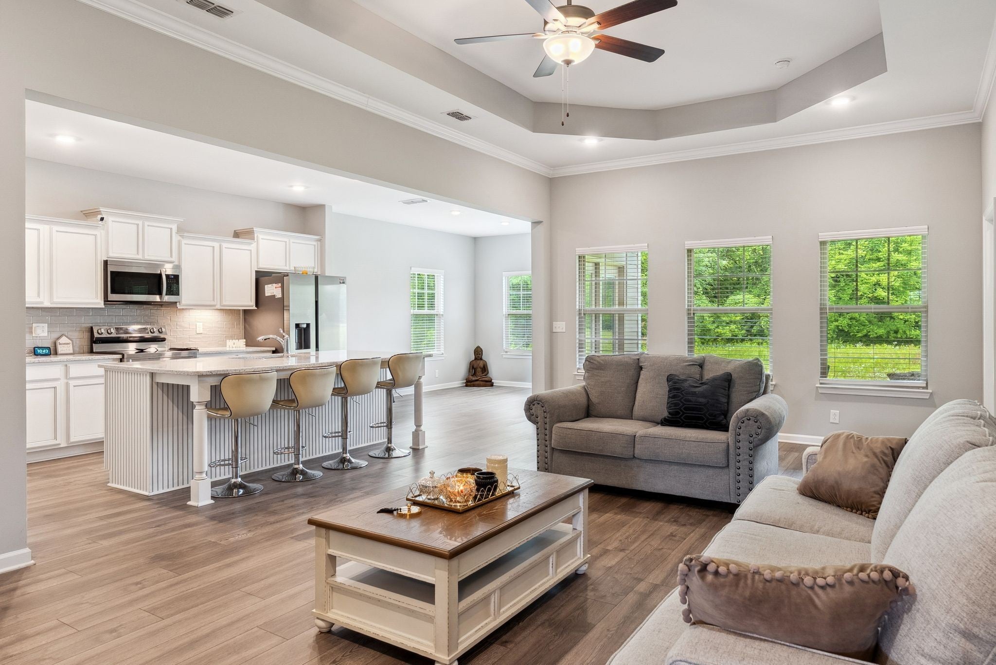 - Air Filter, Ceiling Fan(s), Extra Closets, High Ceilings, Open Floorplan, High Speed Internet, Kitchen Island