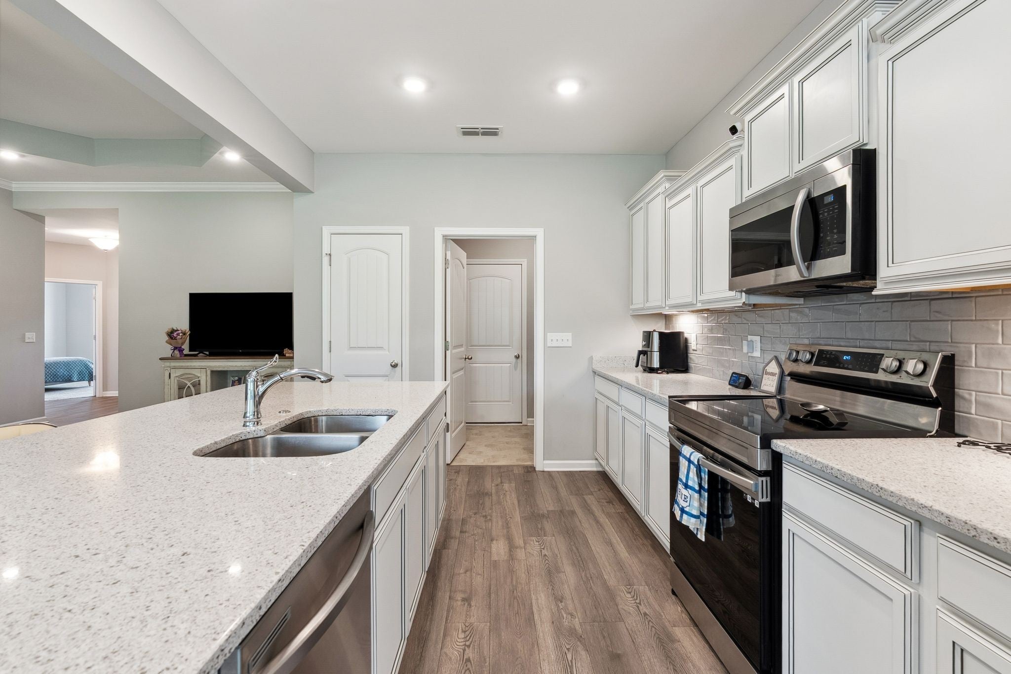 - Dishwasher, Ice Maker, Microwave, Refrigerator, Stainless Steel Appliance(s)