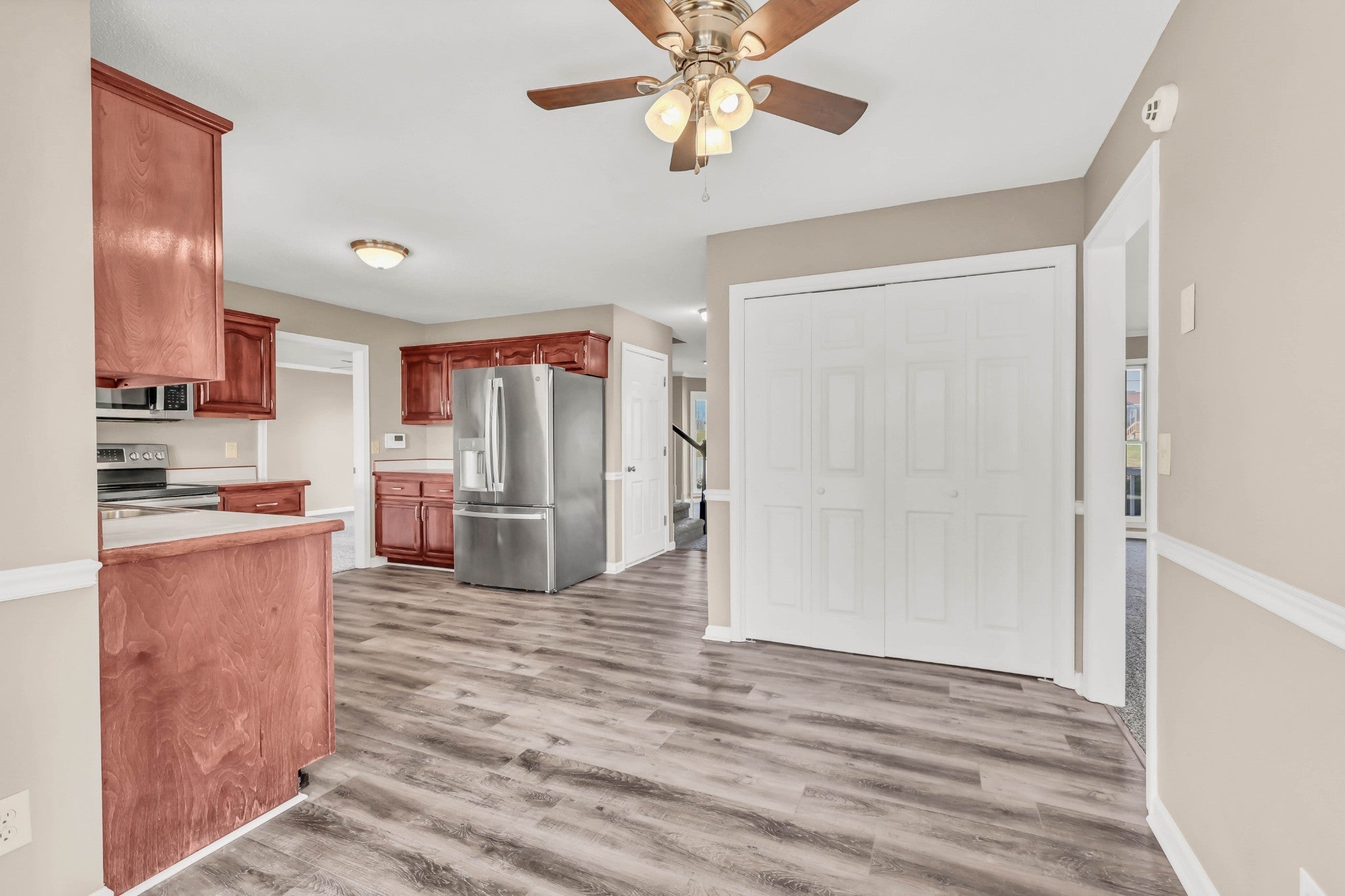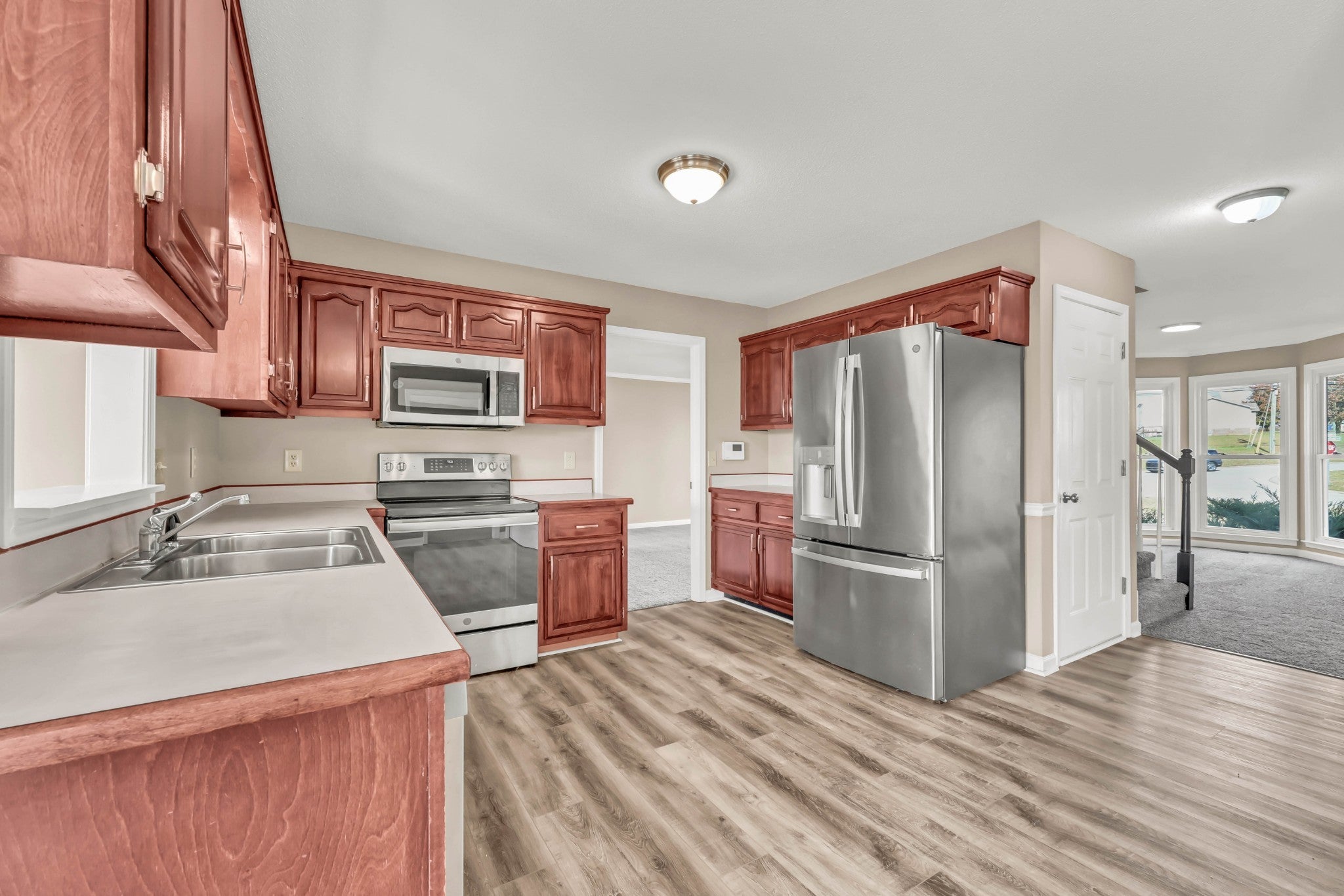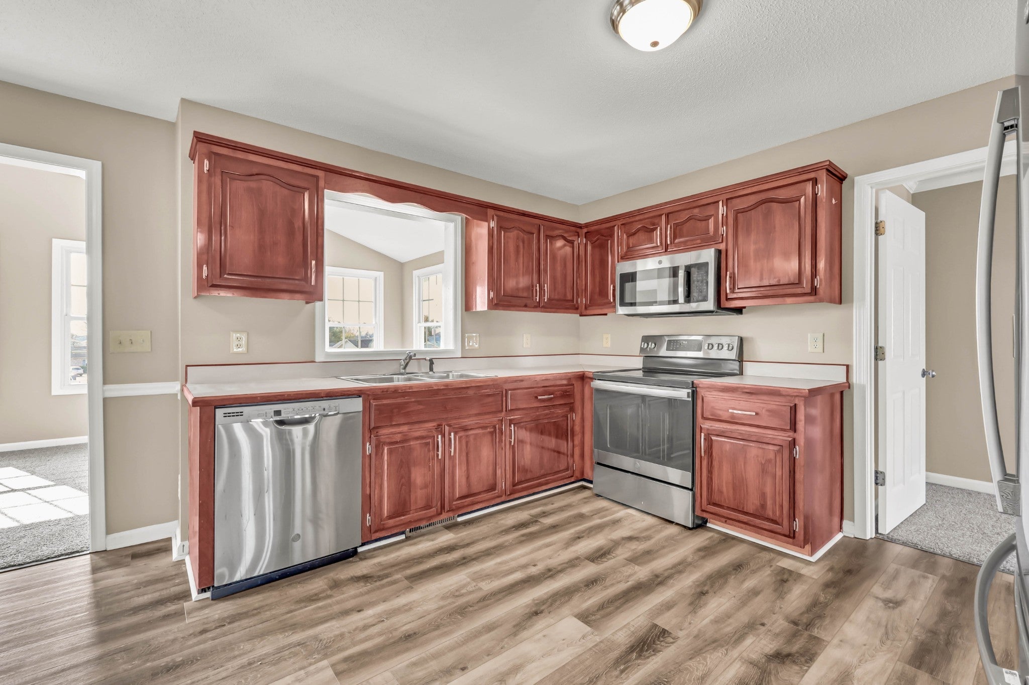 - Electric Oven, Electric Range, Dishwasher, Microwave, Refrigerator, Stainless Steel Appliance(s)