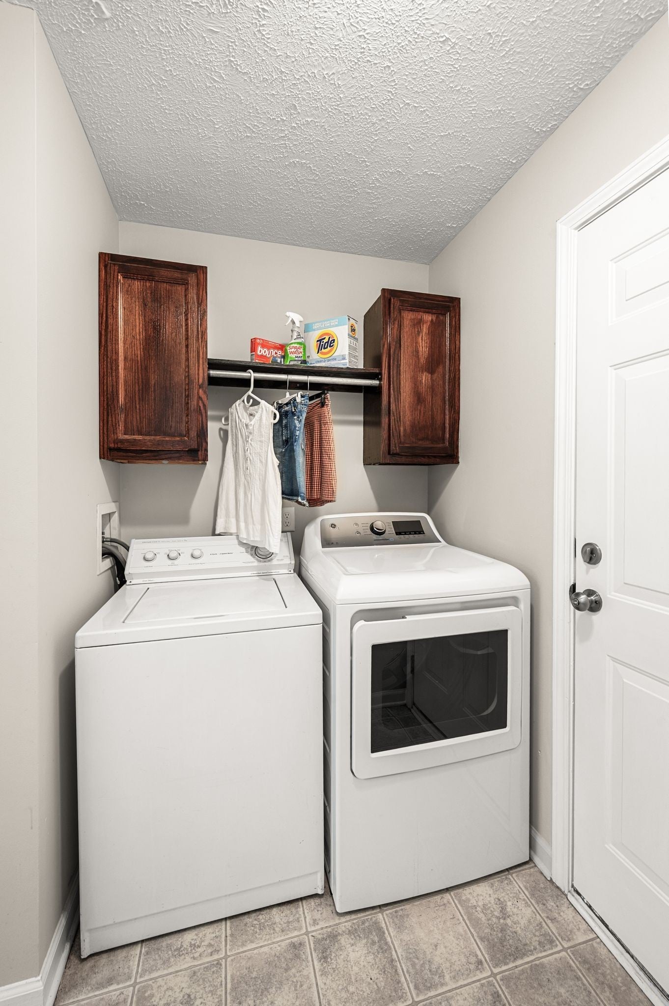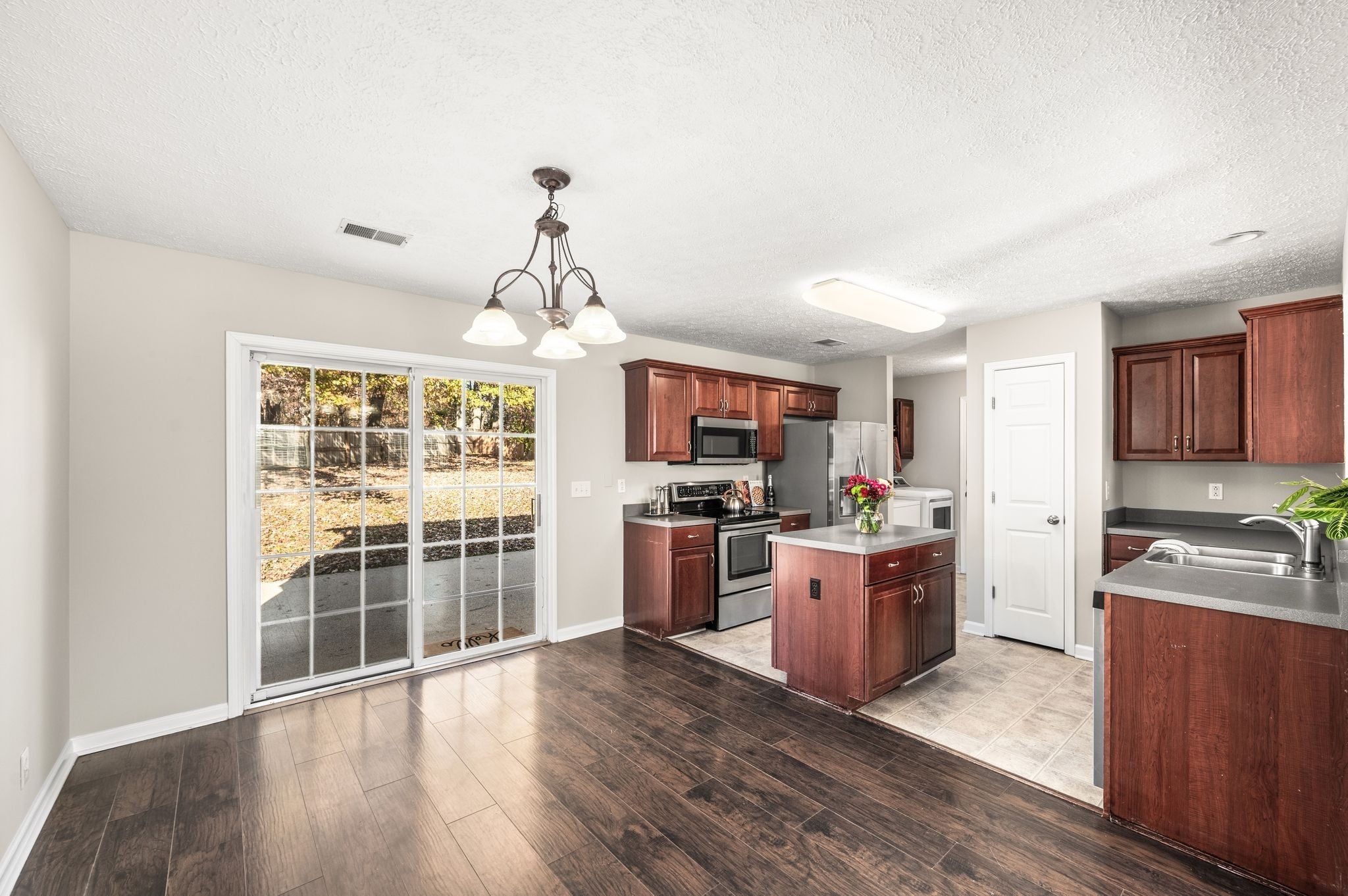 - Built-In Electric Range, Dishwasher, Disposal, Dryer, Microwave, Refrigerator, Stainless Steel Appliance(s), Washer