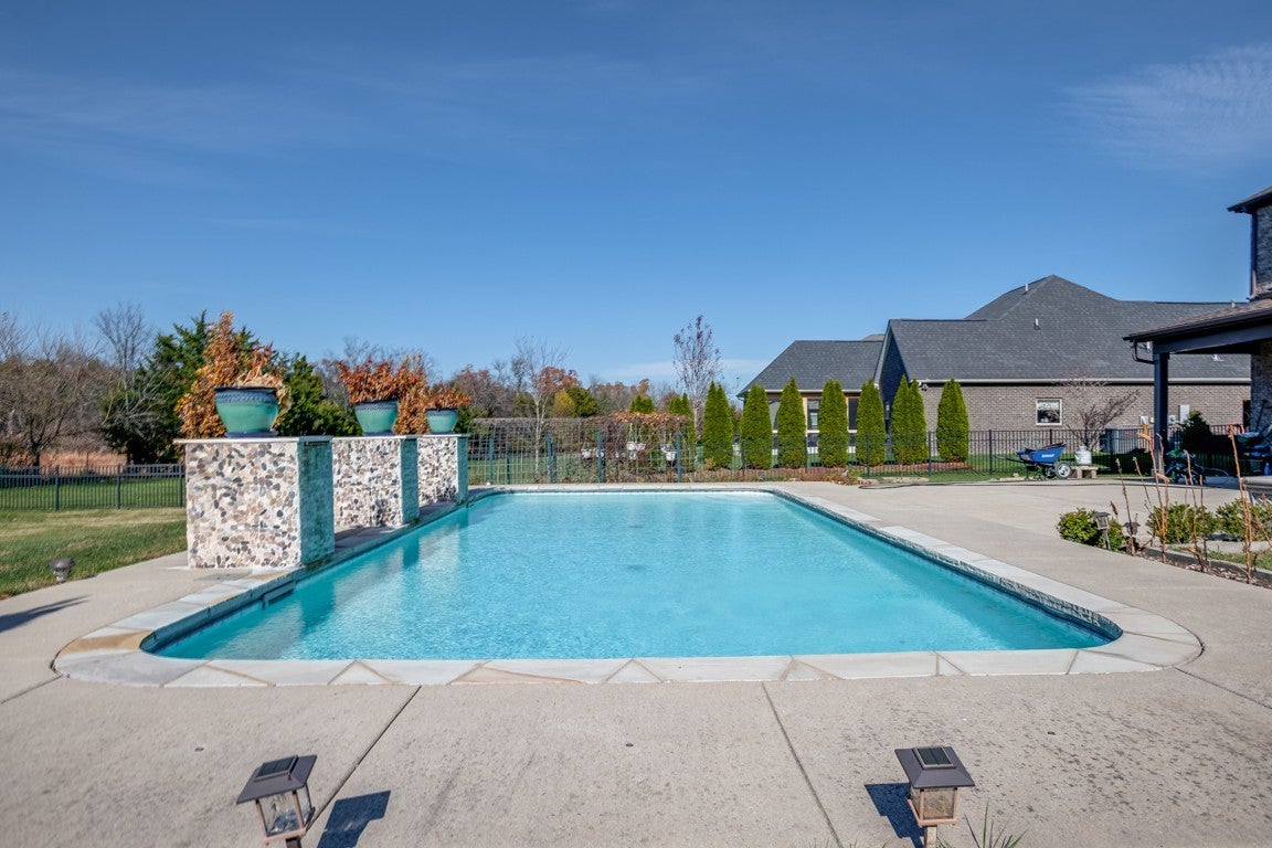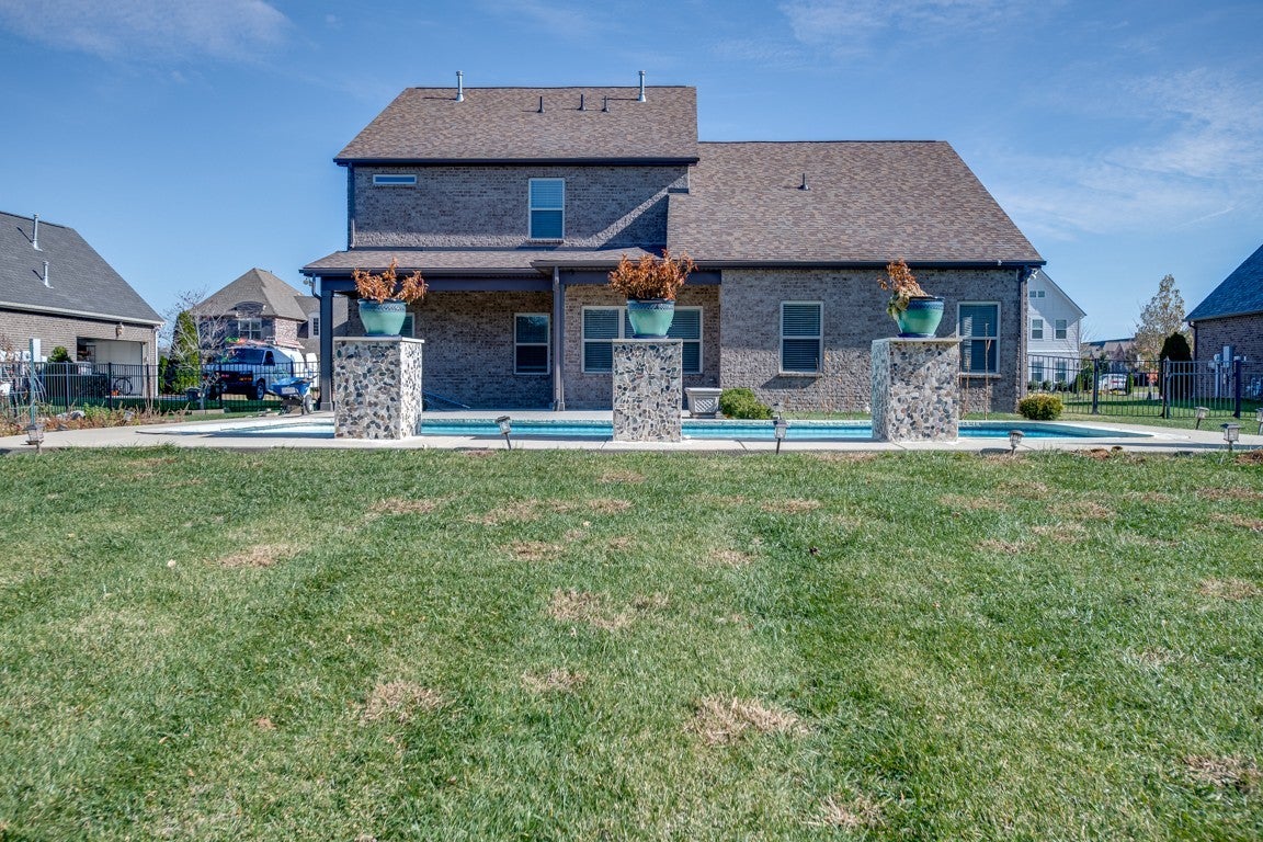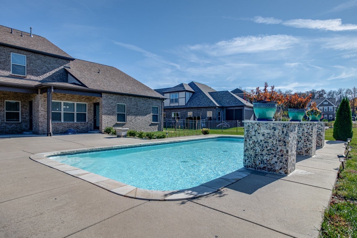 Experience Nolensville living at its finest with this stunning in-ground pool home on nearly half an acre in the heart of town. Offering over 3,700 sq ft, this residence features 4 bedrooms, 3.5 baths, and beautiful wood flooring throughout—no carpet anywhere. New roof. Sprinkler system inside home. Yard irrigation system. Tons of storage and extra large closets. Private office tucked off of living room. Backs up.to.greenway. The primary suite is conveniently located on the main level, while the second floor offers three exceptionally spacious bedrooms and a large bonus room. The kitchen is a true standout with an oversized island, built-in double oven, gas cooktop, stainless steel appliances, and abundant storage—perfect for everyday convenience or hosting gatherings. High ceilings, a gorgeous entry staircase, walk-in closets, and a cozy living-room fireplace add both charm and functionality. Designed for entertaining, the open floor plan flows effortlessly to a massive covered outdoor patio overlooking a level backyard with plenty of green space. Large cultivates garden ready for next years crops. Homes with this amount of land and square footage in Nolensville are truly rare. Enjoy relaxing summer days by your own private pool with waterfall towers.. Host holiday celebrations in your chef’s kitchen—the possibilities are endless in this exceptional property.