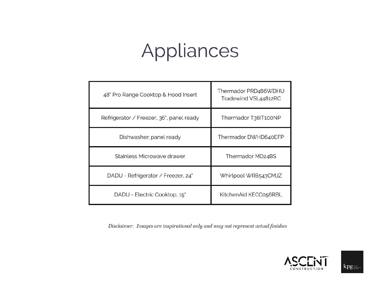 - Appliances: