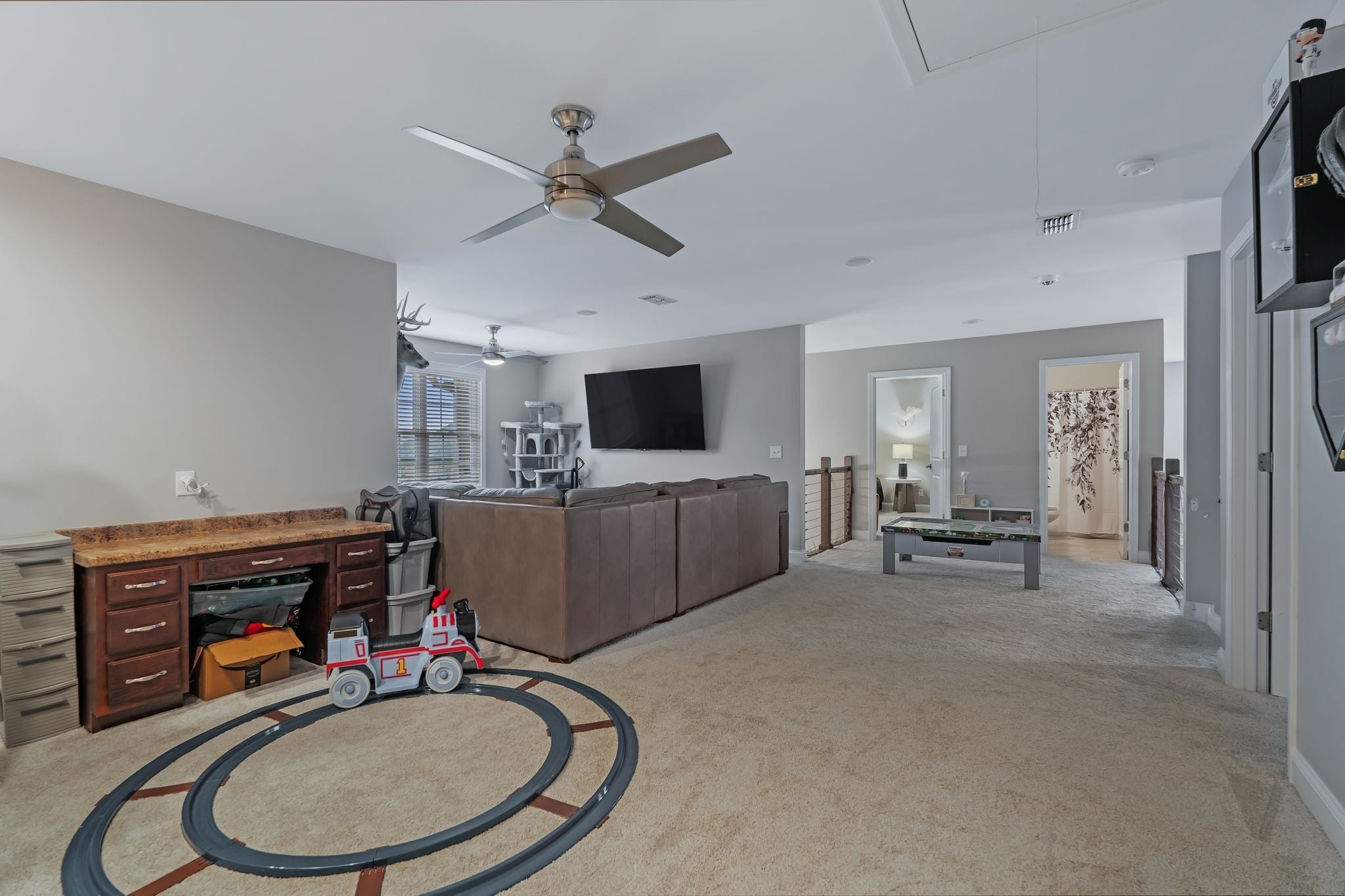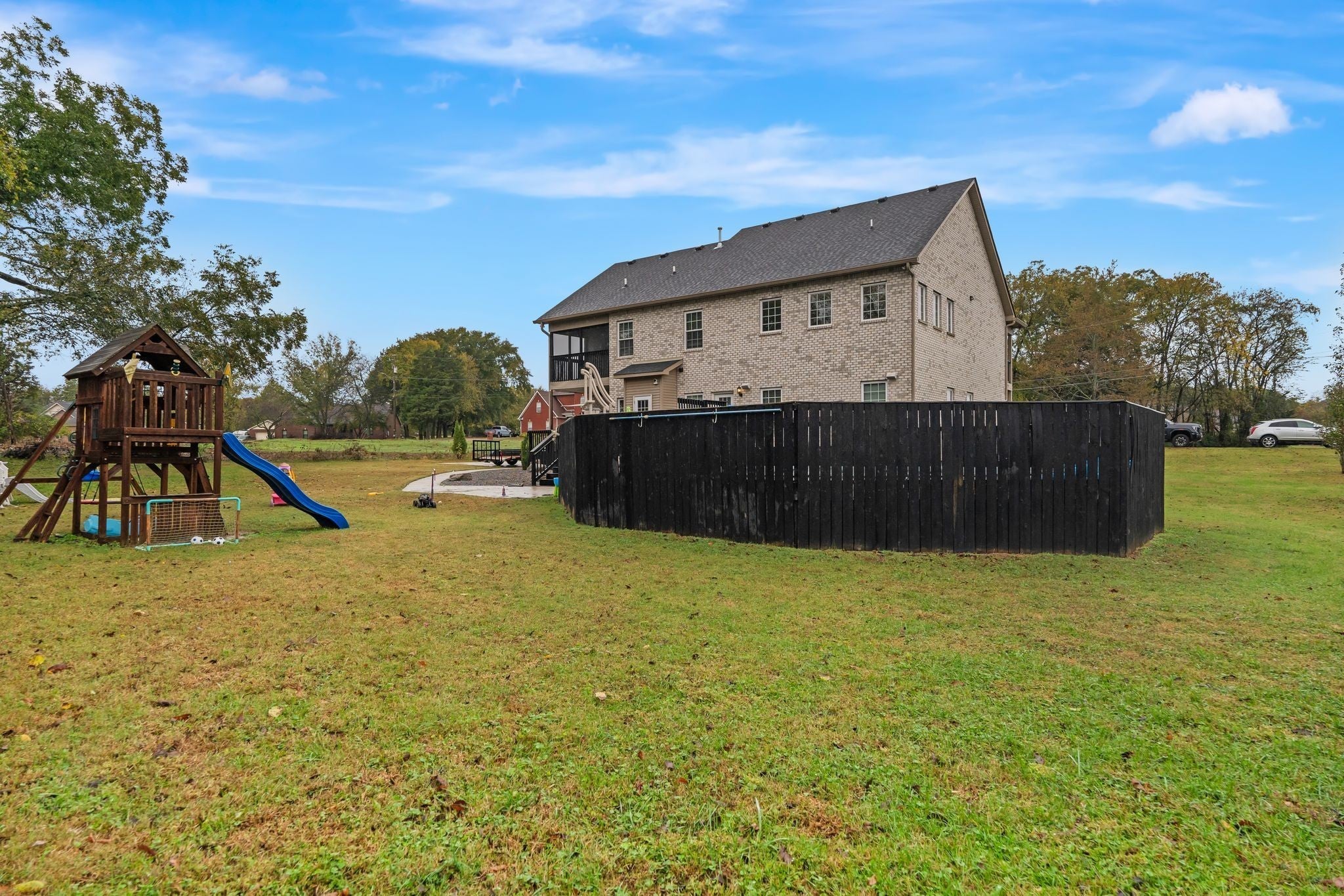 Beautiful all-brick home located on 1.3 acres, featuring hardwood floors throughout the main level and an open-concept living room that flows into the kitchen, perfect for entertaining. The second floor includes an elegant balcony off multiple bedrooms, offering a great spot to enjoy the outdoors. Upstairs you’ll find three bedrooms, a bonus room and a theater room. Enjoy evenings on the back deck or under the pergola by the fire pit with family and friends. The driveway was recently sealed, and all security hardware stays with the property.