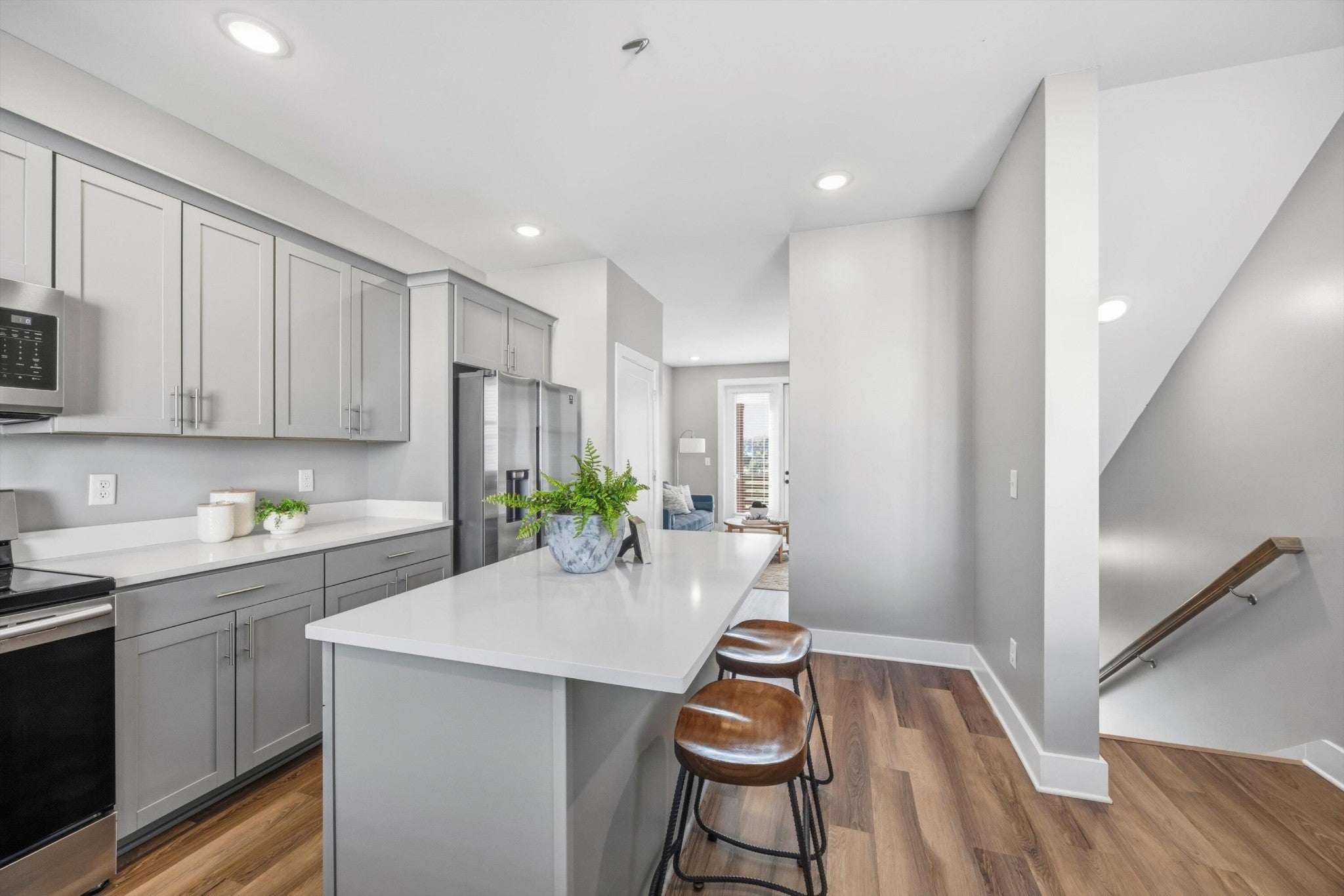 This Stockyard Place end-unit townhome nestled at the base of Lookout Mountain, offering sweeping mountain views from all three levels. Perfectly situated in the sought-after South Broad District, this home places you just moments from the St. Elmo Riverwalk entrance, blending natural beauty with city convenience. The thoughtfully designed three-story layout features 2 bedrooms, 2 bathrooms, and bright, open living spaces that invite comfort and style. The modern kitchen boasts stainless steel appliances and sleek finishes, flowing effortlessly into spacious living areas that open to balconies perfect for taking in the scenic mountain backdrop. The top floor is dedicated to the owner's suite, complete with a private balcony, walk-in closet, and en-suite bath. Residents enjoy access to a community pool and the convenience of being minutes from downtown Chattanooga, local restaurants, boutiques, and endless outdoor recreational, whether by bike, on foot, or along the riverwalk. Discover mountain views, modern living, and unmatched location all in one exceptional home.
