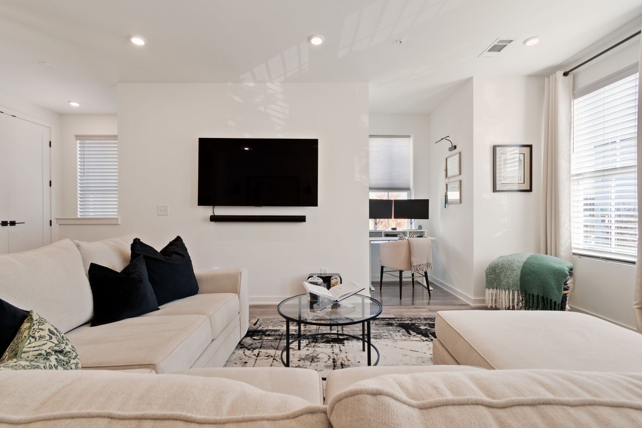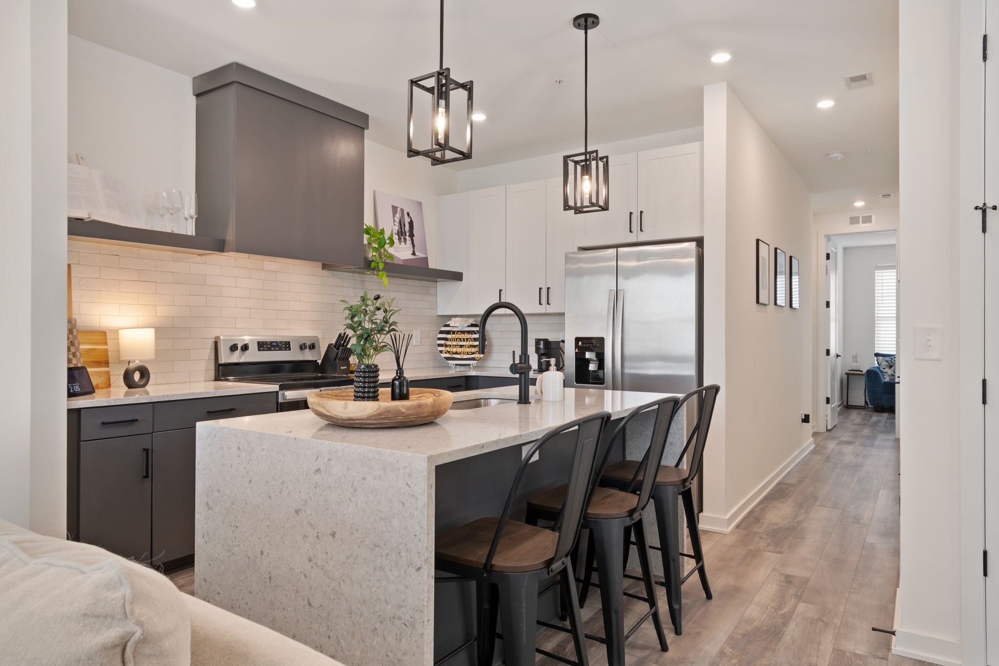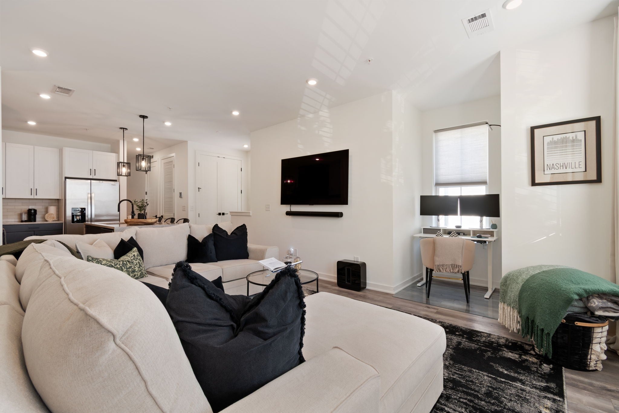 Enjoy carefree living in THE NATIONS! Edison Park features modern design and finishes, low maintenance, community amenities such as Bocce Court and Firepit, and convenience to all Nashville has to offer. Walk to trendy cafes, restaurants, and coffee houses. This 2 BR/2BA End Unit features Open Concept Living, Natural Light Filled Rooms, Eat-in Kitchen with Waterfall Island, SS kitchen appliances, and Stacked Front Load LG Smart Washer and Dryer. Spacious Living Room features custom Dry Bar with Beverage Fridge and Work from Home Desk Nook. Primary Suite includes large Walk-in Closet, Oversized Walk-in Tile Shower, and Double Vanity. Beautiful wide-plank Luxury Vinyl Flooring. Front Foyer has Drop Zone and Rear Entry Two-Car Tandem Garage with EV Charger. Dog Friendly! Just over a half-mile to England Park Greenways. Short 5 minute drive to TSU, 10 minutes to Downtown, and 25 minutes to BNA. For more info on The Nations, visit https://www.thenations615.com