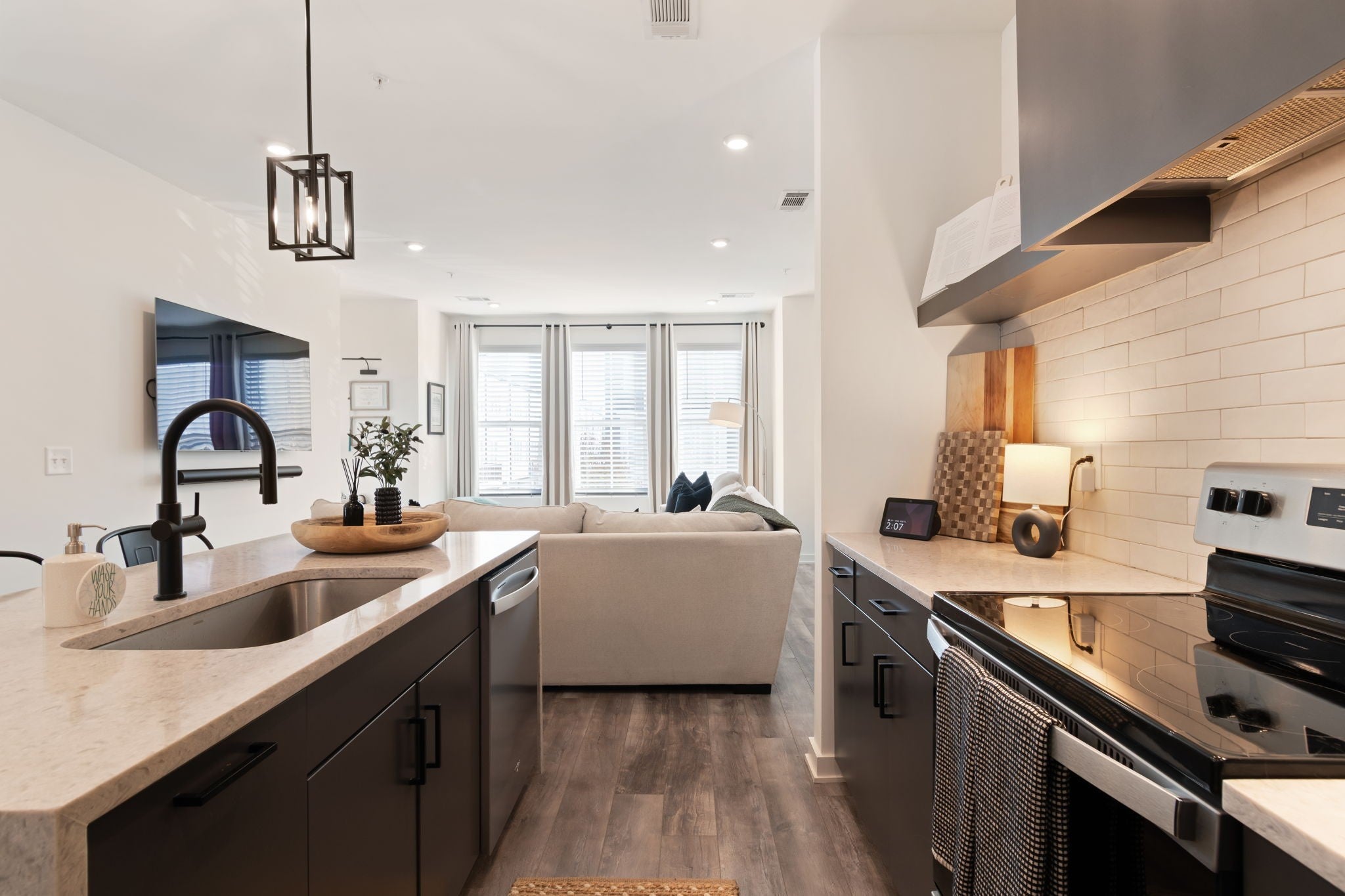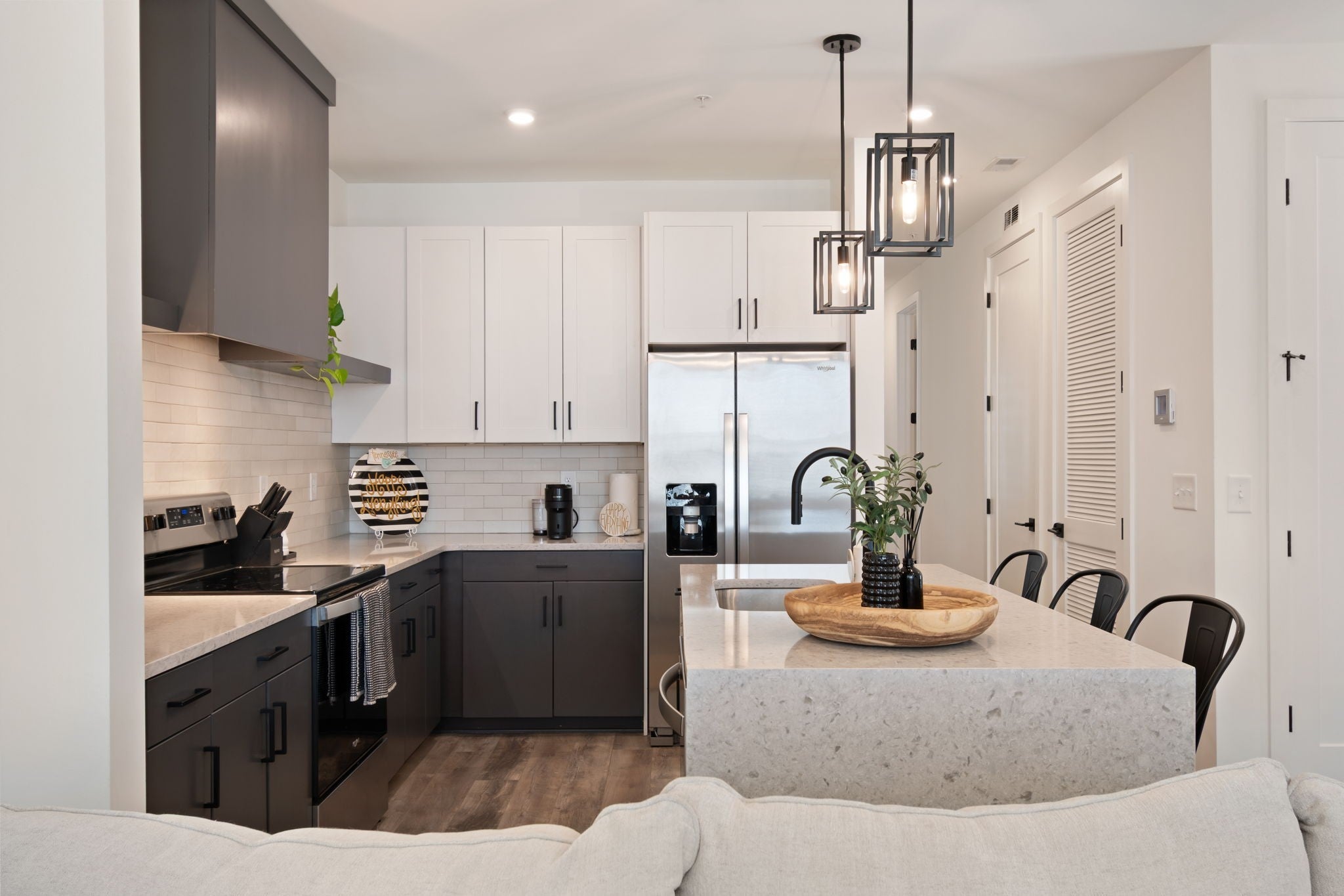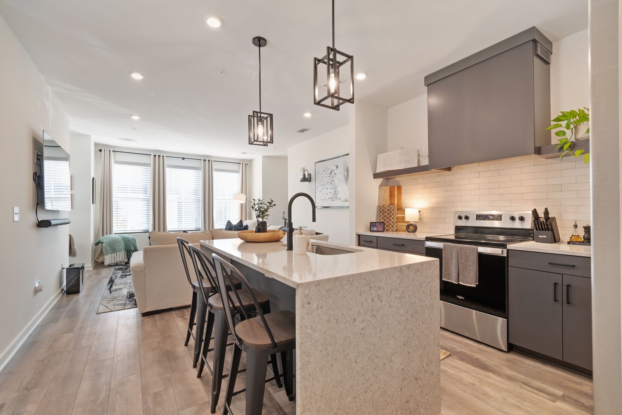Enjoy carefree living in THE NATIONS! Edison Park features modern design and finishes, low maintenance, community amenities such as Bocce Court and Firepit, and convenience to all Nashville has to offer. Walk to trendy cafes, restaurants, and coffee houses. This 2 BR/2BA End Unit features Open Concept Living, Natural Light Filled Rooms, Eat-in Kitchen with Waterfall Island, SS kitchen appliances, and Stacked Front Load LG Smart Washer and Dryer. Spacious Living Room features custom Dry Bar with Beverage Fridge and Work from Home Desk Nook. Primary Suite includes large Walk-in Closet, Oversized Walk-in Tile Shower, and Double Vanity. Beautiful wide-plank Luxury Vinyl Flooring. Front Foyer has Drop Zone and Rear Entry Two-Car Tandem Garage with EV Charger. Dog Friendly! Just over a half-mile to England Park Greenways. Short 5 minute drive to TSU, 10 minutes to Downtown, and 25 minutes to BNA. For more info on The Nations, visit https://www.thenations615.com