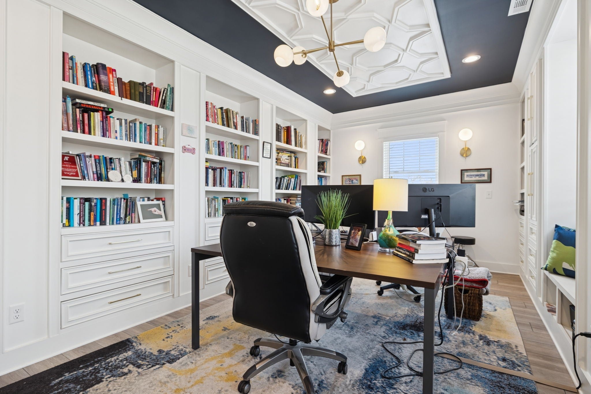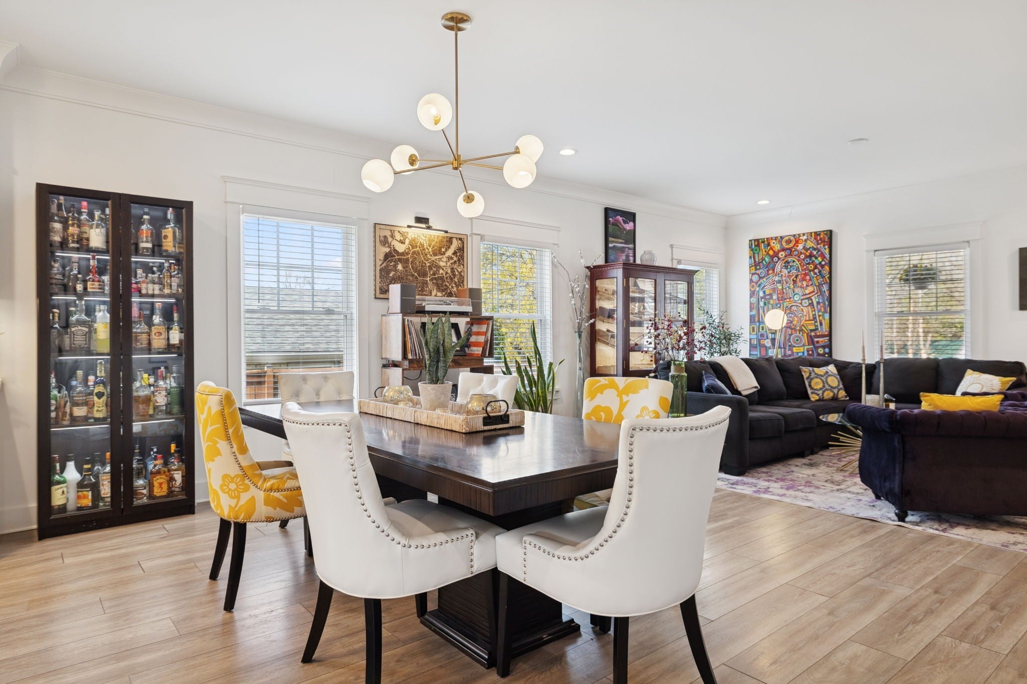 - Bookcases, Built-in Features, Ceiling Fan(s), Open Floorplan, Walk-In Closet(s), Wet Bar