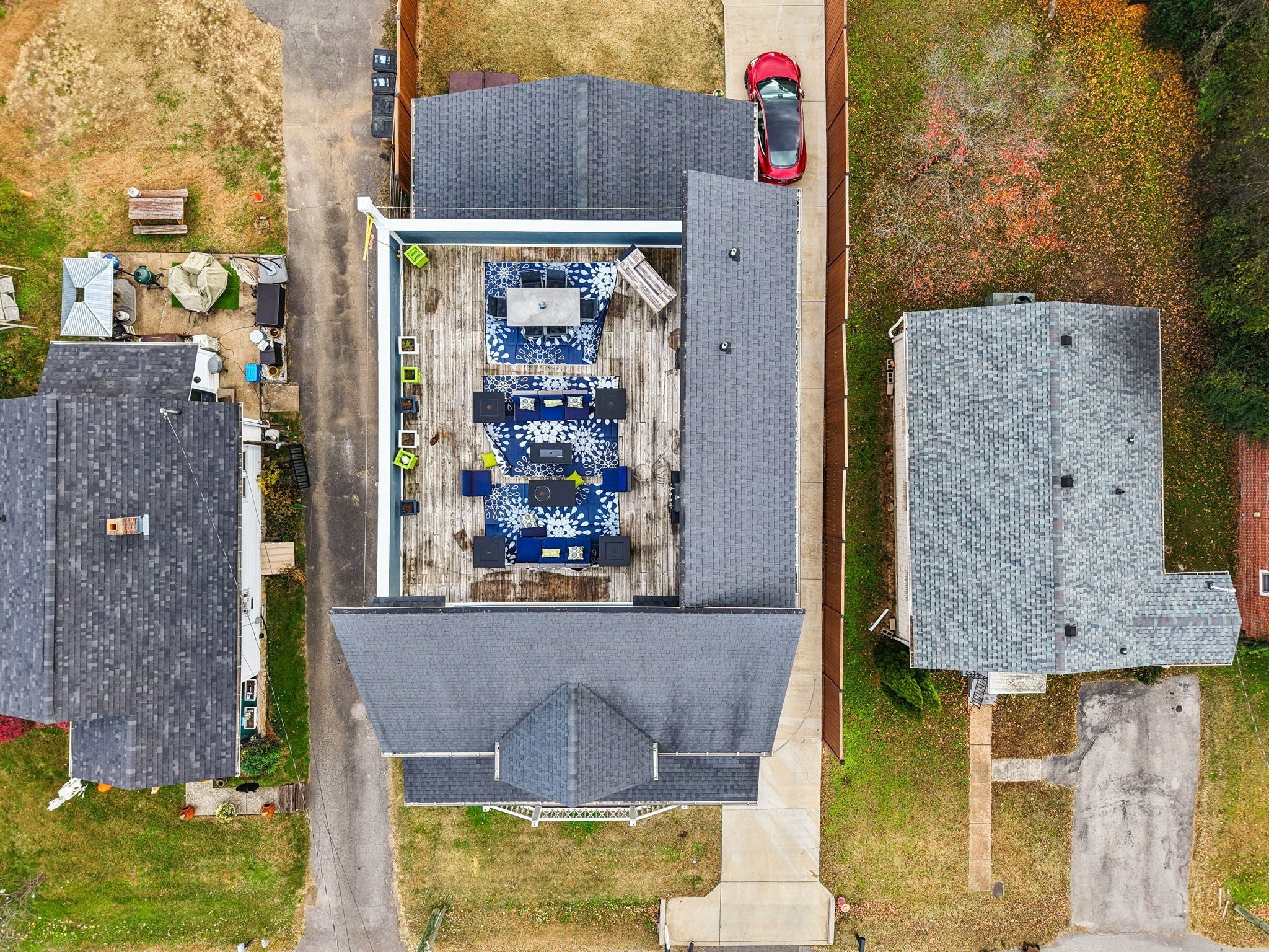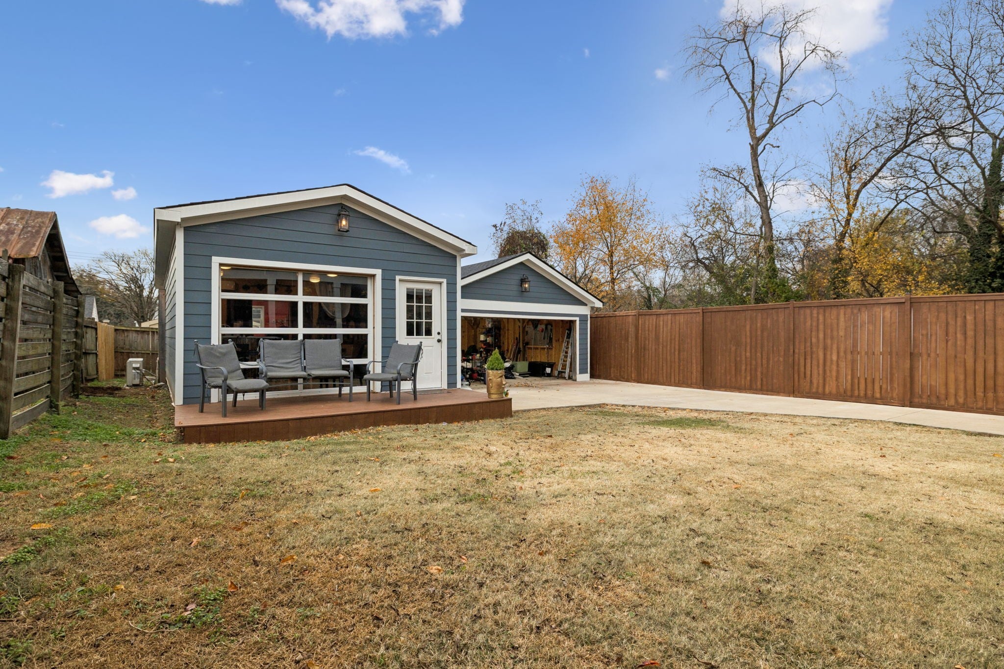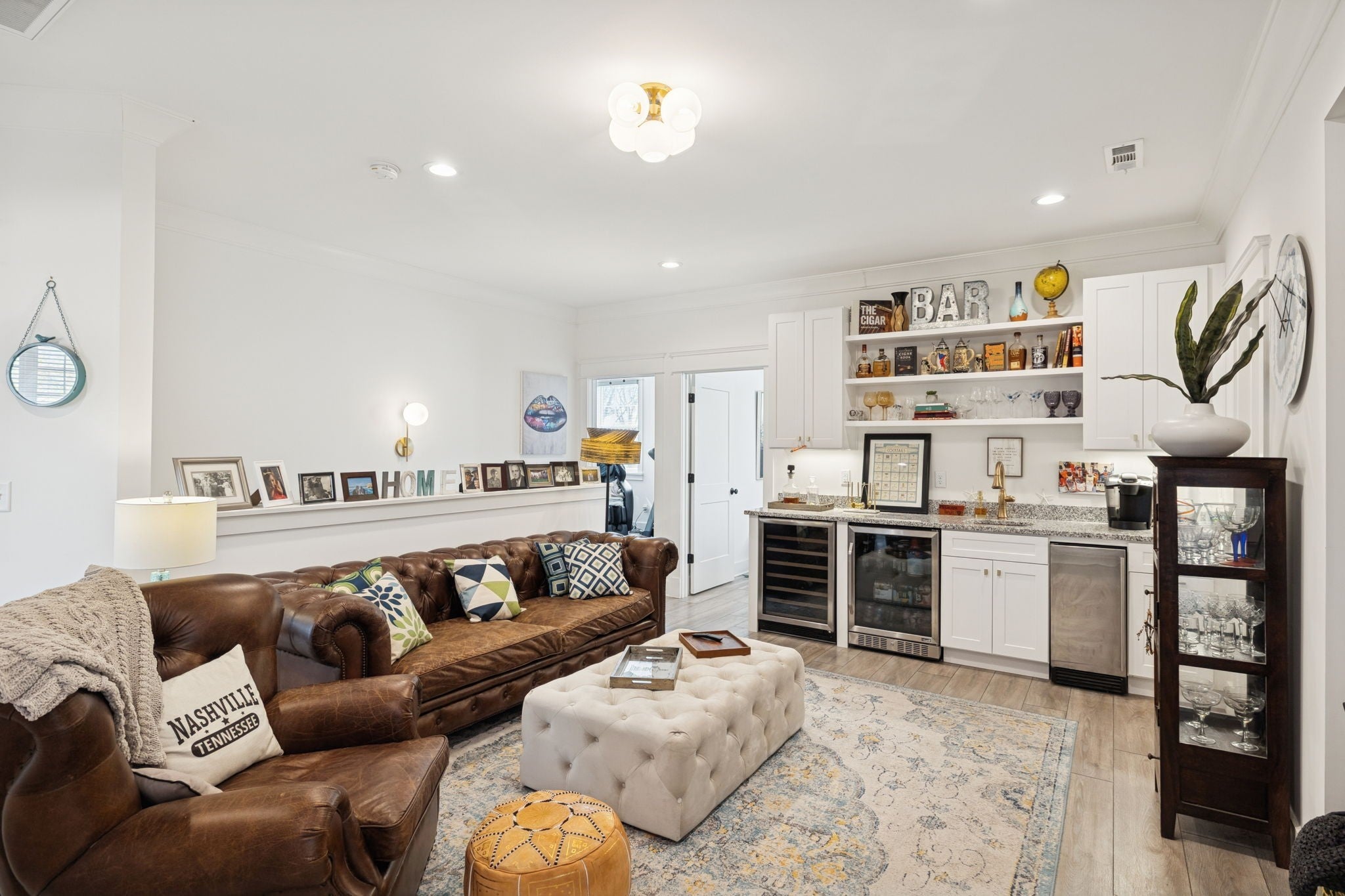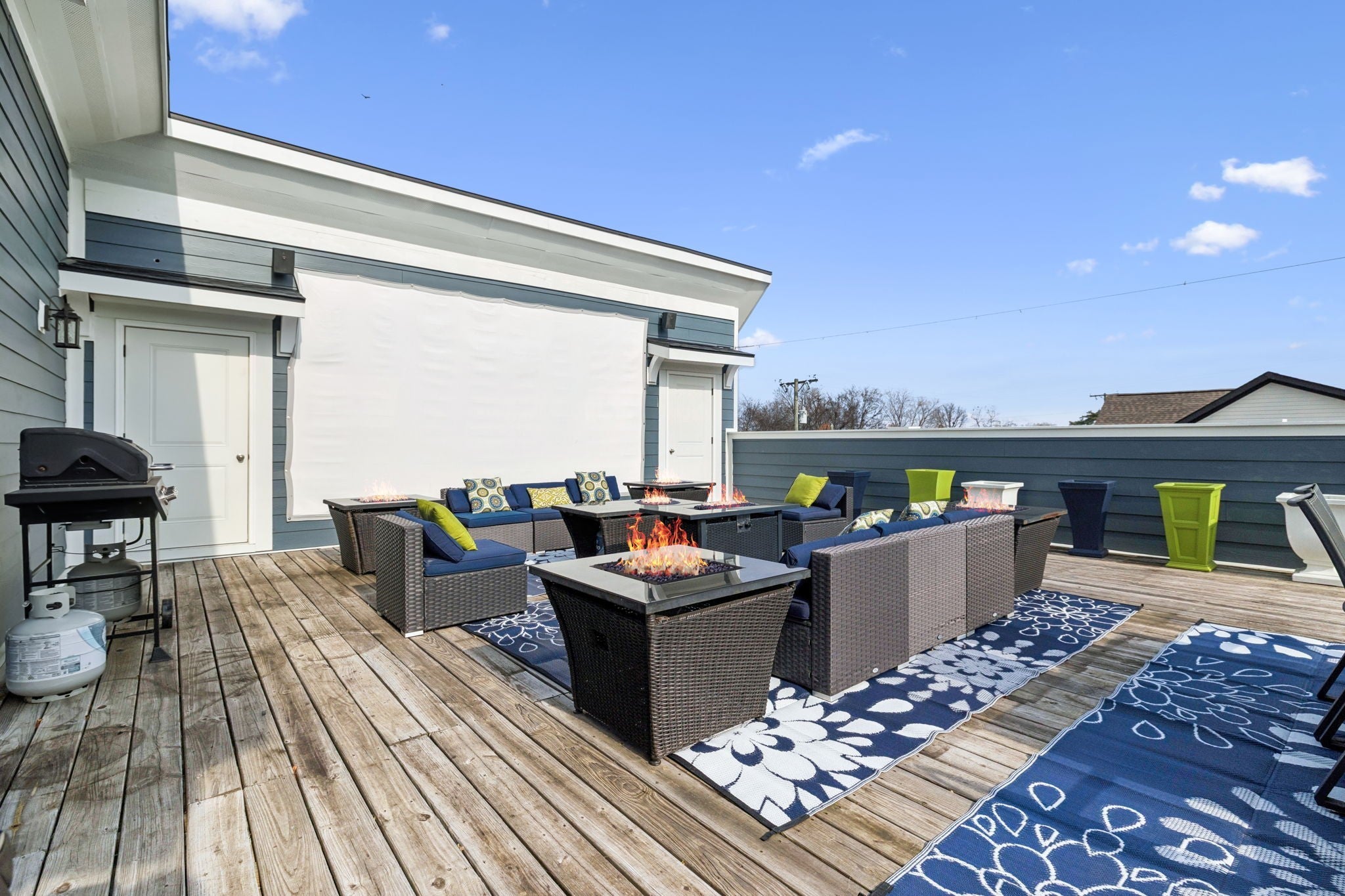 Entertainer’s Dream Home with Dual Master Suites and Expansive Outdoor Living! Welcome to this stunning custom-built home designed for entertaining and everyday luxury. Step inside the open floor plan where natural light fills a spacious living area centered around a massive kitchen island—perfect for gatherings. Enjoy your morning coffee on the inviting front porch or host unforgettable evenings on the expansive covered back patio overlooking your private outdoor retreat. This home features two primary suites, ideal for guest comfort. The custom office boasts built-in shelving and rich woodwork on the ceiling, offering an inspiring workspace. Upstairs, entertain with style at the bar complete with a wine refrigerator, or step outside to the huge rooftop deck for panoramic views and memorable sunsets. Outside, an outbuilding with a bar and kegerator adds the perfect finishing touch—creating a backyard experience unlike any other. Every inch of this property is crafted for comfort, sophistication, and entertaining at its finest. Includes: Front Porch Swing, 3rd floor rugs, 3rd floor bar, Poker Room Kegerator and Refrigerator, Poker Room Glass Shelves, Two Rooftop Fire Tables, Rooftop Projection Screen. 2nd Floor Ice Maker, Mini Refrigerator, and Wine Cooler.