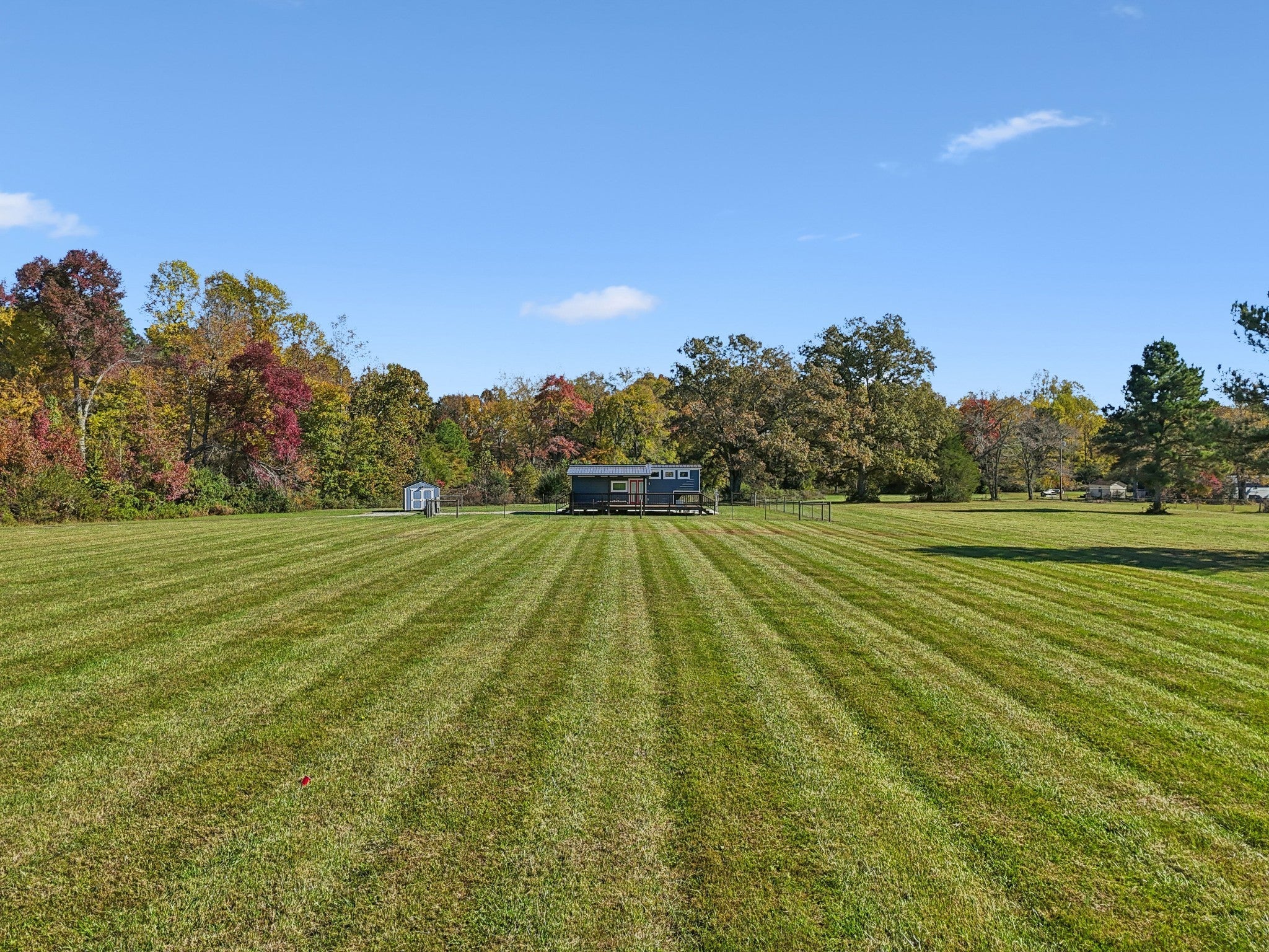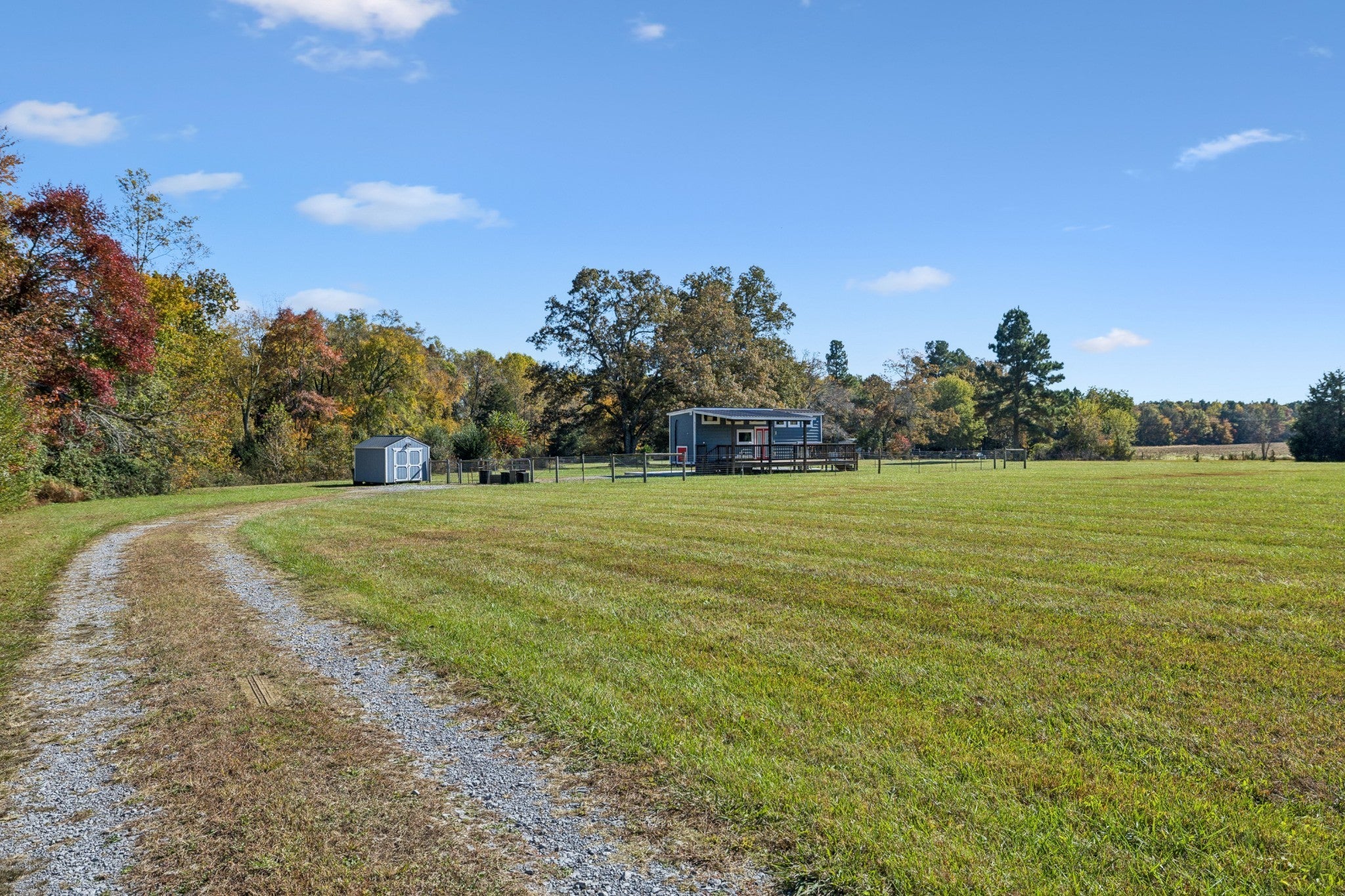 Beautiful 4.21 Acre with open pasture, trees and a pond. This tract has already has been improved with a long driveway, city water, electric, septic system and Tiny home on a large concrete pad to love forever or live in while you build your dream home. Tiny home is adorable inside and out with everything you need including a concrete patio, covered deck, storage building and a fenced yard. Property extends beyond the tree line at the back with an additional possible building site.