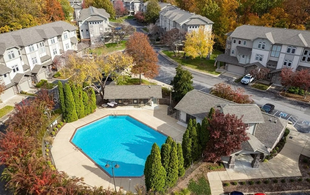 This incredibly unique, flexible, and spacious home is waiting for you at the convenient, tranquil hilltop community of Eagle Ridge at The Reserve! Even more convenient, this unit features direct access across its driveway to the clubhouse, seasonal pool, and fitness center. Move-in ready and unmatched in style, efficiency, and craftsmanship, this home stands out with its three bedroom four level plan, private wooded bluffview setting, soaring ceilings, and incredible natural light. This home has been meticulously reimagined with thoughtful enhancements, elegant finishes, and energy efficient upgrades providing truly maintenance and worry-free living at its finest. Multi-level living offers the opportunity for several primary suites, including a beautifully renovated full ground level private suite with walkout to wooded patio and a large adjoining bathroom featuring separate glass shower and garden tub alcove. Over $30,000 in interior upgrades over the past 3 years include new finishes, granite countertops, plumbing fixtures, lighting, mirrors, flooring and more, complemented by extensive community exterior renovations including new paint, wood trim, and roofs. Spacious 1 car garage allows room for storage as well. Renting of either the entire unit or the lockout private ground level suite is permitted subject to HOA and city guidelines. Even better, this turnkey opportunity offers the option to purchase complete with all furniture and appliances, all ready for furnished owner use or rental on day one. While offering incredible hilltop privacy, the home is centrally located to prime retail, restaurants, I-40, and only 15 minutes to downtown!