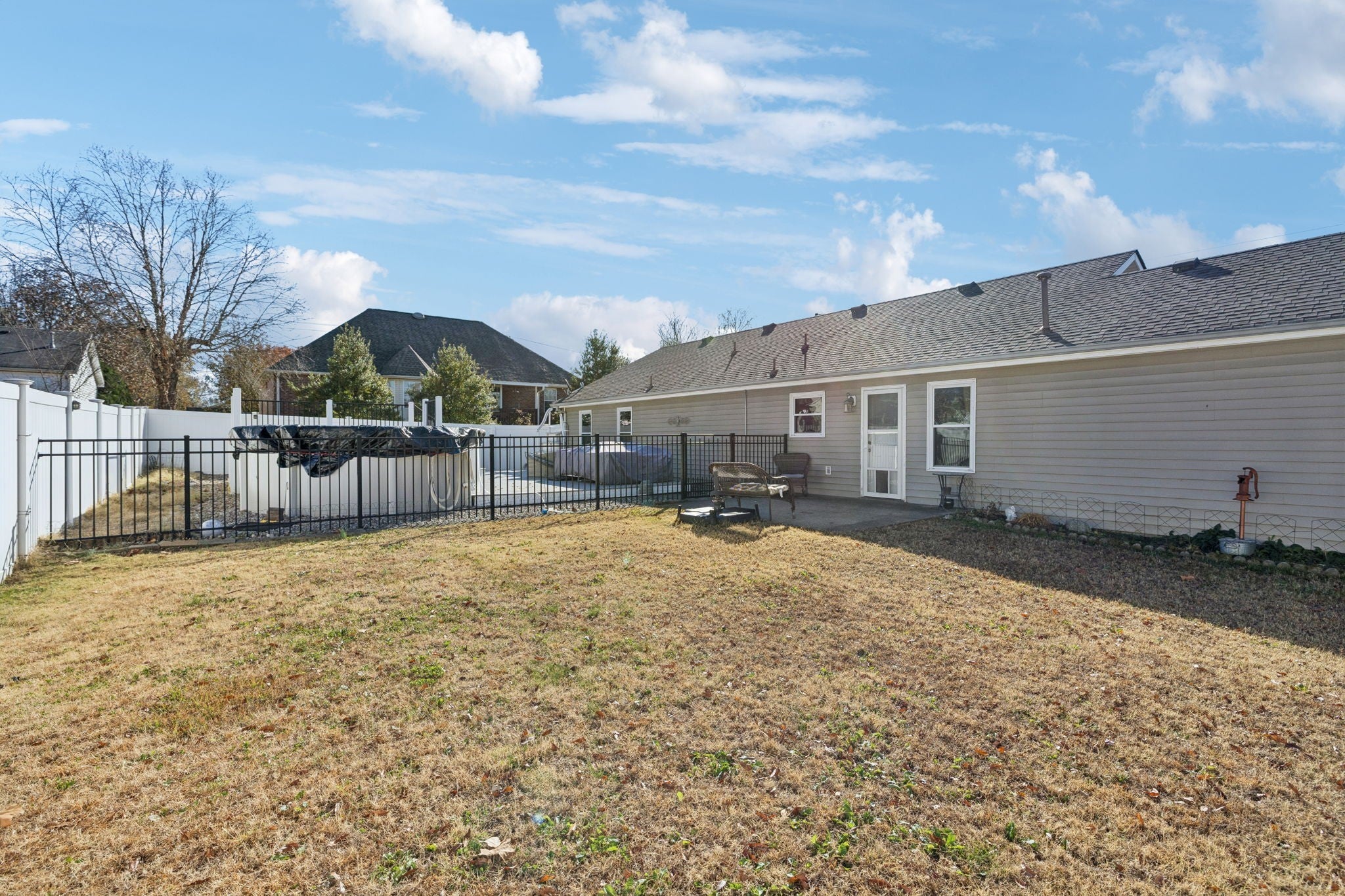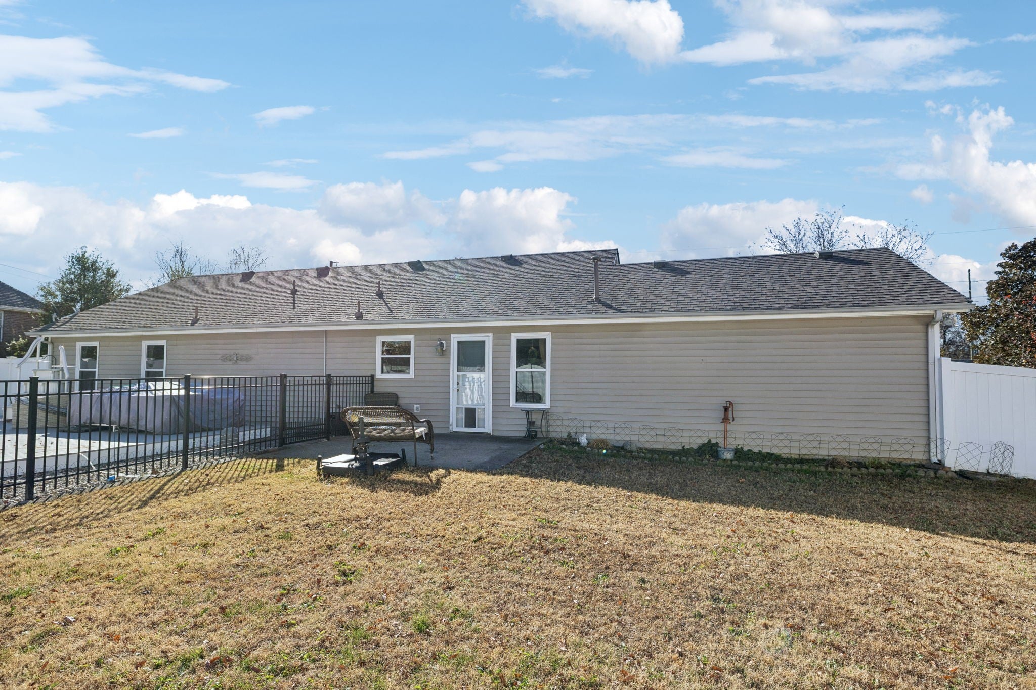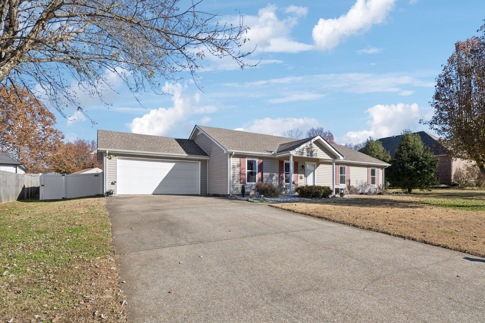 Discover easy one-level living in this warm and inviting home nestled in a peaceful, highly convenient Murfreesboro neighborhood. With quick access to McKnight Park, dining, shopping, golfing, and top-rated schools, this home offers comfort, value, and everyday convenience. Enjoy great curb appeal from the start, highlighted by a welcoming front porch, landscaping, and a new architectural shingle roof (2023). Inside, a spacious open floor plan features high ceilings in the great room - perfect for relaxing or entertaining. The eat-in kitchen offers stainless steel appliances and abundant cabinet space. The roomy primary bedroom includes its own full bath and walk-in closet, while two additional bedrooms share a second full bathroom. Step outside to your private paradise! Take a dip in the above-ground pool (5 yrs old) with a brand-new motor, filter, and updated filtration system, unwind on the 4-year-old like-new deck, or relax in the privacy-fenced yard with attractive and durable vinyl fencing. All outdoor and pool furniture remains, and a storage shed adds extra convenience. Major updates include new vinyl flooring throughout (excluding bedrooms), fresh paint this year, a brand-new handicap-accessible shower/jetted walk-in tub, new water heater, new windows, and new electrical panel/wiring with generator hookup. Washer, dryer, and refrigerator are negotiable, and sellers are offering a carpet allowance with the right offer. With NO HOA, you’ll enjoy the freedom to personalize your property as you choose. This charming Murfreesboro home combines comfort, convenience, and lifestyle in one inviting package. Don’t miss this one!!