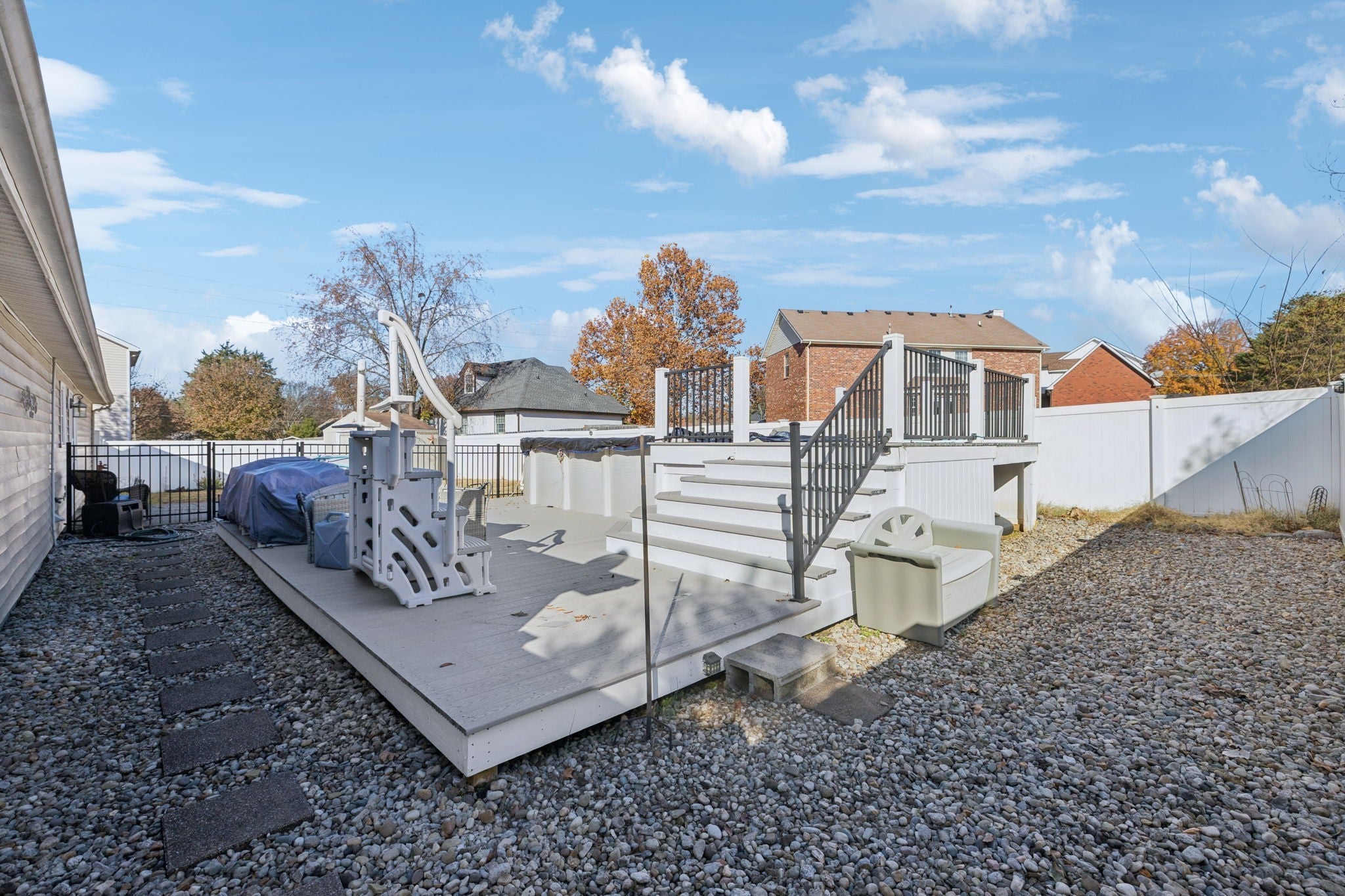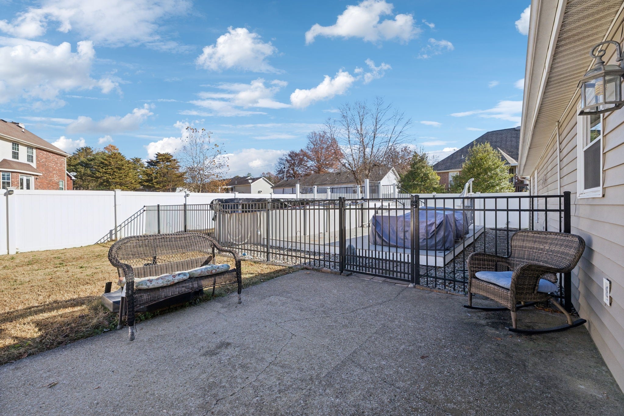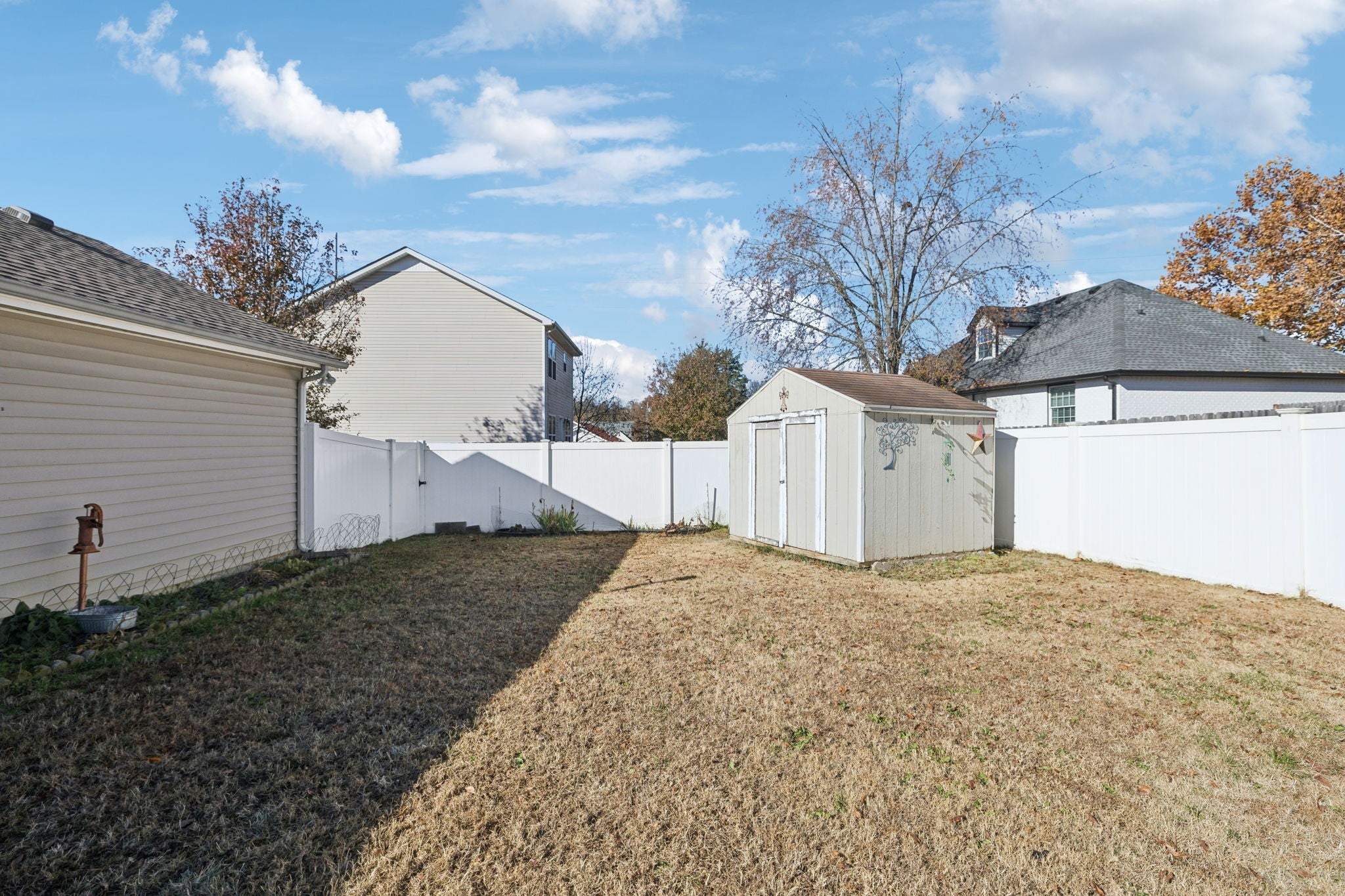 Discover easy one-level living in this warm and inviting home nestled in a peaceful, highly convenient Murfreesboro neighborhood. With quick access to McKnight Park, dining, shopping, golfing, and top-rated schools, this home offers comfort, value, and everyday convenience. Enjoy great curb appeal from the start, highlighted by a welcoming front porch, landscaping, and a new architectural shingle roof (2023). Inside, a spacious open floor plan features high ceilings in the great room - perfect for relaxing or entertaining. The eat-in kitchen offers stainless steel appliances and abundant cabinet space. The roomy primary bedroom includes its own full bath and walk-in closet, while two additional bedrooms share a second full bathroom. Step outside to your private paradise! Take a dip in the above-ground pool (5 yrs old) with a brand-new motor, filter, and updated filtration system, unwind on the 4-year-old like-new deck, or relax in the privacy-fenced yard with attractive and durable vinyl fencing. All outdoor and pool furniture remains, and a storage shed adds extra convenience. Major updates include new vinyl flooring throughout (excluding bedrooms), fresh paint this year, a brand-new handicap-accessible shower/jetted walk-in tub, new water heater, new windows, and new electrical panel/wiring with generator hookup. Washer, dryer, and refrigerator are negotiable, and sellers are offering a carpet allowance with the right offer. With NO HOA, you’ll enjoy the freedom to personalize your property as you choose. This charming Murfreesboro home combines comfort, convenience, and lifestyle in one inviting package. Don’t miss this one!!