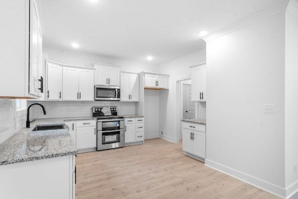 Welcome to your brand-new dream home in the heart of Sango! Crafted by the highly regarded Danell Welch Construction—a locally owned and operated builder known for exceptional craftsmanship—this stunning new build offers high-end features you simply won’t find elsewhere. Step through the vaulted foyer and be greeted by a beautifully open-concept design that effortlessly connects every space. Gorgeous laminate flooring flows throughout the main living areas, leading you to a spacious great room adorned with a cozy shiplap fireplace—a perfect centerpiece for gatherings or relaxing evenings at home. The thoughtfully designed eat-in kitchen is both stylish and functional, featuring sleek countertops, upgraded stainless appliances, and ample cabinetry for all your storage needs. A formal dining room offers an elegant space for dinner parties or the flexibility to be used as a home office. The primary suite is a true retreat, complete with a luxurious freestanding tub, a beautifully tiled shower with a glass enclosure, and premium finishes that reflect the builder’s signature style. Every detail has been considered, from the trending light fixtures to wood staircases and upgraded materials throughout. Enjoy peaceful mornings or quiet evenings on the covered back deck, which overlooks a serene wooded lot—your personal escape to nature right at home. With four spacious bedrooms, elevated design elements, and unmatched attention to detail, this home sets a new standard for modern living in Clarksville. Located near to everything you love in Sango; restaraunts, shopping, and quick access to hwy 12 or I-24!