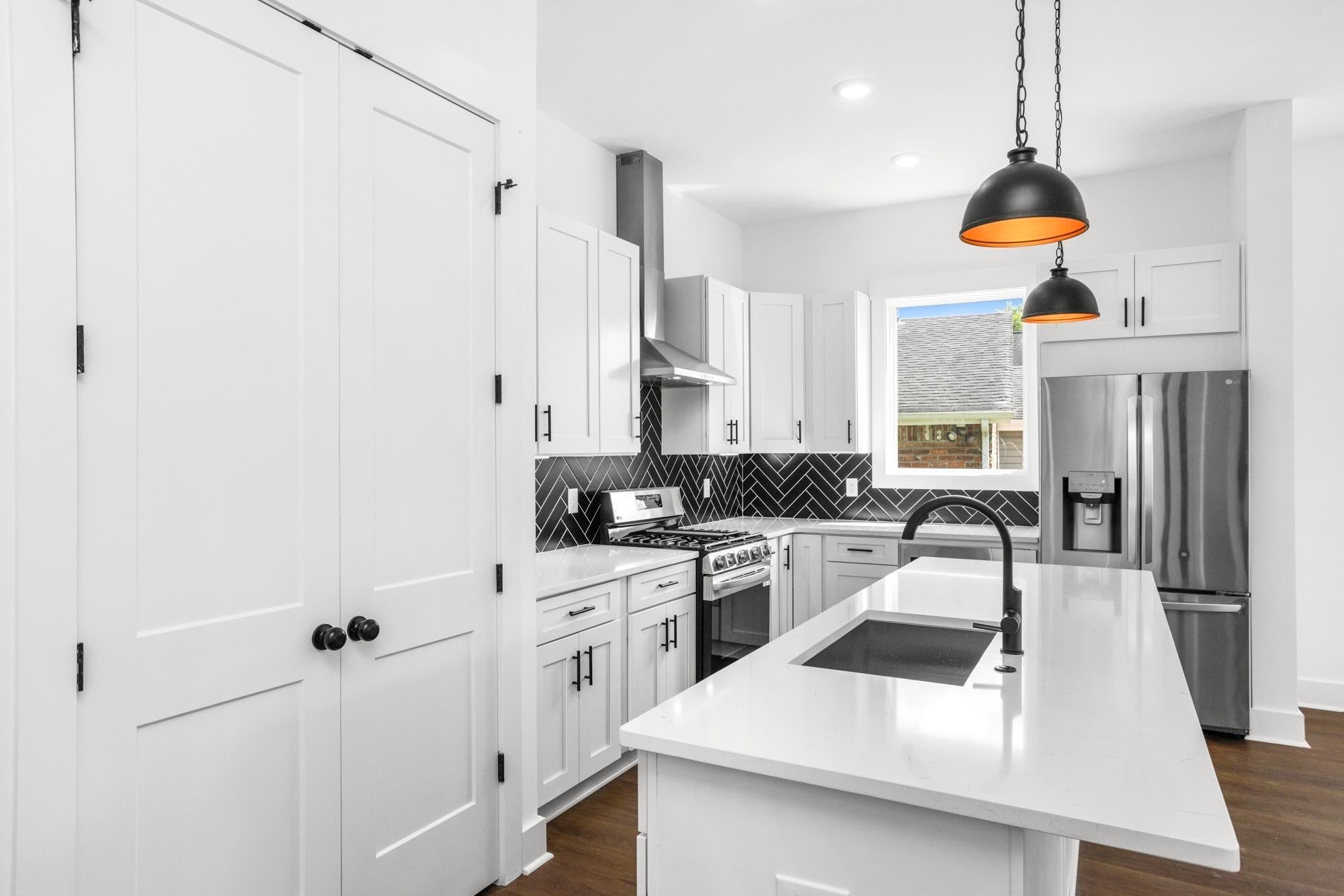New construction w/ modern finishes & flexible layout just minutes to Downtown, Germantown, East/West Nashville & BNA. Open concept main level w/ balcony—ideal for entertaining. Kitchen boasts quartz counters, sleek cabinets & designer touches. Primary suite features custom walk-in closet, large tiled shower w/ dual heads, & soaking tub w/ natural light. Finished basement includes bed, full bath, laundry hook-up & kitchenette space—perfect for in-law, guest, or rental. Custom millwork, accent walls, 2-car garage + extra parking. Prime location + upscale style = a must see! Schedule your private tour today!!