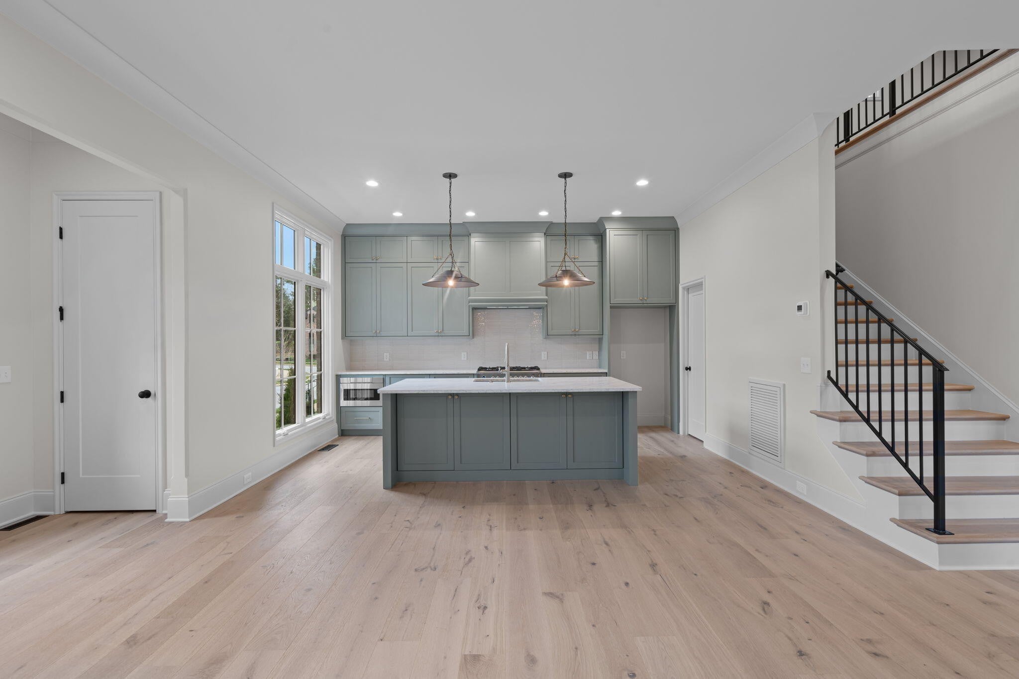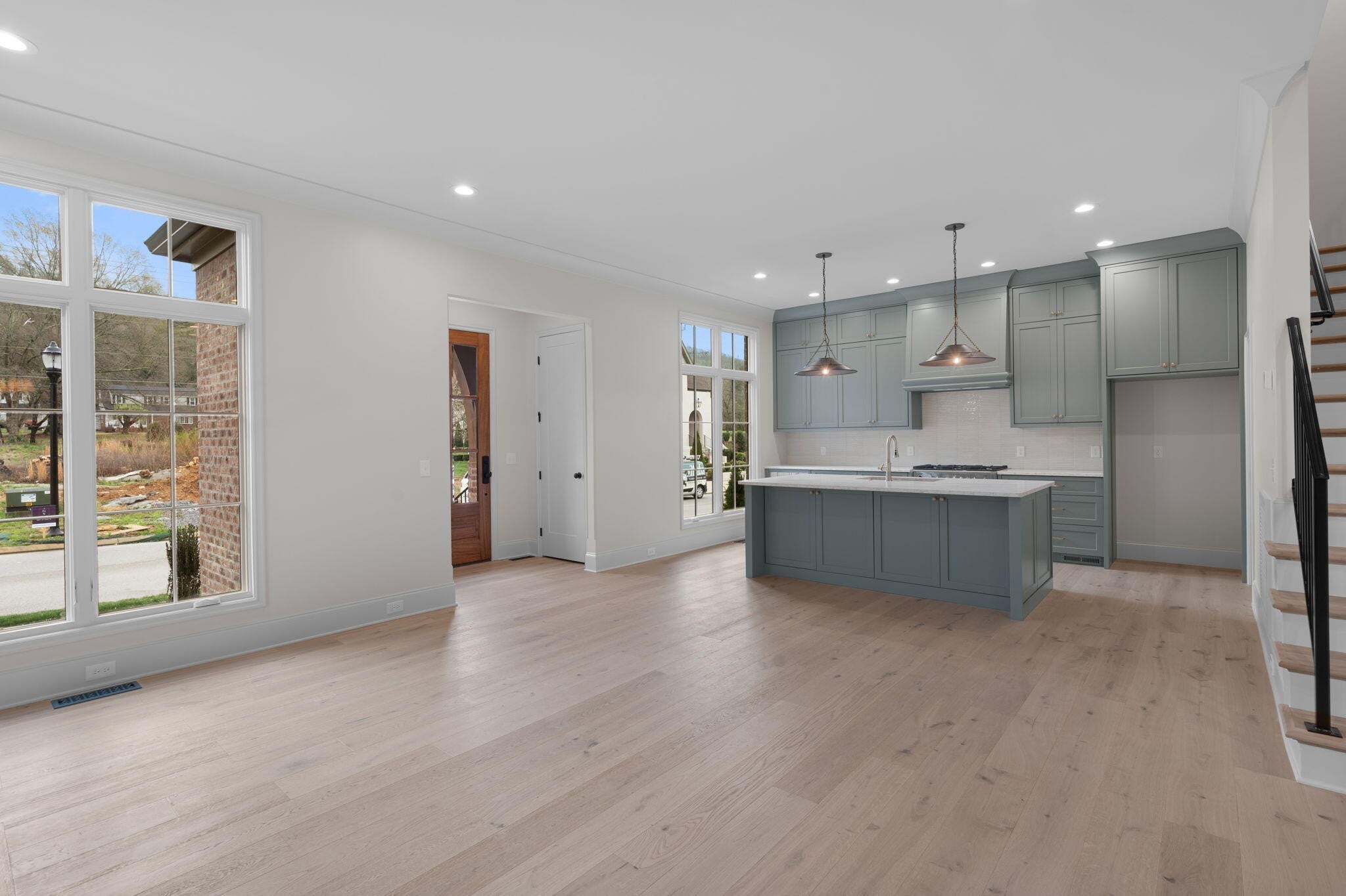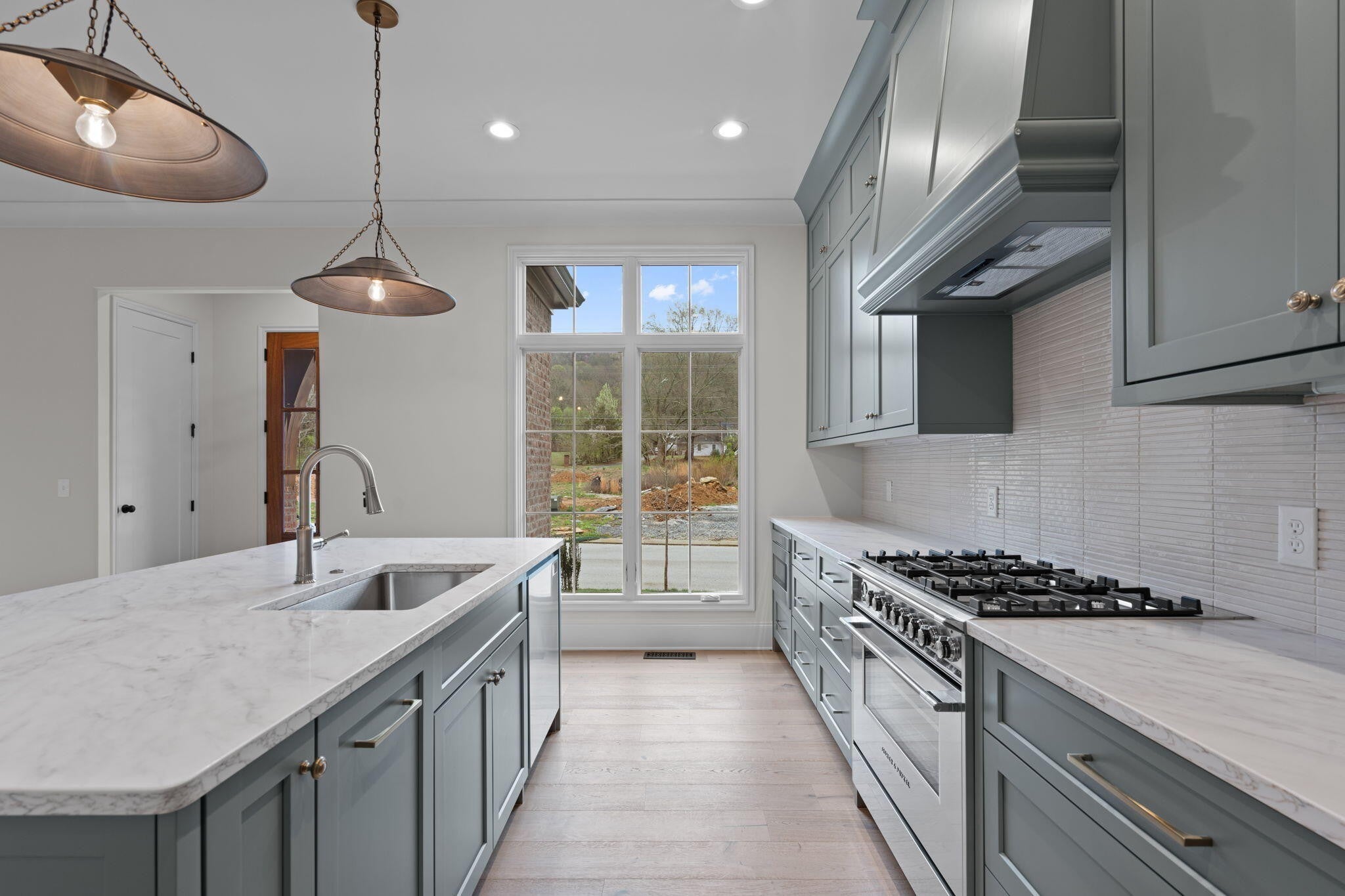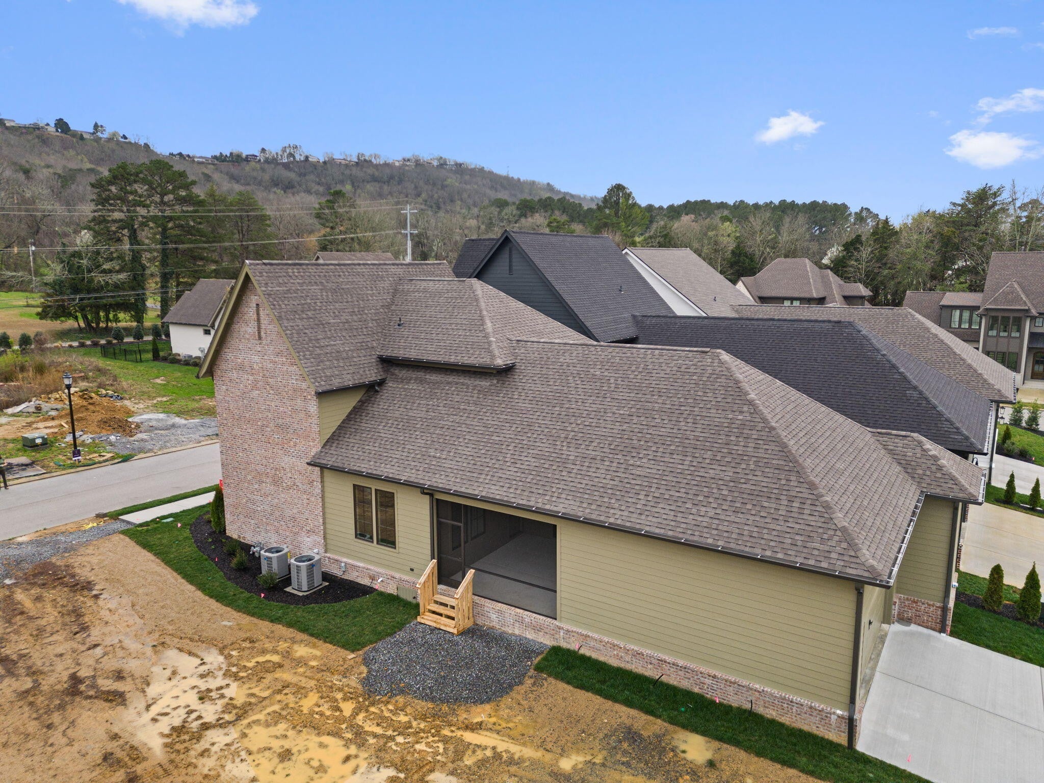 Waters-Holland unveils The Winslow - an entirely new, never-before-built English Craftsman design that captures the timeless charm and thoughtful craftsmanship the builder is celebrated for. At 2,172 square feet, this inviting three-bedroom, two-and-a-half-bath home welcomes you with graceful proportions, elevated ceilings, and an effortless flow that feels both luxurious and livable. Step through the front door beneath authentic inset wood timbers and you're greeted by soaring 10-foot ceilings, engineered hardwood floors, and natural light provided by an abundance of aluminum-clad windows. The open living plan feels airy yet intimate, with views of White Oak Mountain visible from the kitchen, great room, and dining. Custom cabinetry throughout provides smart storage in this compact, but thoughtfully designed home. At the heart of the home, the kitchen is a dream for both everyday living and entertaining. A spacious central island anchors the space, surrounded by floor-to-ceiling custom cabinetry, quartz countertops, and premium Fisher & Paykel stainless-steel appliances—including a 36-inch professional gas range and seamlessly integrated dishwasher. A walk-in pantry keeps everything beautifully organized and within reach, while the kitchen flows openly to the great room and dining room. A generous covered porch—perfect for morning coffee- is accessible from the living area near the dining room. The main-level primary suite is a serene retreat, featuring a vaulted ceiling, direct access to the covered porch through sliding glass doors, and a spa-inspired ensuite bath with a large tiled shower, dual-sink vanity, private water closet, and walk-in closet with custom shelving. Upstairs, two generously sized secondary bedrooms share a well-designed full bath, while the expansive open loft offers endless flexibility—whether you envision a home office, media room, playroom, or cozy den. Thoughtful walk-out attic storage keeps seasonal items neatly tucked away.
