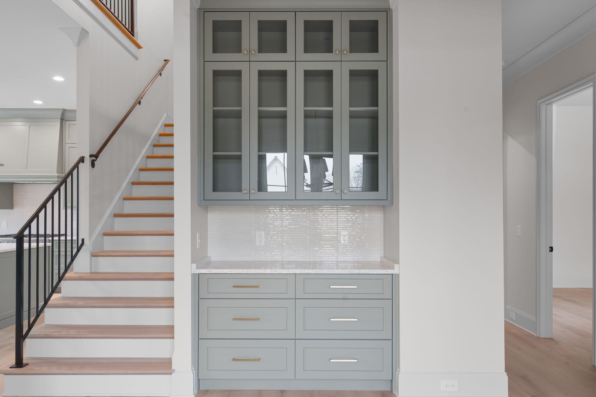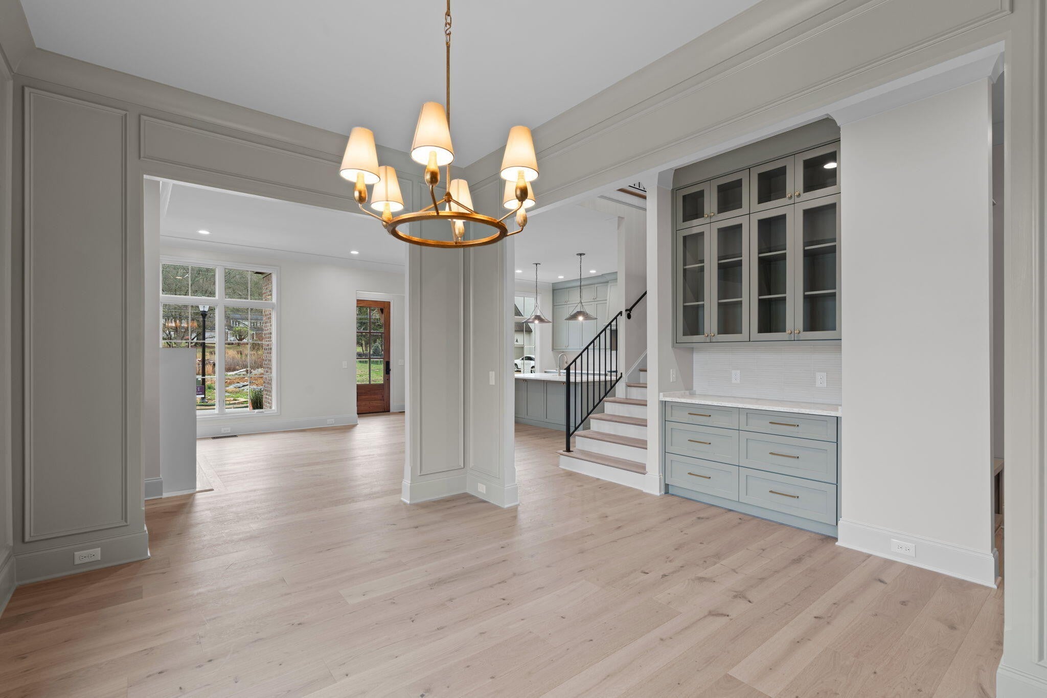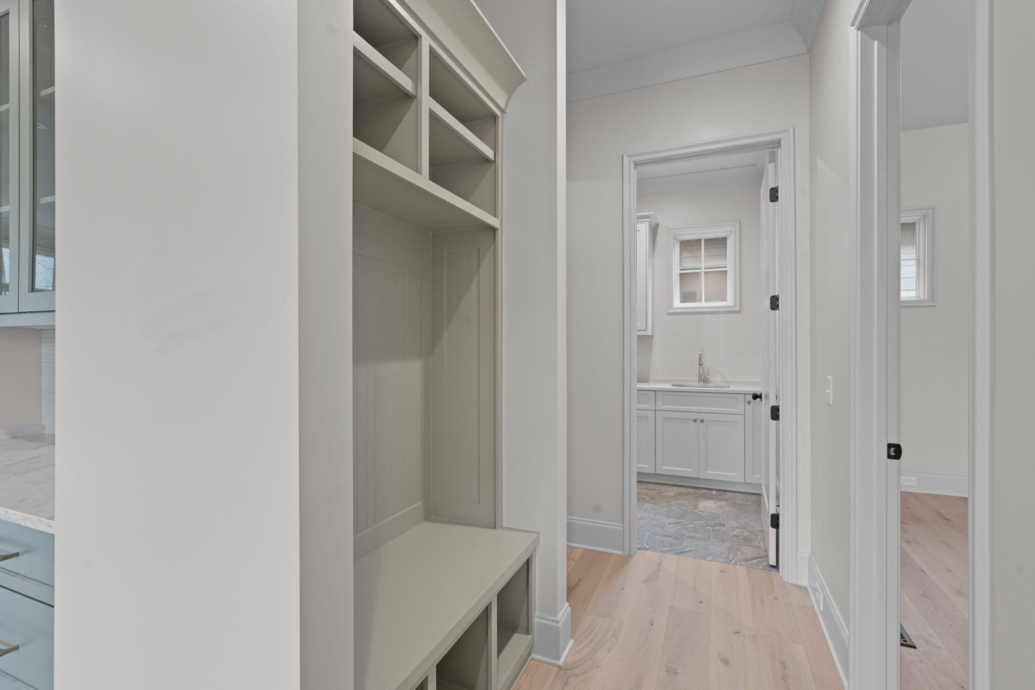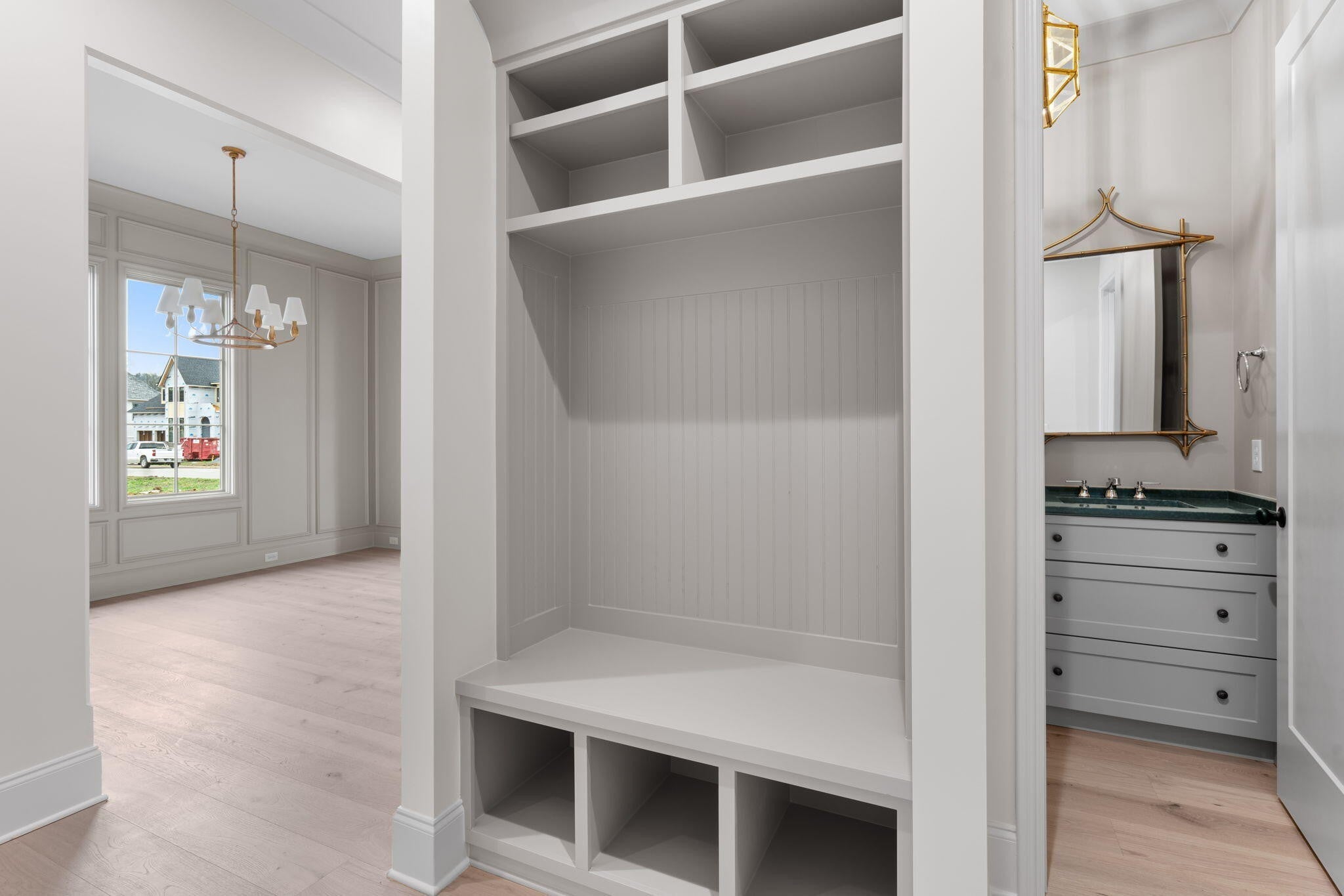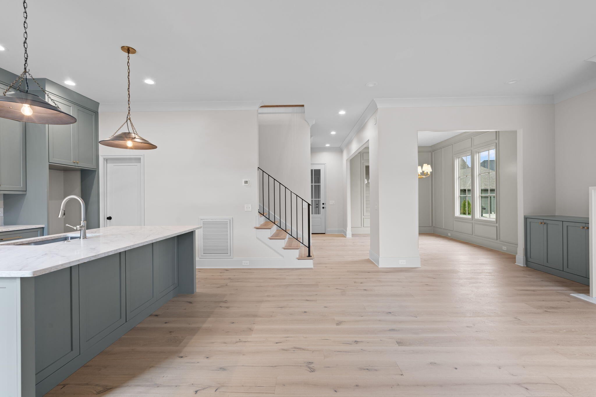 Waters-Holland unveils The Winslow - an entirely new, never-before-built English Craftsman design that captures the timeless charm and thoughtful craftsmanship the builder is celebrated for. At 2,172 square feet, this inviting three-bedroom, two-and-a-half-bath home welcomes you with graceful proportions, elevated ceilings, and an effortless flow that feels both luxurious and livable. Step through the front door beneath authentic inset wood timbers and you're greeted by soaring 10-foot ceilings, engineered hardwood floors, and natural light provided by an abundance of aluminum-clad windows. The open living plan feels airy yet intimate, with views of White Oak Mountain visible from the kitchen, great room, and dining. Custom cabinetry throughout provides smart storage in this compact, but thoughtfully designed home. At the heart of the home, the kitchen is a dream for both everyday living and entertaining. A spacious central island anchors the space, surrounded by floor-to-ceiling custom cabinetry, quartz countertops, and premium Fisher & Paykel stainless-steel appliances—including a 36-inch professional gas range and seamlessly integrated dishwasher. A walk-in pantry keeps everything beautifully organized and within reach, while the kitchen flows openly to the great room and dining room. A generous covered porch—perfect for morning coffee- is accessible from the living area near the dining room. The main-level primary suite is a serene retreat, featuring a vaulted ceiling, direct access to the covered porch through sliding glass doors, and a spa-inspired ensuite bath with a large tiled shower, dual-sink vanity, private water closet, and walk-in closet with custom shelving. Upstairs, two generously sized secondary bedrooms share a well-designed full bath, while the expansive open loft offers endless flexibility—whether you envision a home office, media room, playroom, or cozy den. Thoughtful walk-out attic storage keeps seasonal items neatly tucked away.