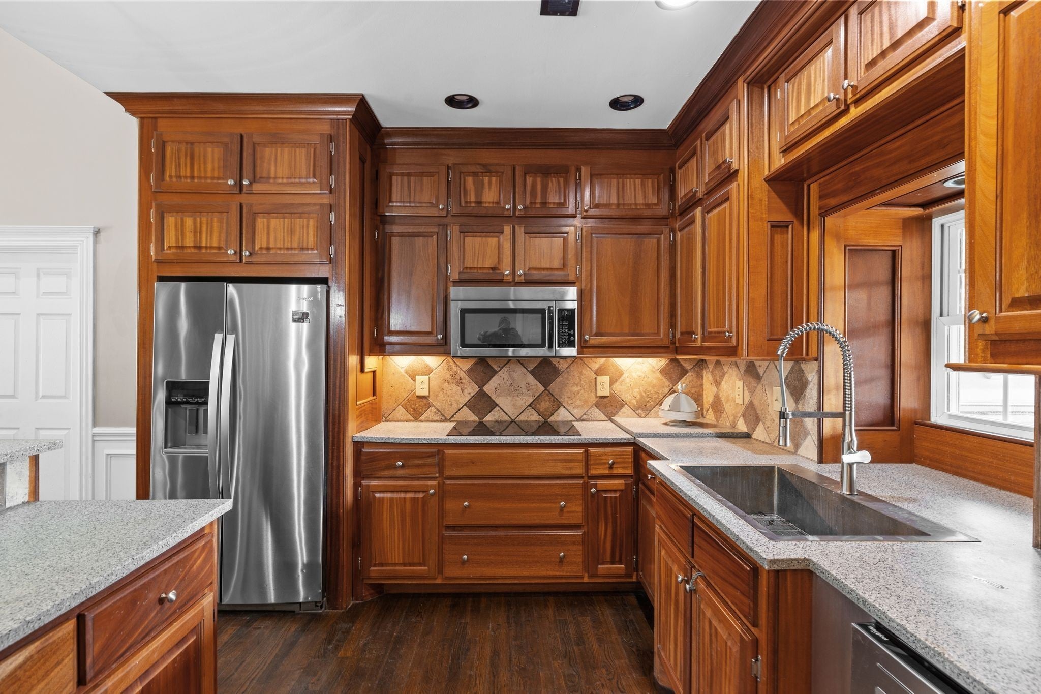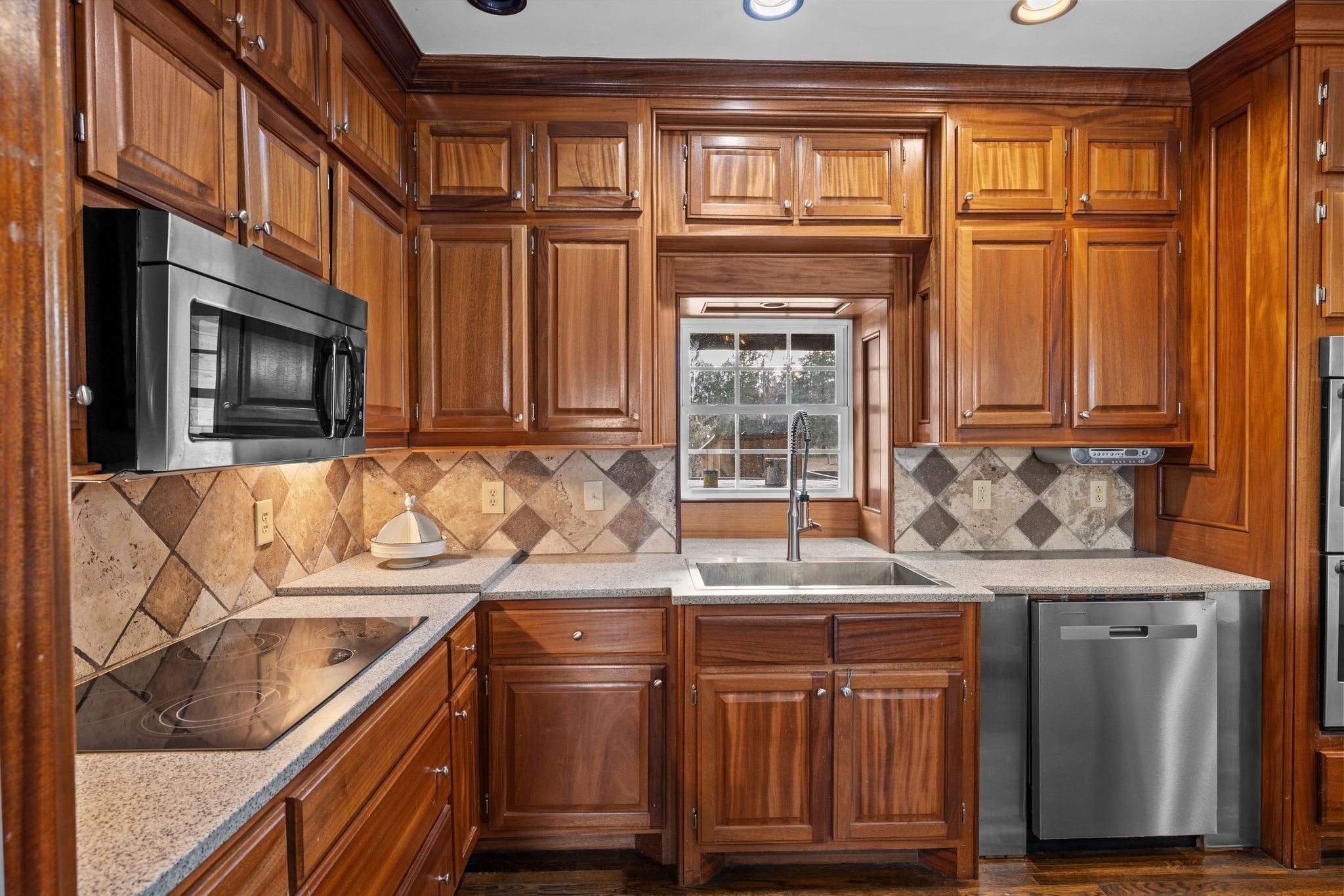 - Double Oven, Electric Oven, Cooktop, Dishwasher, Microwave, Refrigerator, Stainless Steel Appliance(s)