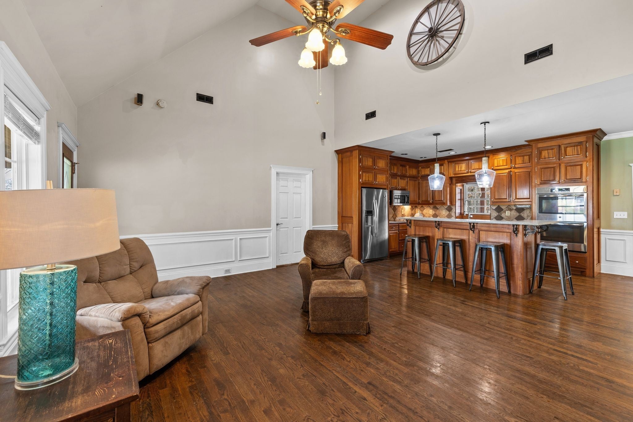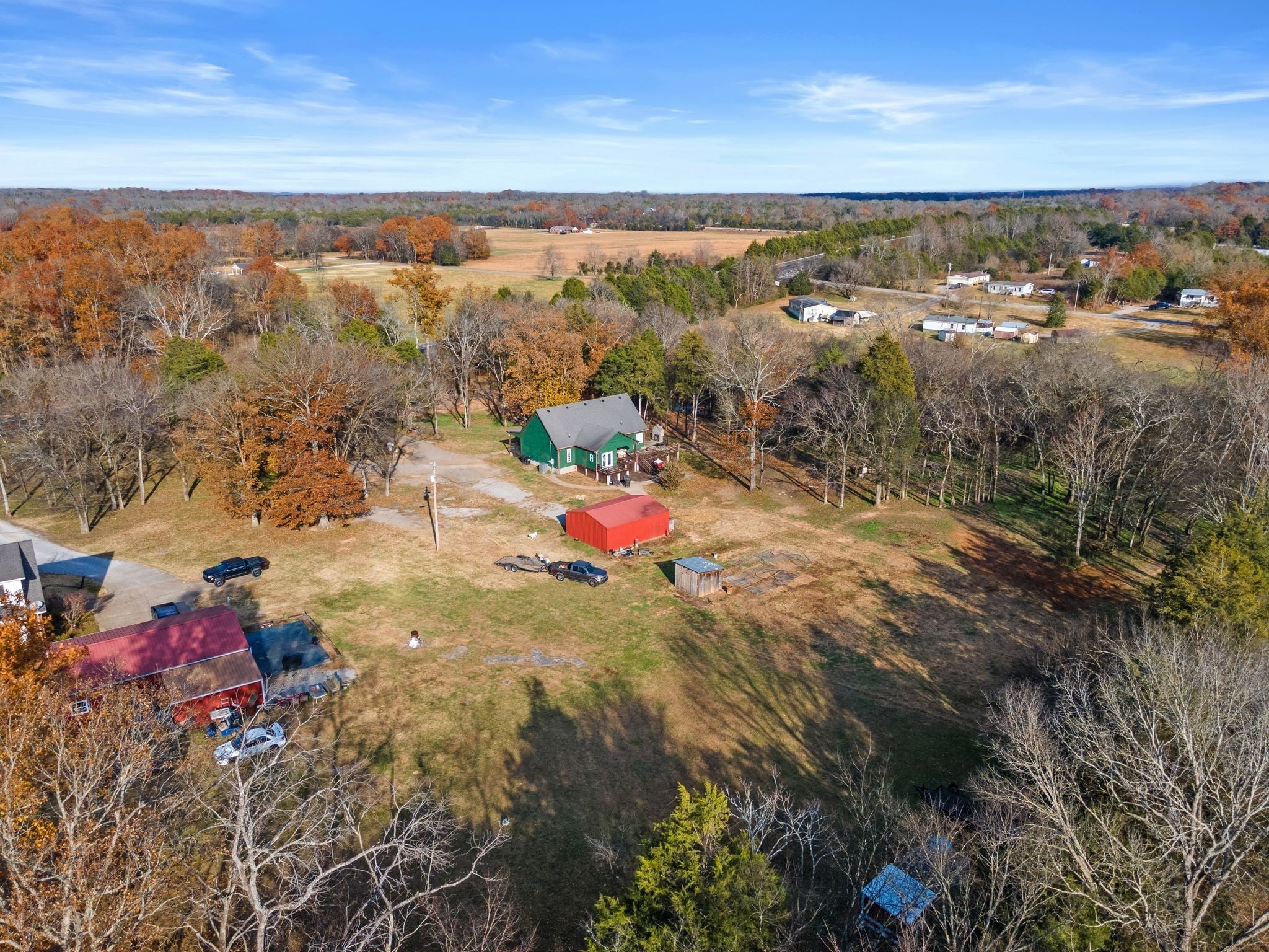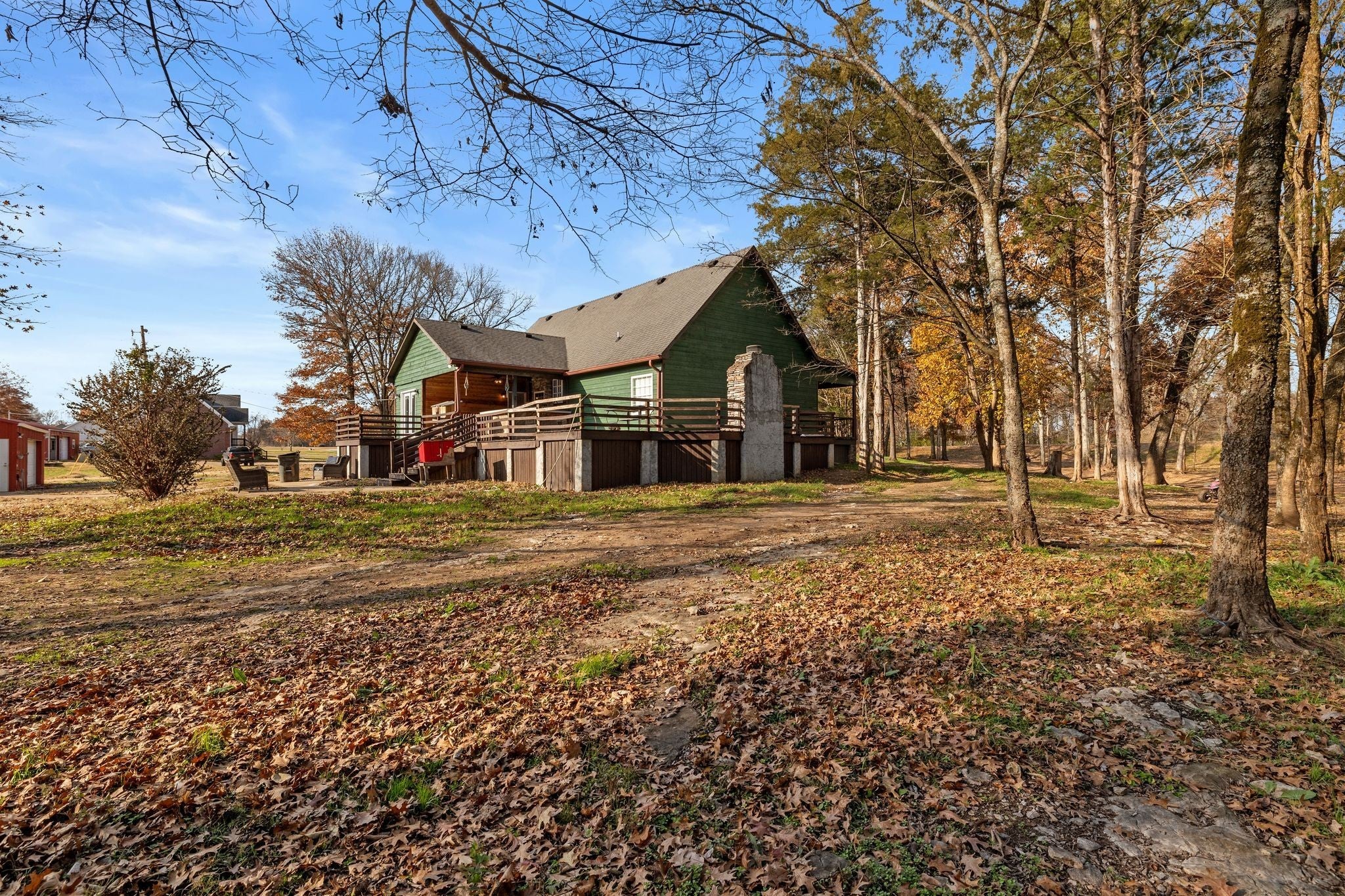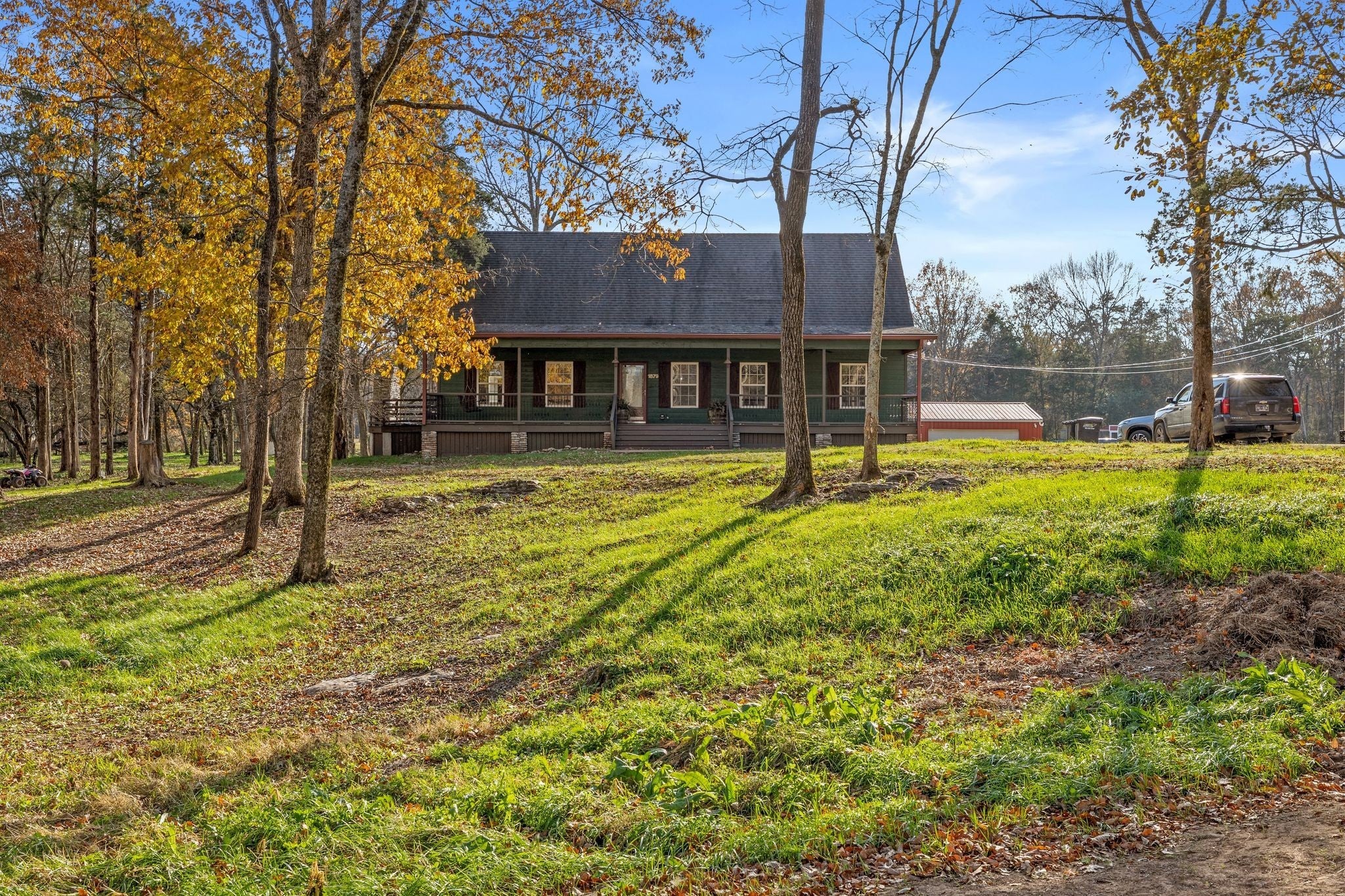 Bonus room option with flex space! Custom home on 2.6 (unrestricted) acres with upgrades and details found throughout. A dreamy full length, covered front porch welcomes you, while out back you'll find a fully equipped outdoor kitchen and stone fireplace on the expansive deck. Step inside to soaring vaulted ceilings, rich hardwood flooring, custom trim work, and a cozy living area anchored by a floor-to-ceiling shiplap fireplace with built-ins. The spacious kitchen features solid wood cabinetry, corian countertops, stainless steel appliances, double oven, food warmer, and a large island perfect for gathering. The primary suite and secondary bedroom are tucked away for privacy, and both bathrooms feature upgraded finishes, tile flooring, and walk-in showers. The property also includes a large, detached shop with electricity and water—ideal for hobbies, storage, or a home business. With plenty of room to expand, garden, or simply enjoy the serenity of your surroundings, this property offers endless potential just minutes from Chapel Hill conveniences and an easy drive to Spring Hill, Columbia, and Franklin.