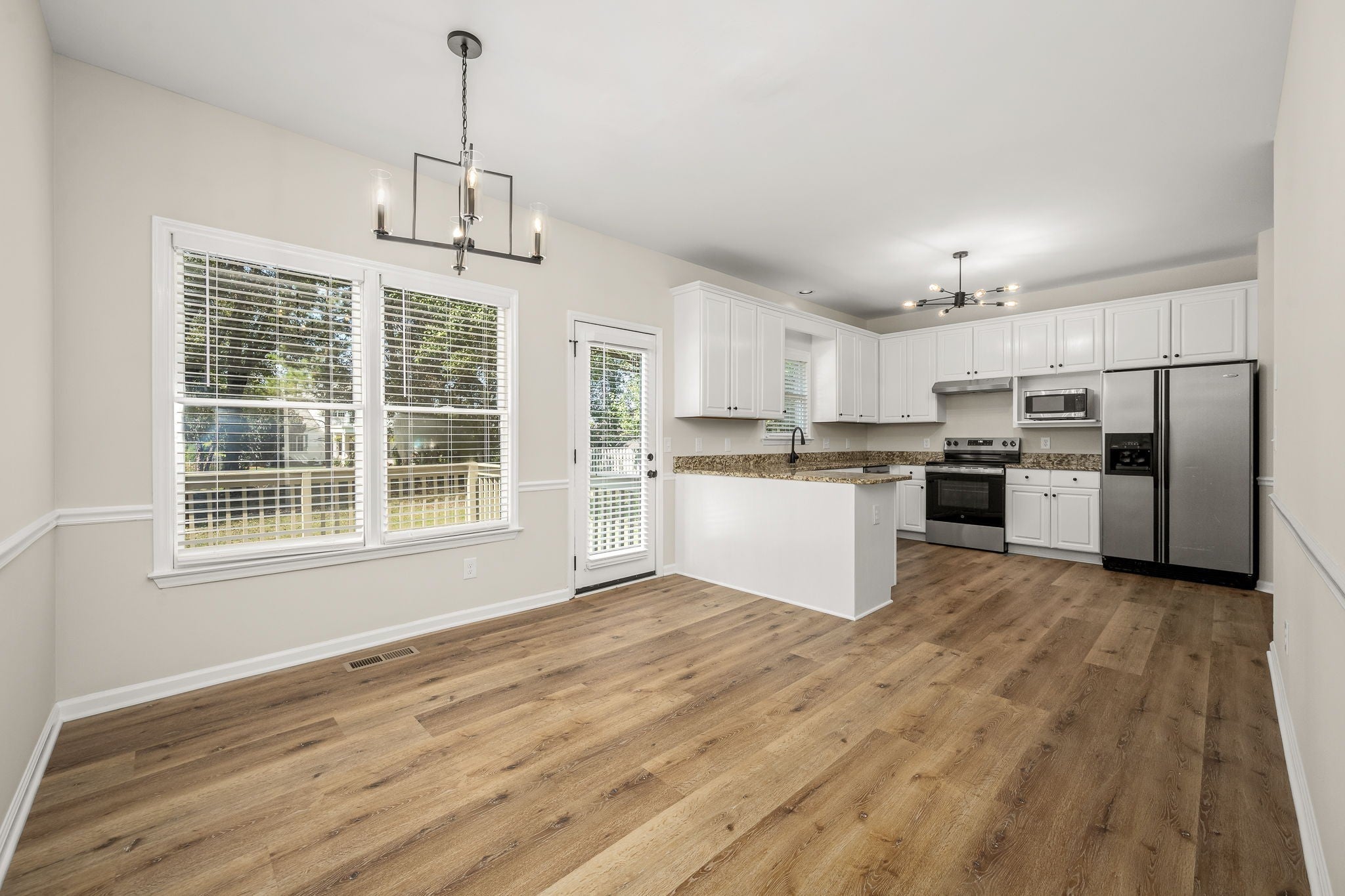 - Electric Range, Dishwasher, Microwave, Refrigerator, Stainless Steel Appliance(s)
