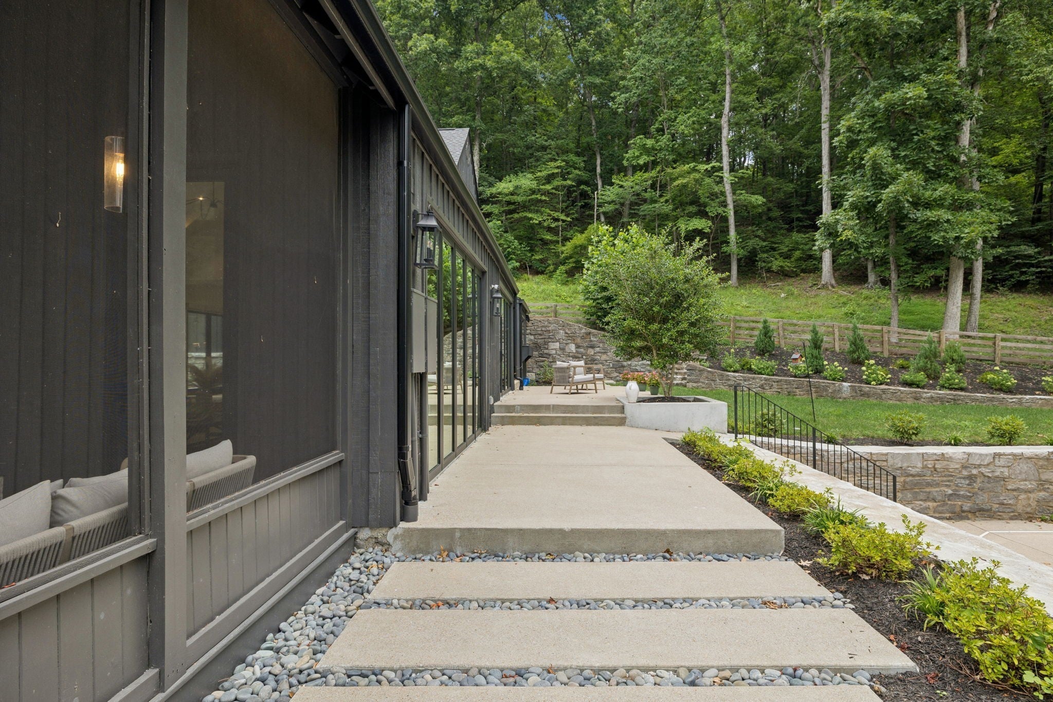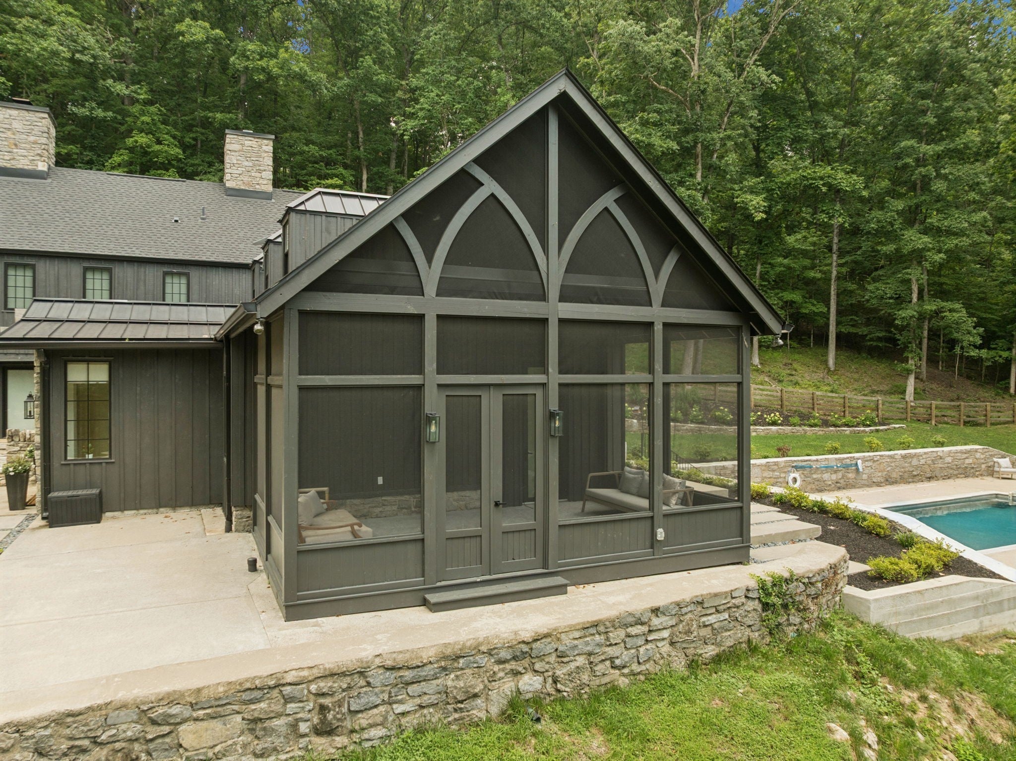 - Stone, Wood Siding