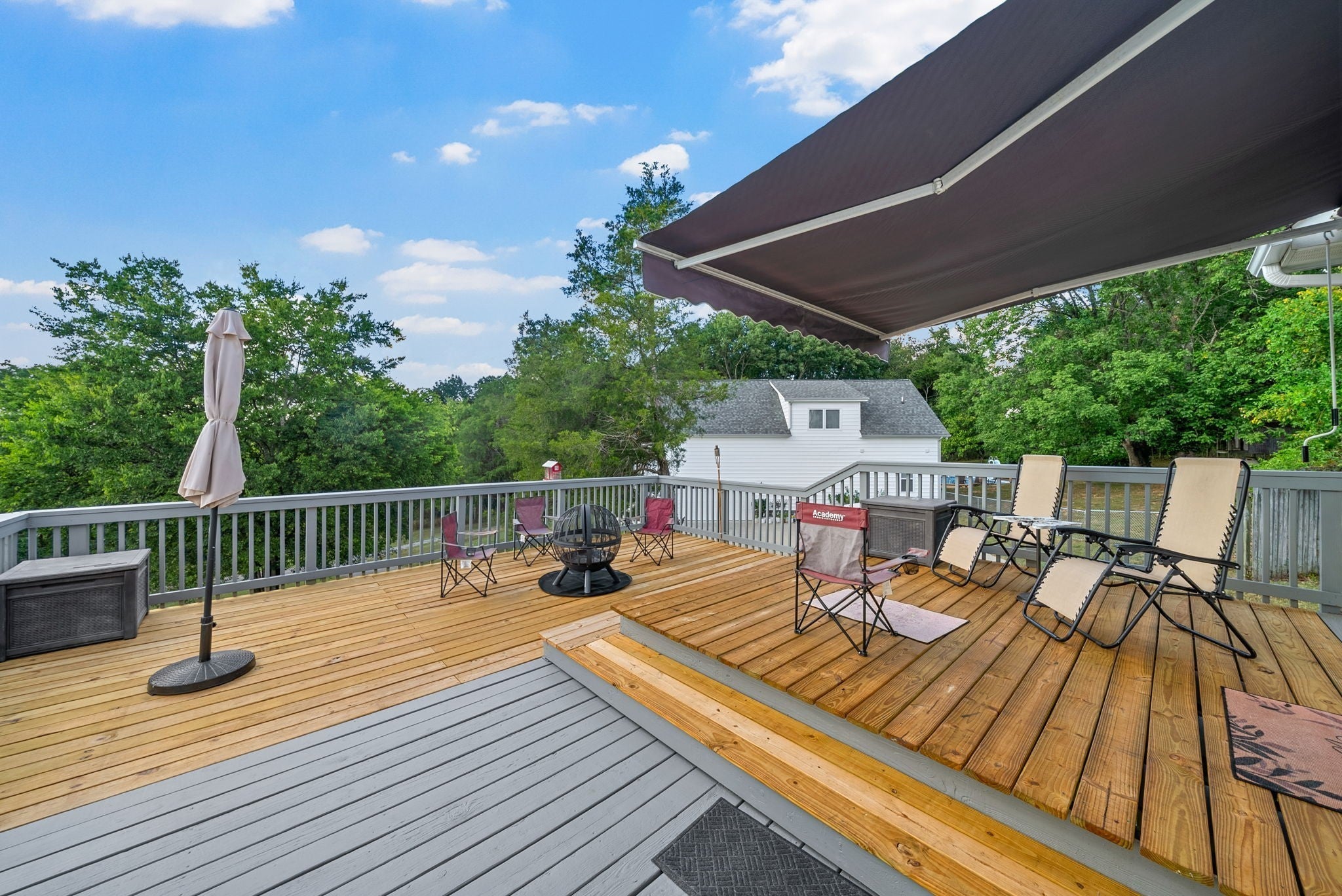 Seller concessions offered! Enjoy watching the sunset from your back deck every night! Seller concessions offered and negotiable! This beautifully maintained home is truly move-in ready with countless recent upgrades! NO HOA!!! Featuring FIVE bedrooms, AND a finished partial basement, and a large two-car garage, there’s room for everyone and everything. Recent updates include: New roof, gutters, deck, siding (back of home), and retractable deck awning – all June 2025, Tankless water heater (2023), Fresh interior paint (2023), LG refrigerator (2023), Regular HVAC service. The brand-new deck with retractable awning is perfect for relaxing or entertaining, while the finished basement offers flexible living space. With so many updates already complete, this home is ready for its next owner to move right in and enjoy.