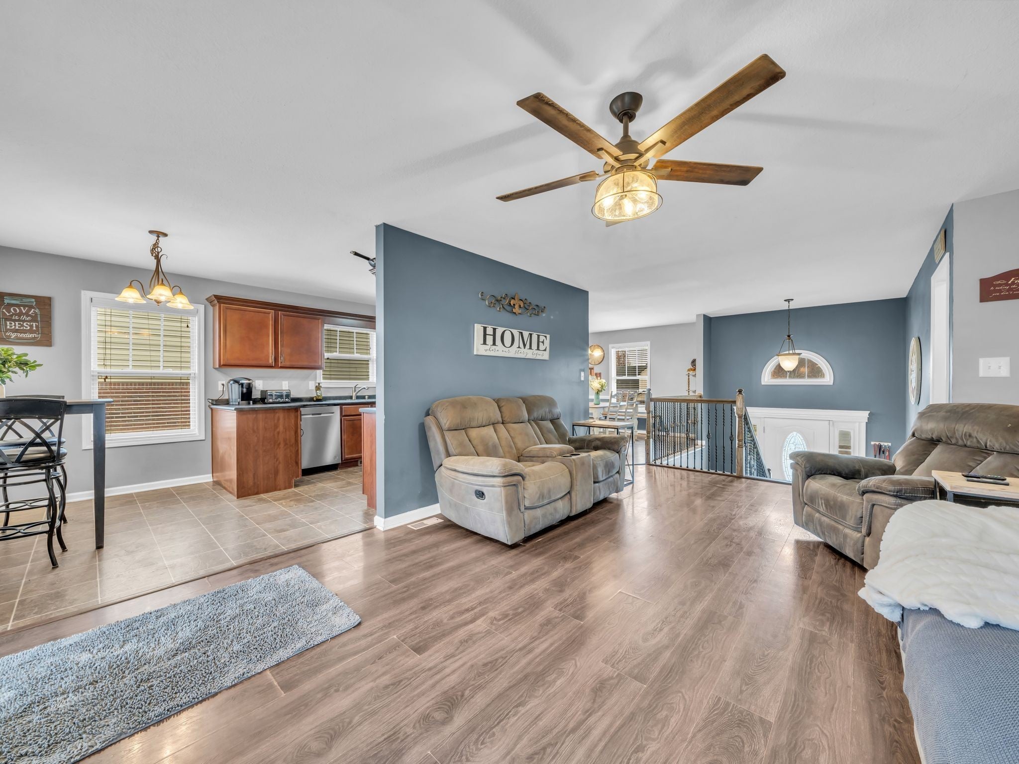 Motivated Sellers! Plenty of space for everyone in this wonderful split level home w/ private fenced yard, cozy living room propane fireplace, stainless steel appliances, breakfast nook as well as formal dining for entertaining, 3 beds/2 full baths upstairs and 1 bed/1 full bath downstairs w/ bonus/rec room/man cave and laundry room and 2 car garage. The primary bedroom has a trey ceiling, walk-in closet and attached bath with dual vanities. Brand new laminate floors downstairs. Large new storage shed, grill, garage racks, tv brackets, & Vivint security system to remain. Lot size extends beyond backyard fence. This home not only has it all, but is conveniently located minutes from post and shopping in a quiet neighborhood tucked away in the heart of Ringgold Estates and best yet - no HOA! Sellers to provide professional cleaning and re-seeding the back lawn. Don't miss this one today!
