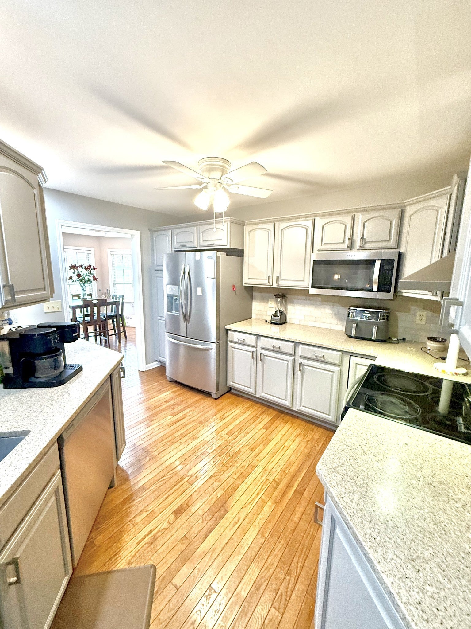 - Oven, Dishwasher, Microwave, Refrigerator, Stainless Steel Appliance(s)
