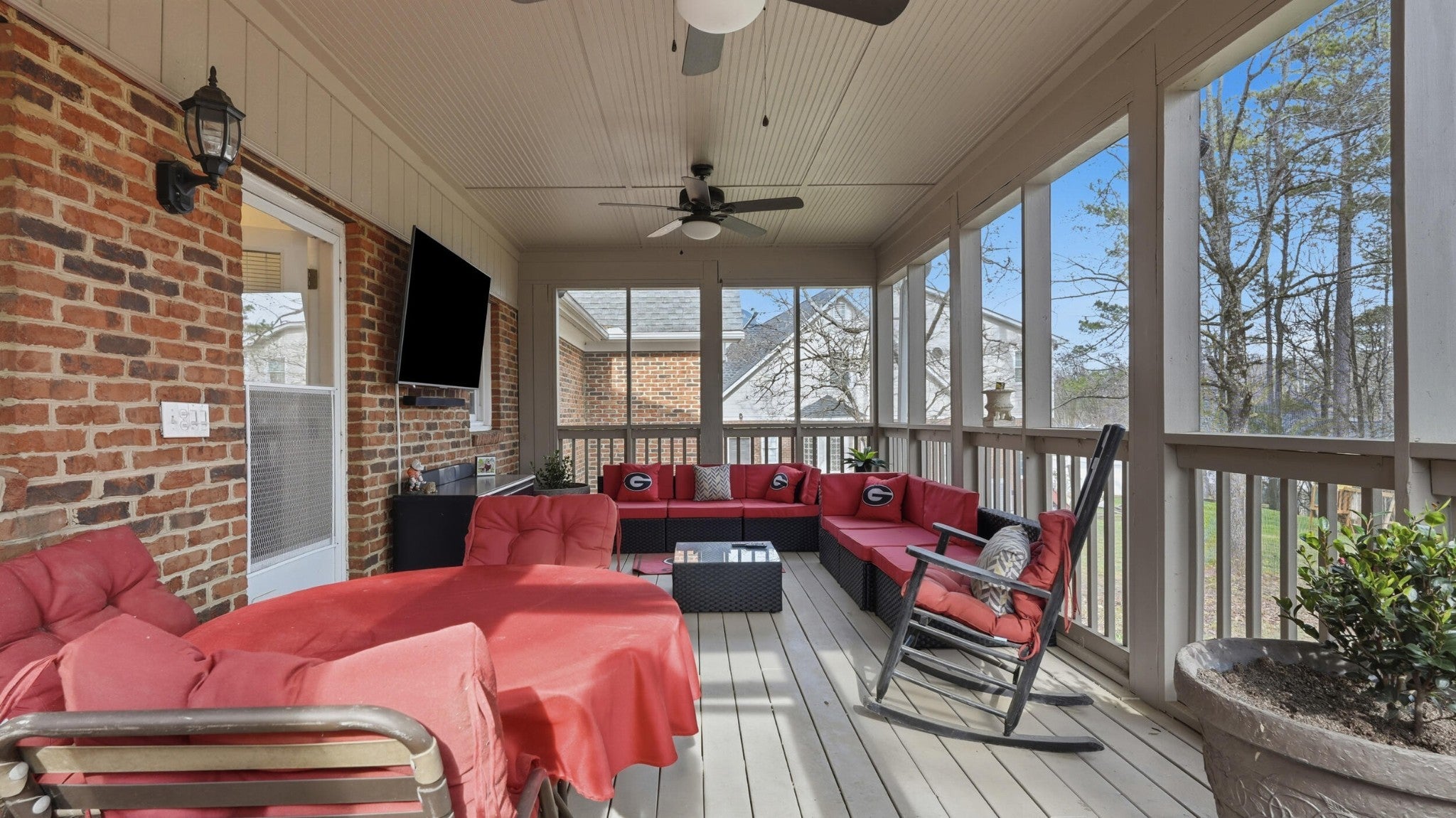 Welcome to this beautiful 3-bedroom, 2.5 bath brick home nestled in one of Dalton's most desirable neighborhoods. Offering the perfect blend of comfort and convenience, this home features a spacious open living area with a fireplace, abundant natural light, and tasteful updates throughout. The kitchen is equipped with ample cabinet space, a breakfast area, and easy access to the main living and dining area, ideal for everyday living or entertaining. The primary suite offers generous space, a private en-suite bath, and his and hers closets! Two additional bedrooms upstairs provide flexibility for guests, kids, or a home office. Step outside to a large, level backyard, perfect for pets, play, or outdoor gatherings. Enjoy peaceful evenings reading or watching TV on the screened in back porch. There is also a garage/storage building in the backyard with a bedroom. This could be turned into an in-law suite or guest house if desired. Additional features include a two-car garage, low-maintenance brick exterior, and a prime location just minutes from schools, shopping, restaurants, and I-75. This home is truly move-in ready with elevated, luxury touches throughout, a rare opportunity in this location.
