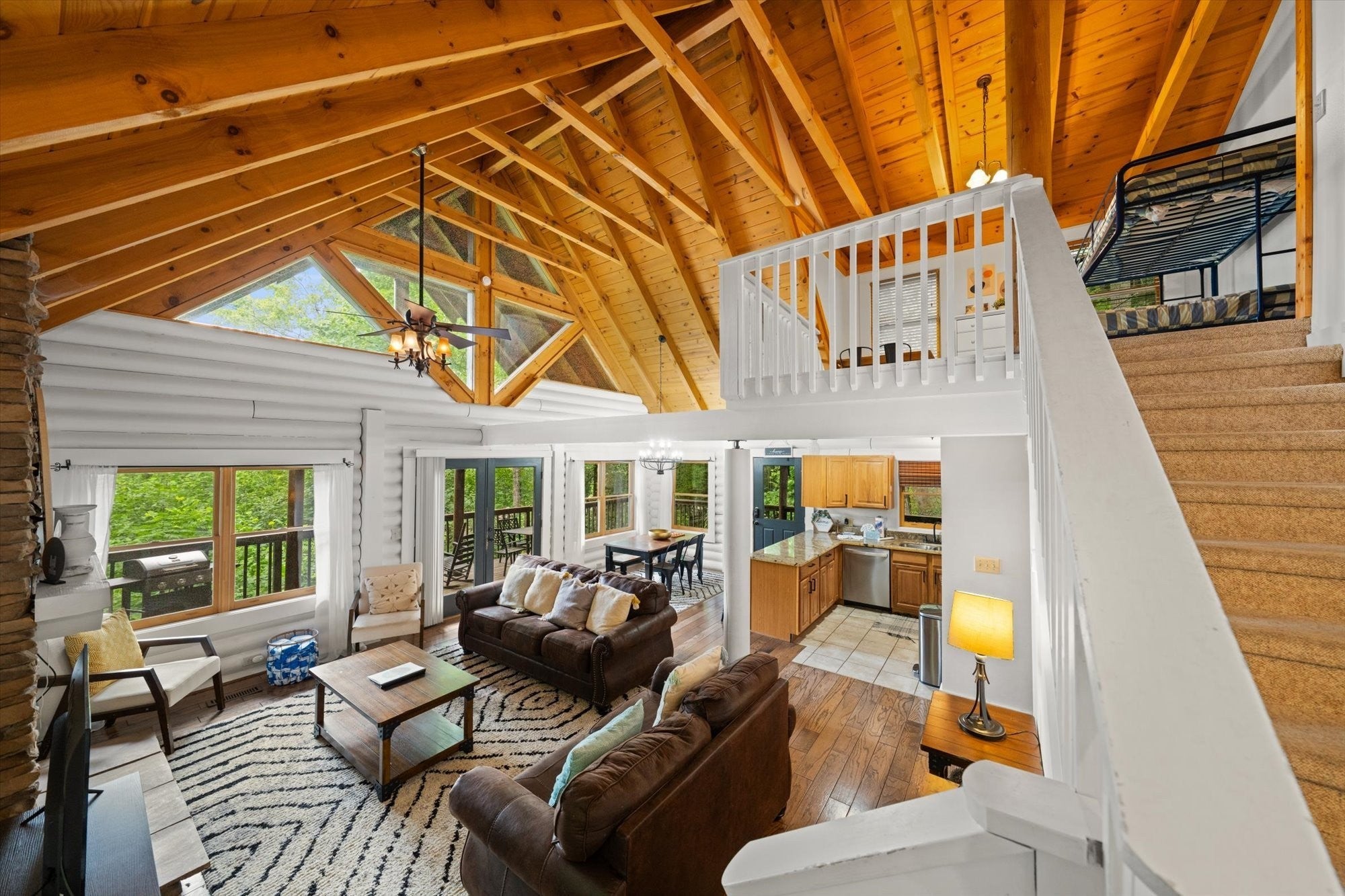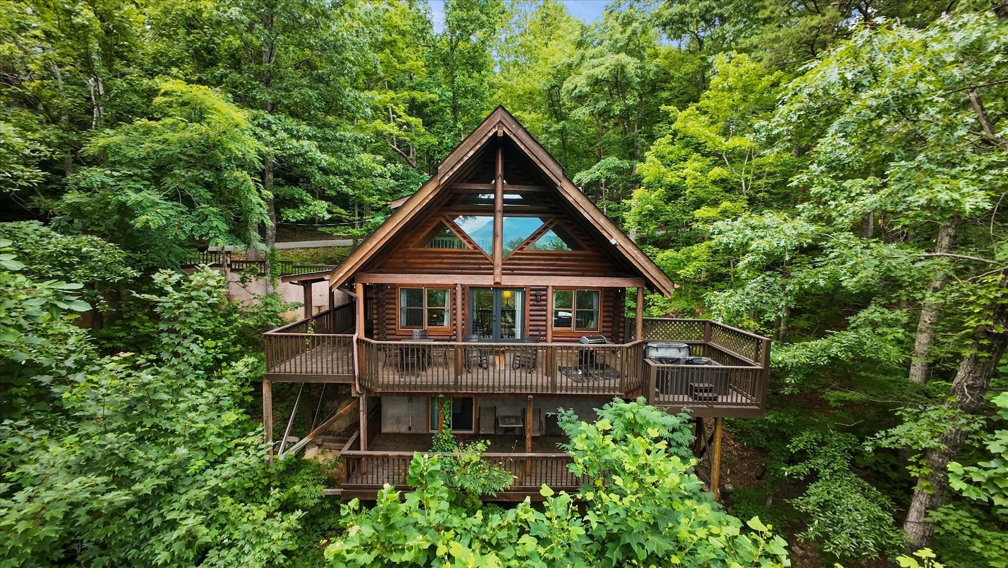 Experience true mountain living in this fully furnished log cabin in Gatlinburg with stunning views of Mt. LeConte. This spacious retreat sleeps 10+ and features 6 beds across 3 bedrooms plus 2 bonus rooms. Enjoy great community amenities, including 3 pools, basketball and tennis courts, 24-hour security, and nearby Bent Creek Golf Course. Inside, the cabin blends modern comfort with rustic charm, offering vaulted ceilings, a stacked-stone fireplace, and floor-to-ceiling windows that highlight the mountain scenery. Step onto the large deck to relax in your private hot tub and take in the views. A game room, remote access, and excellent guest reviews make this an ideal rental or personal getaway. This cabin offers the perfect Smoky Mountain escape.