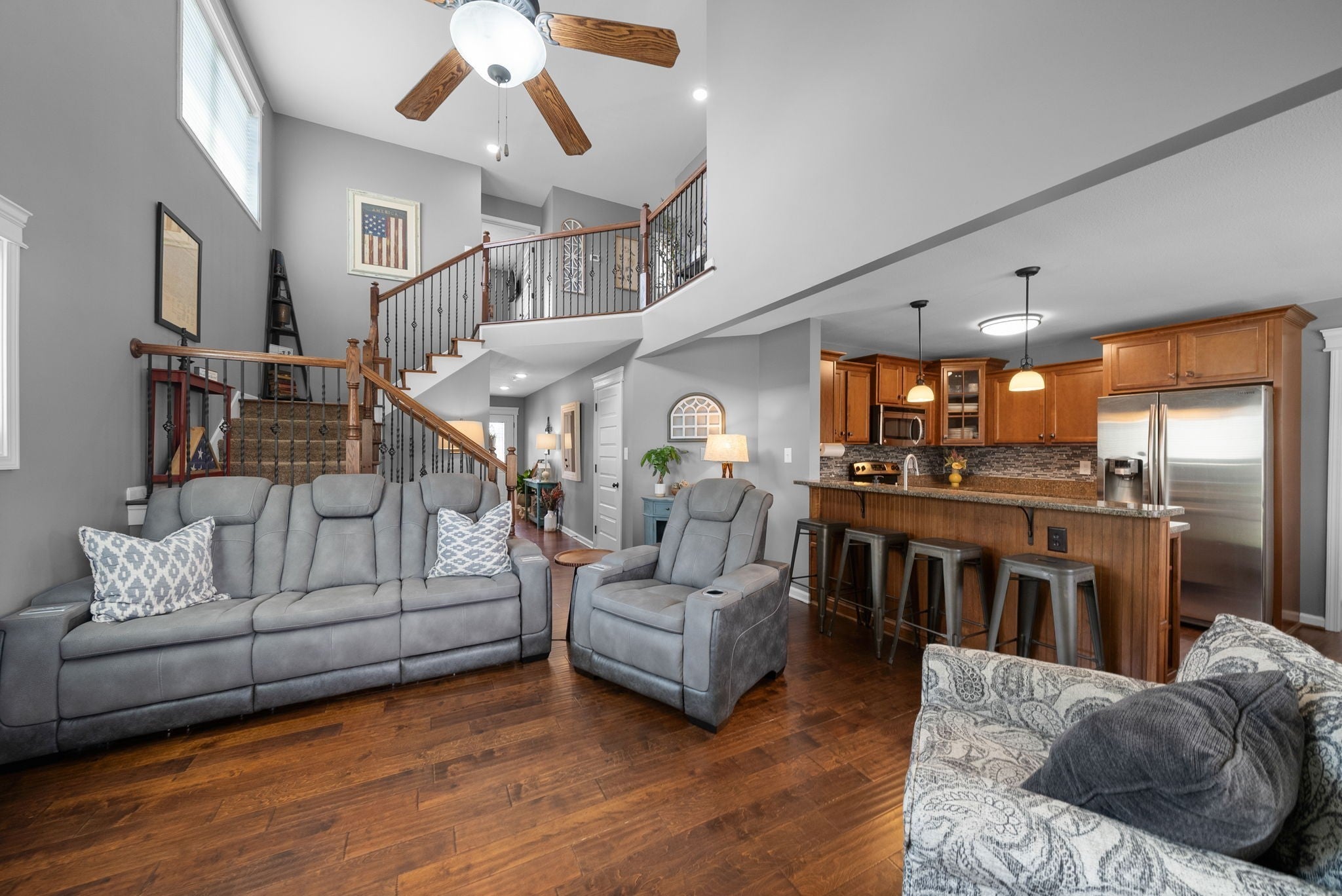 PRIME LOCATION in Sango with a gem of a backyard! This is the affordable 4 bedroom home you've been looking for in the beautiful Ivy Bend Subdivision! Gorgeous wood floors throughout the main floor of this immaculately maintained home. Office w/custom built in bookshelves. Eat in kitchen with granite counters open to cozy living room with gas fireplace and tall ceilings. Upstairs you will find the primary suite, 3 spare bedrooms and 2 full baths. Extra driveway parking, fenced backyard with fire pit and gorgeous landscaping! Come see this GEM today and bring us an offer!