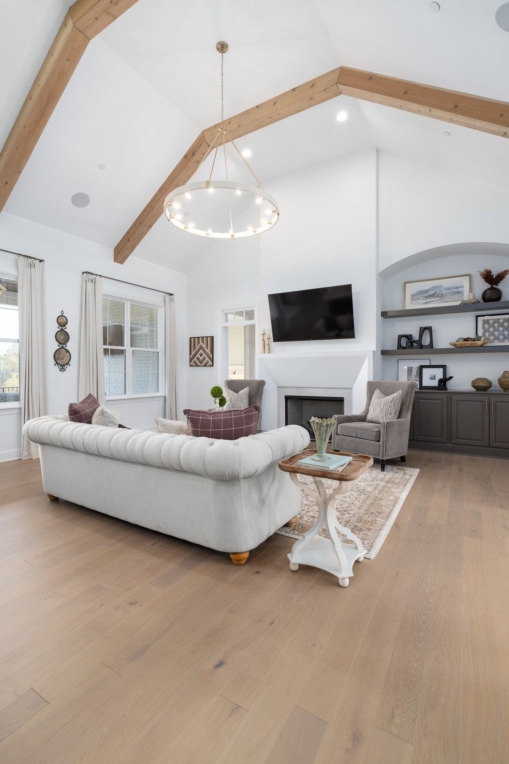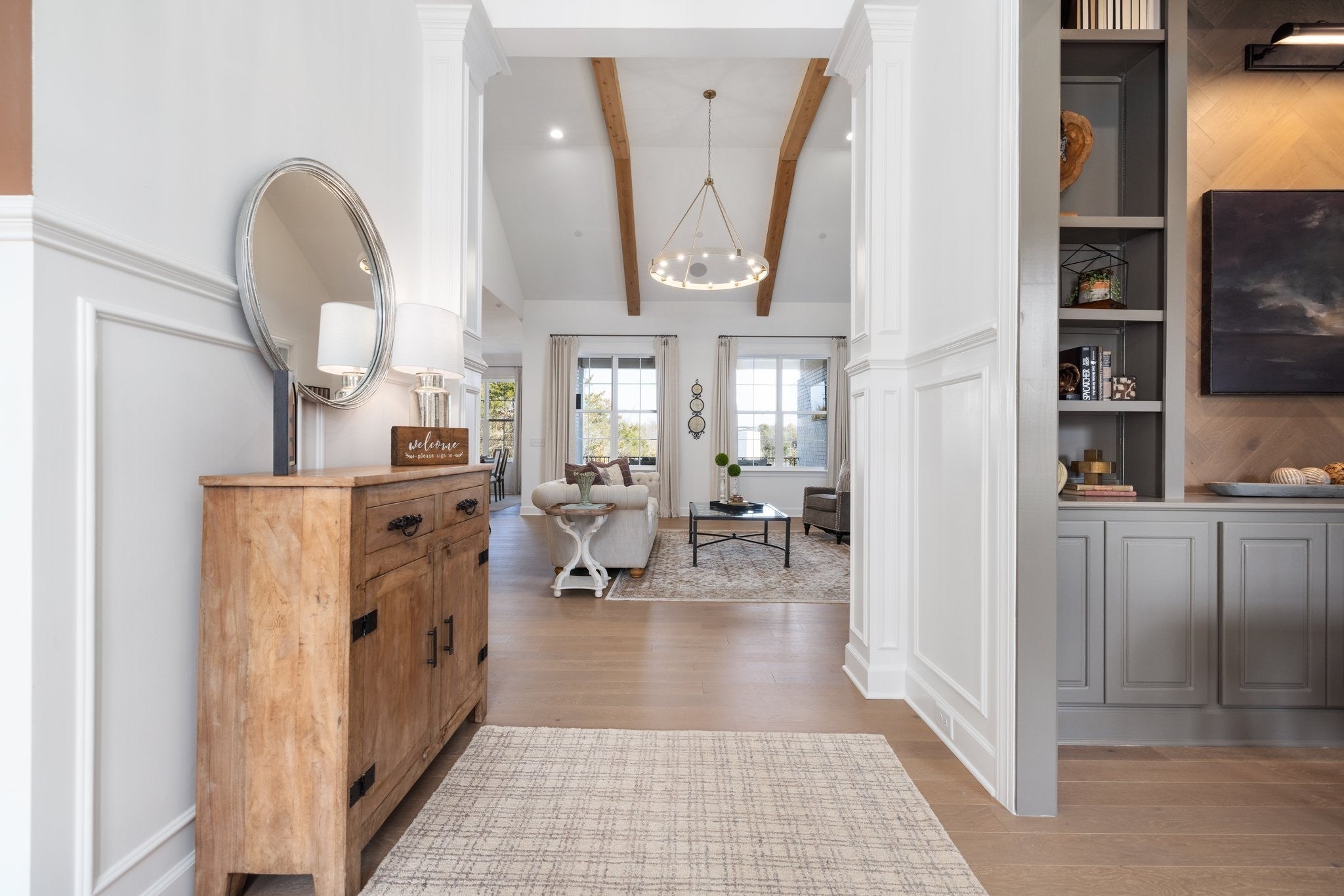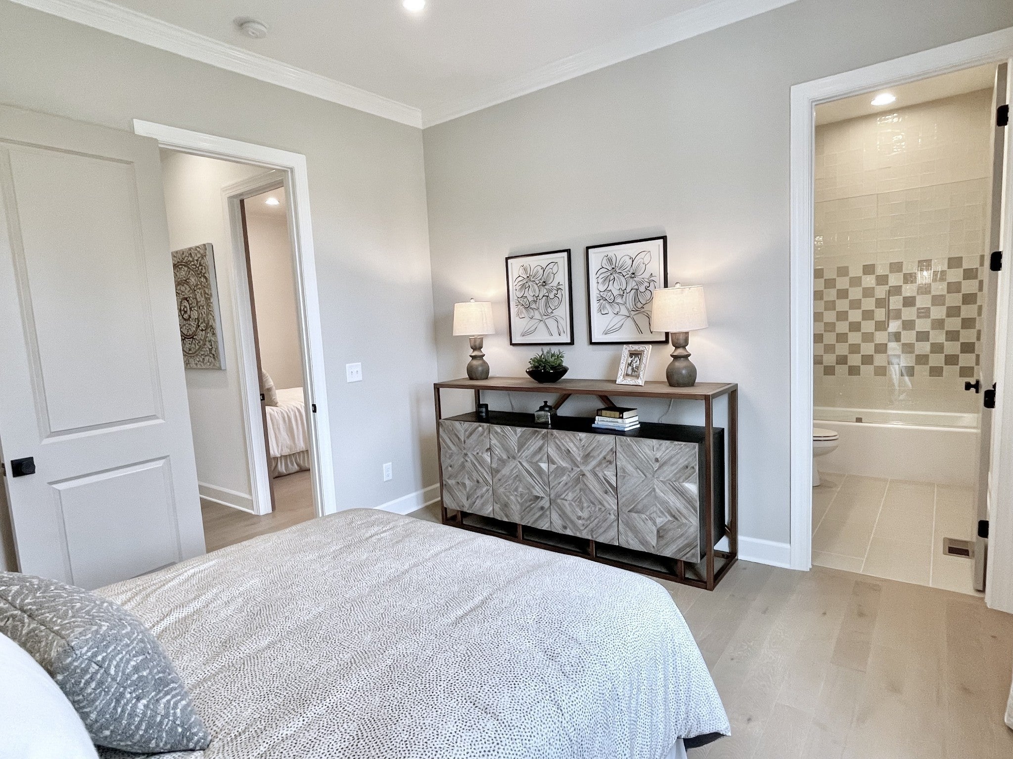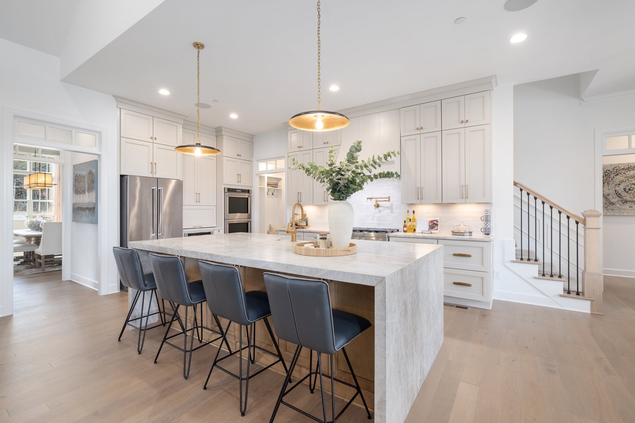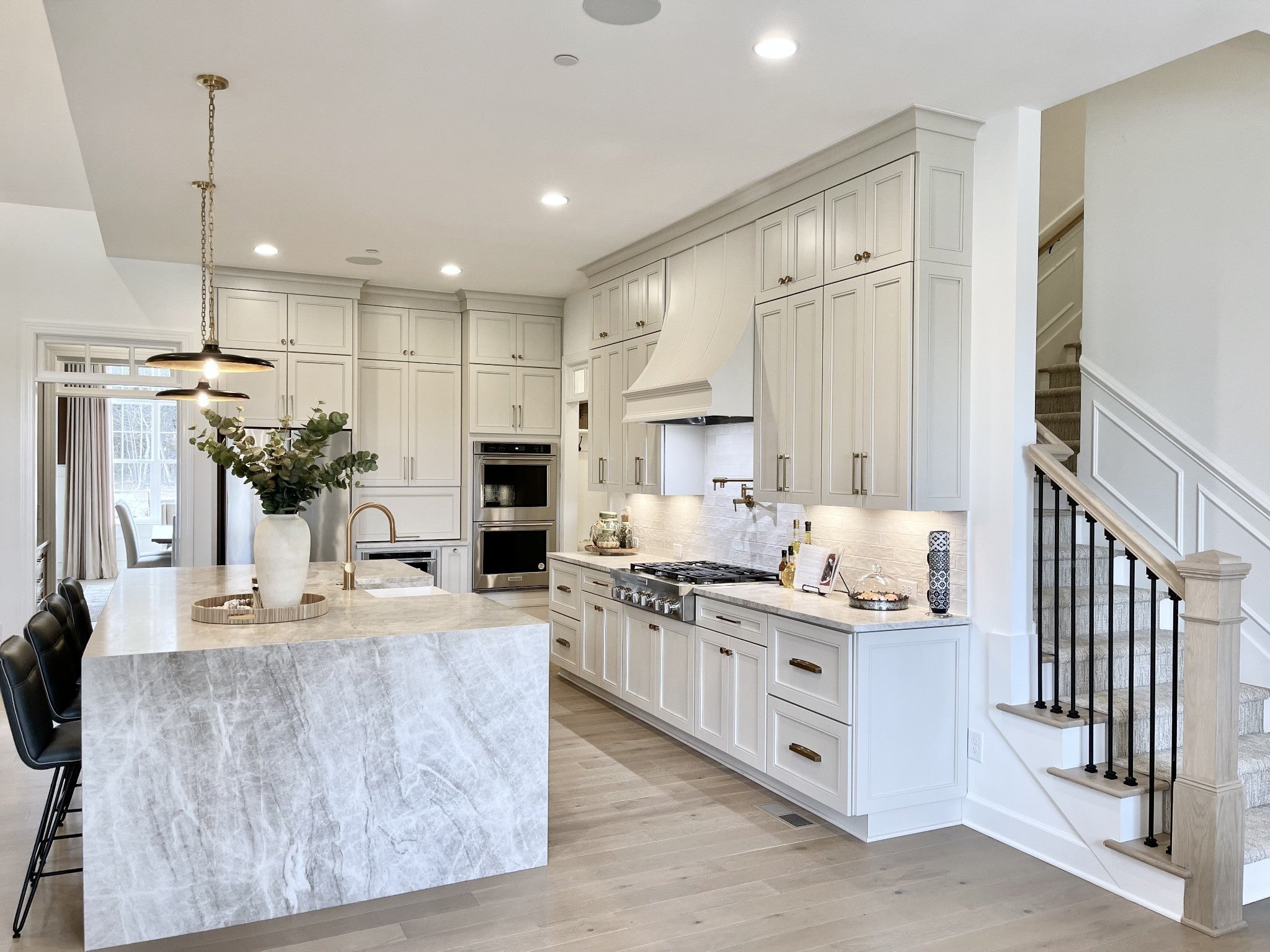 Experience exceptional craftsmanship and easy, elevated living in this beautifully designed Turnberry model home featuring an open floorplan with mostly one-level living. Stunning designer lighting, curated finishes, and thoughtful architectural details define every inch of this impressive residence. The layout maximizes natural light, seamless flow, and everyday functionality—perfect for modern living and effortless entertaining. The main level offers true one-level convenience, with the primary living areas, study, kitchen, dining room, entertaining spaces, owner’s suite, and two additional guest suites all located on the first floor. Both main-level guest retreats feature private en-suite baths, walk-in closets, and hardwood floors, creating comfortable, luxurious spaces for family and visitors. Step outside to the inviting covered porch and stamped-concrete entertaining terrace, complete with a wood-burning fireplace—your ideal setting for morning coffee, outdoor dining, or unwinding by the fire at day’s end. Upstairs, enjoy a private guest retreat, a generous bonus room, and a hobby/flex room, offering endless versatility for recreation, guests, work, or creative pursuits. A large walk-in storage room provides exceptional convenience for seasonal items, décor, luggage, and more—easily accessible at the top of the staircase. Situated in a quiet and serene setting, yet just minutes to shopping, dining, and everyday conveniences, Pasadena is located within the Town of Nolensville but carries a Brentwood mailing address. BONUS: All window drapes, area rugs, appliances, and wall-mounted TVs remain.