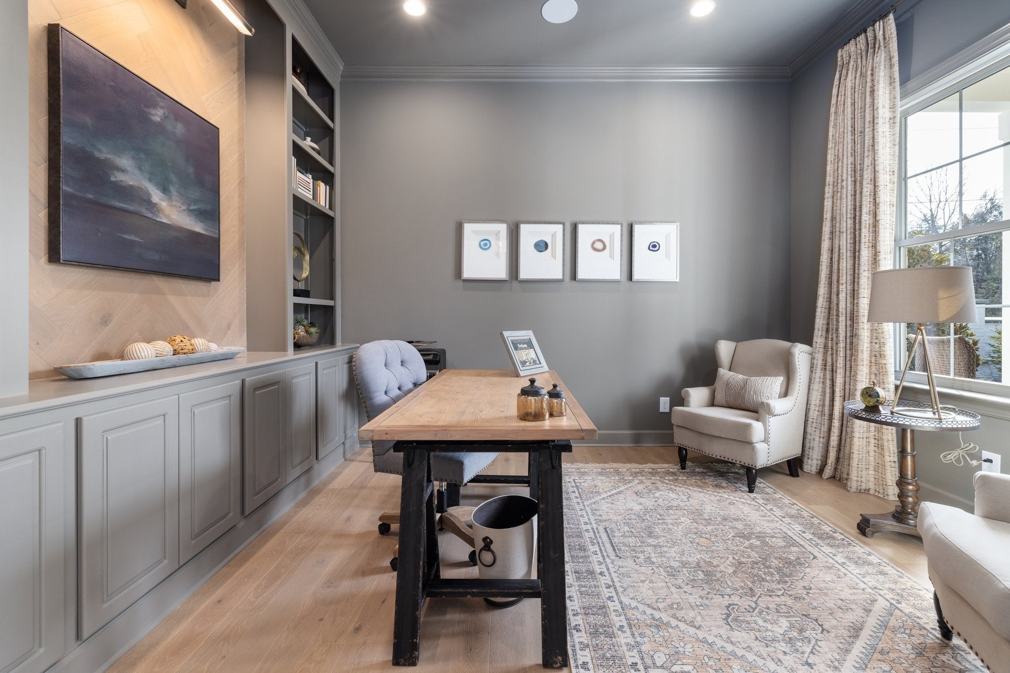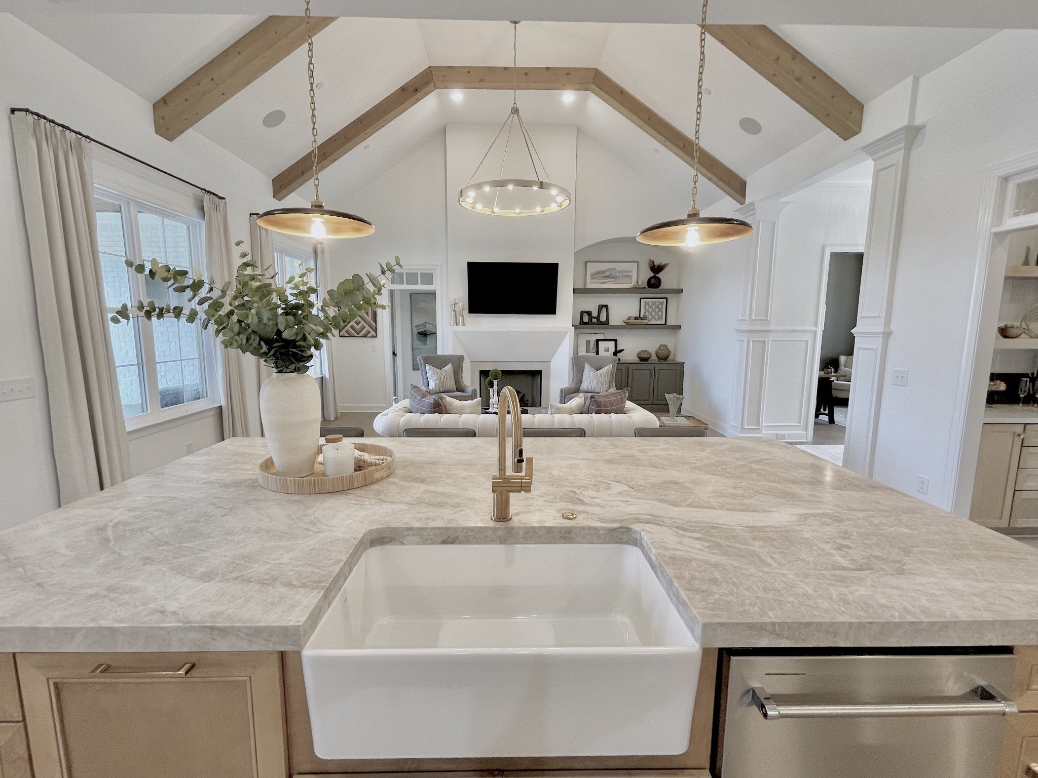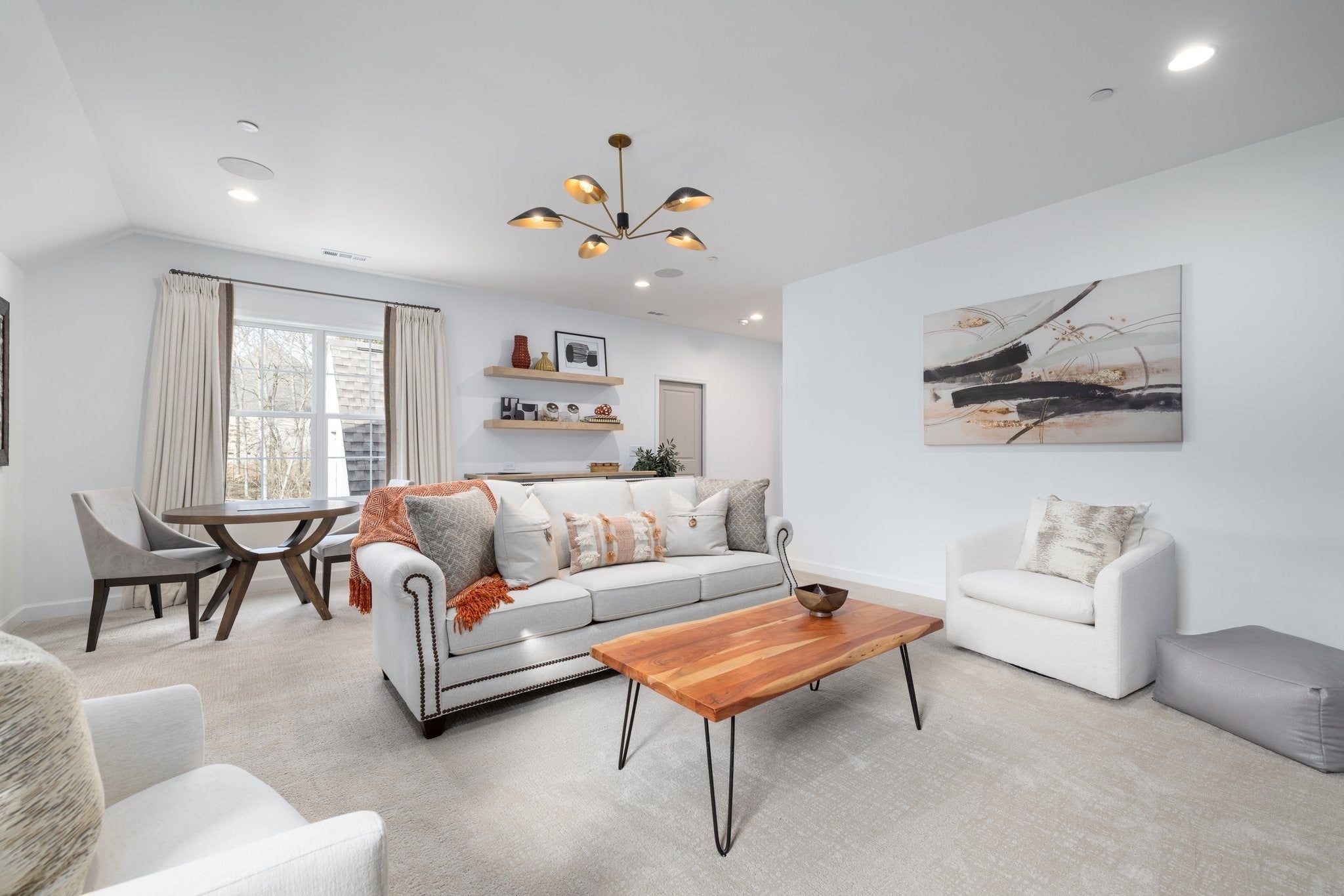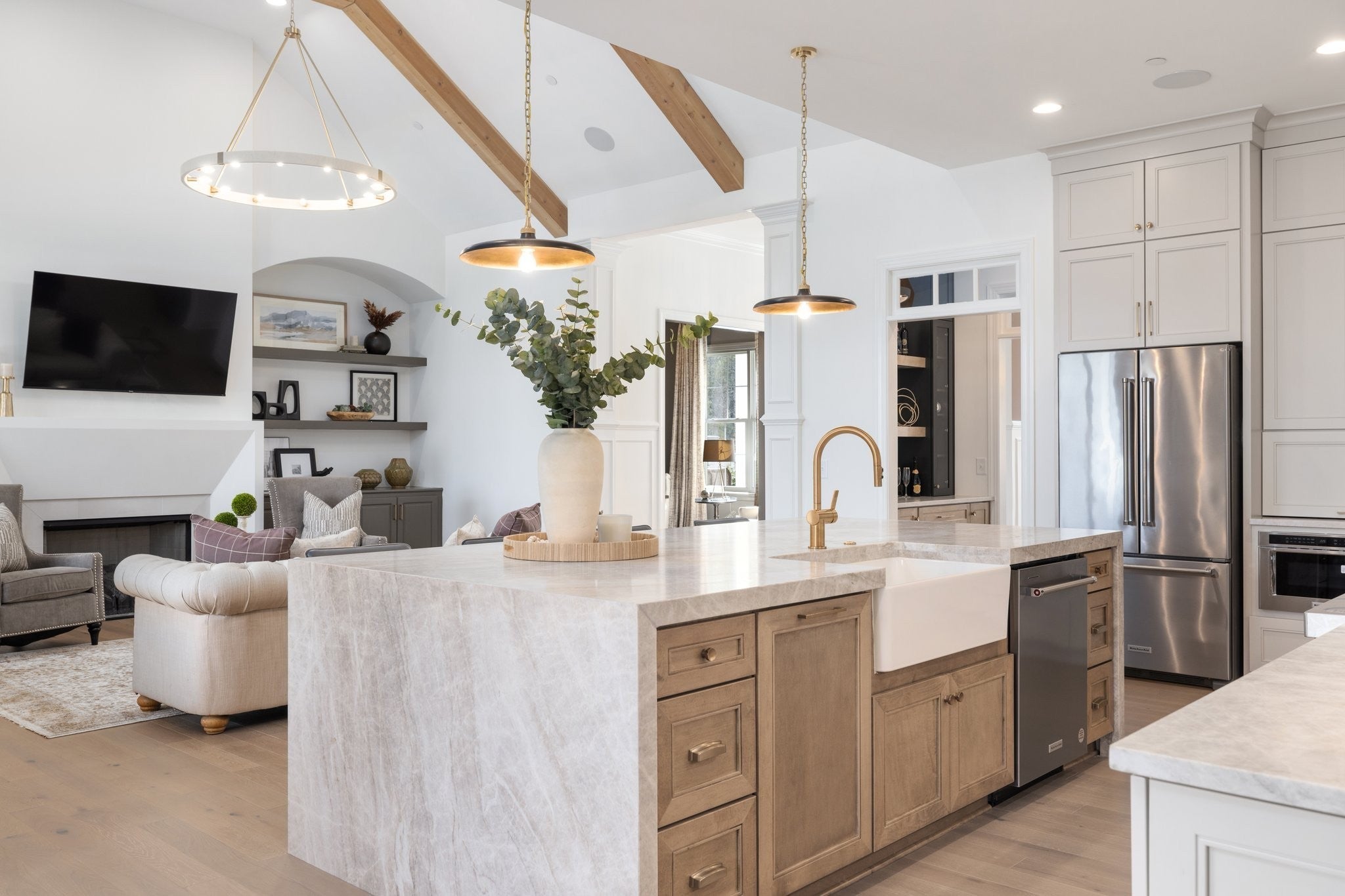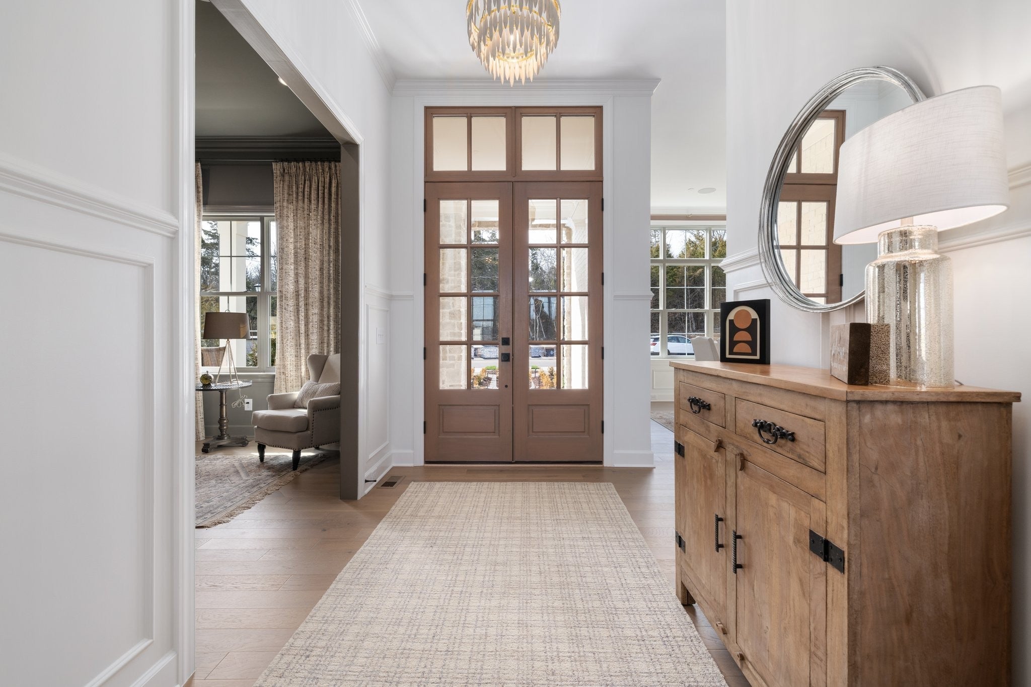 Experience exceptional craftsmanship and easy, elevated living in this beautifully designed Turnberry model home featuring an open floorplan with mostly one-level living. Stunning designer lighting, curated finishes, and thoughtful architectural details define every inch of this impressive residence. The layout maximizes natural light, seamless flow, and everyday functionality—perfect for modern living and effortless entertaining. The main level offers true one-level convenience, with the primary living areas, study, kitchen, dining room, entertaining spaces, owner’s suite, and two additional guest suites all located on the first floor. Both main-level guest retreats feature private en-suite baths, walk-in closets, and hardwood floors, creating comfortable, luxurious spaces for family and visitors. Step outside to the inviting covered porch and stamped-concrete entertaining terrace, complete with a wood-burning fireplace—your ideal setting for morning coffee, outdoor dining, or unwinding by the fire at day’s end. Upstairs, enjoy a private guest retreat, a generous bonus room, and a hobby/flex room, offering endless versatility for recreation, guests, work, or creative pursuits. A large walk-in storage room provides exceptional convenience for seasonal items, décor, luggage, and more—easily accessible at the top of the staircase. Situated in a quiet and serene setting, yet just minutes to shopping, dining, and everyday conveniences, Pasadena is located within the Town of Nolensville but carries a Brentwood mailing address. BONUS: All window drapes, area rugs, appliances, and wall-mounted TVs remain.