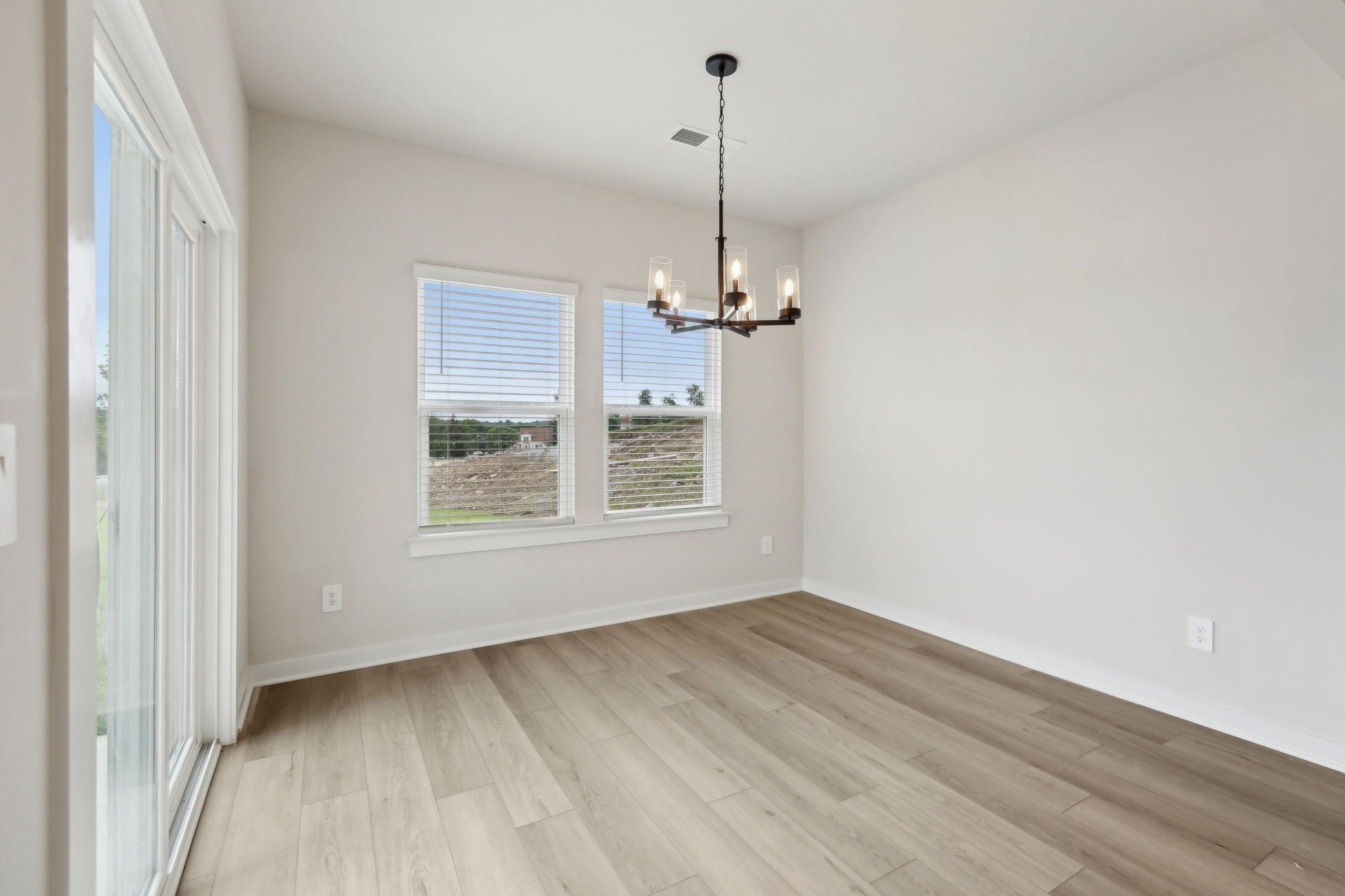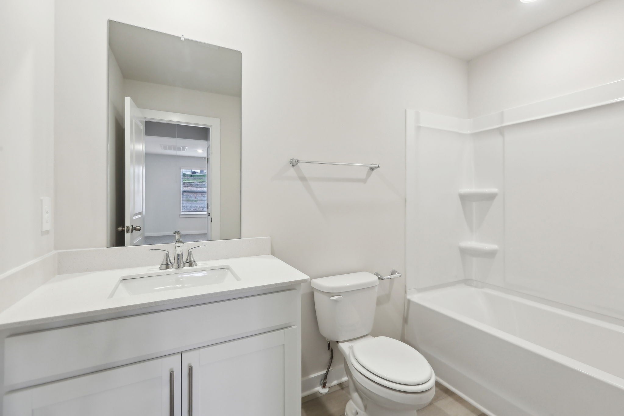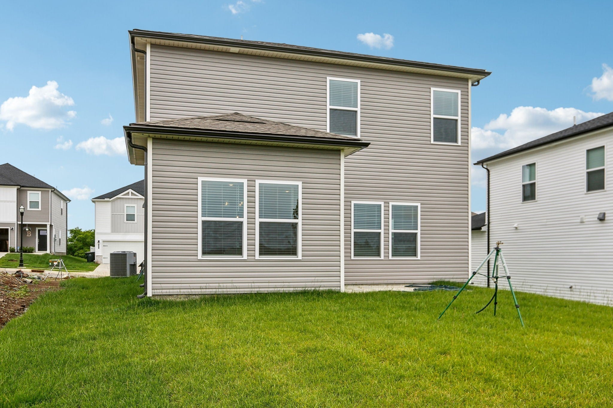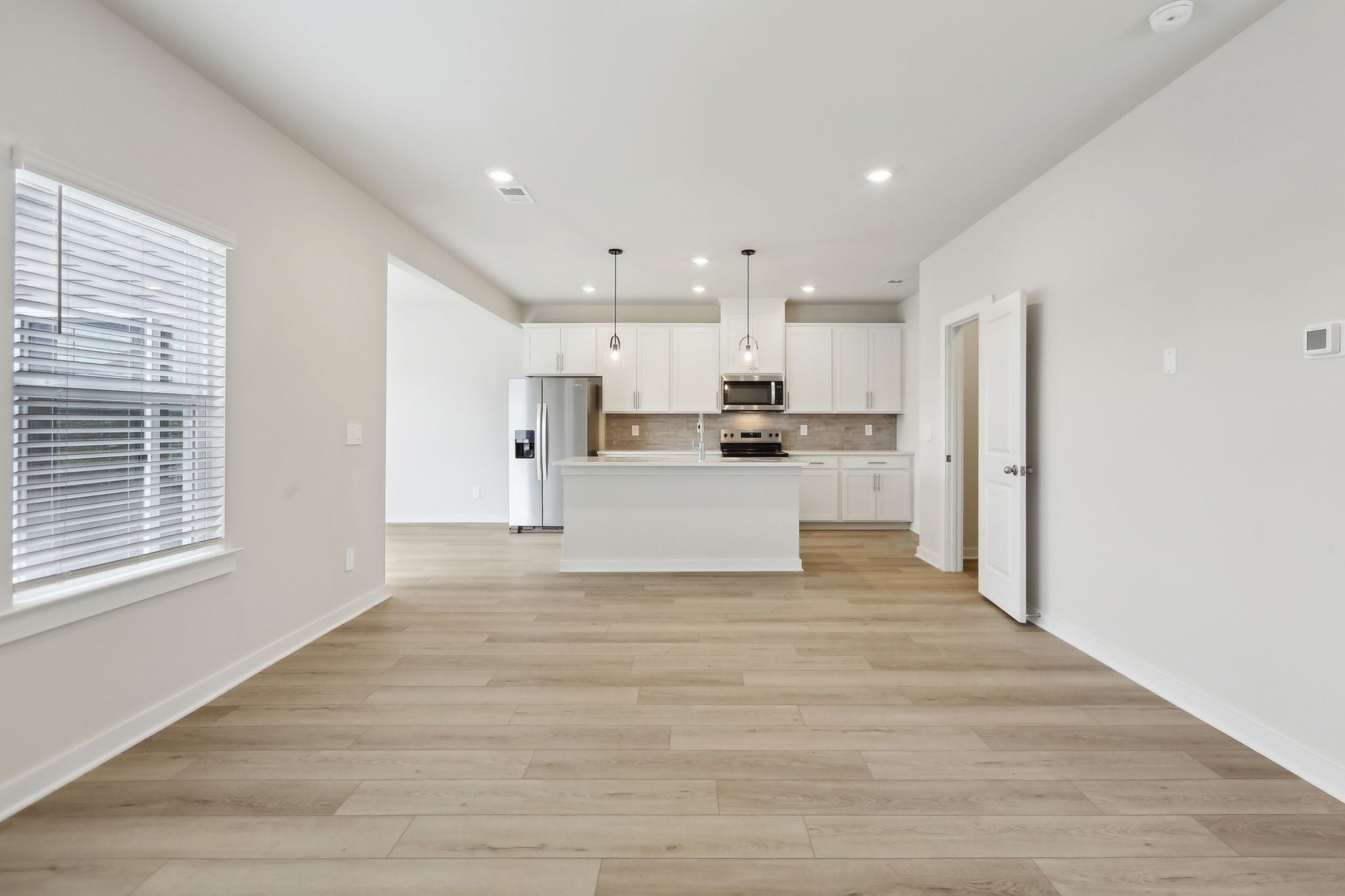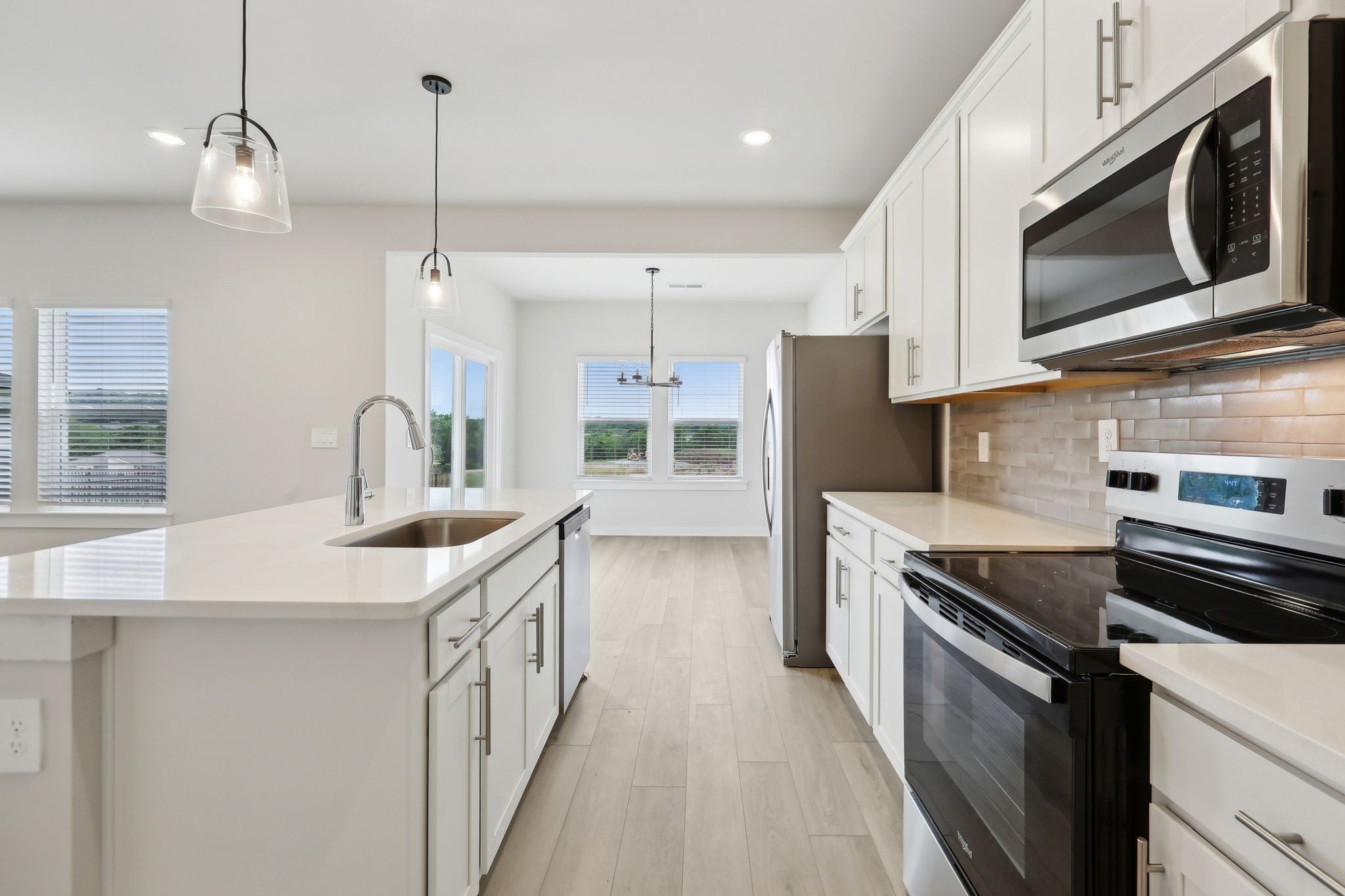 This brand new construction home is a show stopper! Check out the custom garage door that matches with the beautiful front door! Convenient half bath downstairs with the entrance to the garage. Spacious living room with lots of natural light! Large kitchen with SS appliances to include dishwasher, refrigerator, microwave, and stove. Washer and dryer convey with the property. Pretty backsplash in the kitchen goes well with the brand new cabinets and countertops! Lots of cabinet space for plenty of storage and a pantry! Very hard to find! Separate space for a dining room! The dining room has plenty of windows for natural light! Beautiful light fixtures in the home! Coming up the stairs you will find yourself on a large landing! There's potential to put some extra flare in that area! 3 bedrooms are upstairs with plenty of space for furniture in each room! Not to mention the primary bedroom is a lovely size with a spacious primary bathroom! Double vanities, huge WIC, stunning tiled shower, and matching cabinetry. Exiting the home in the back has a cozy patio space!