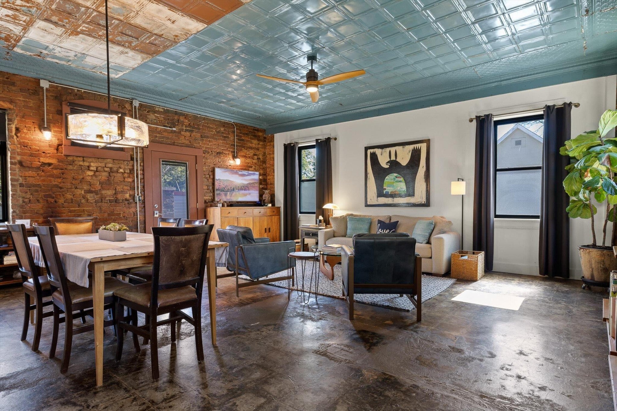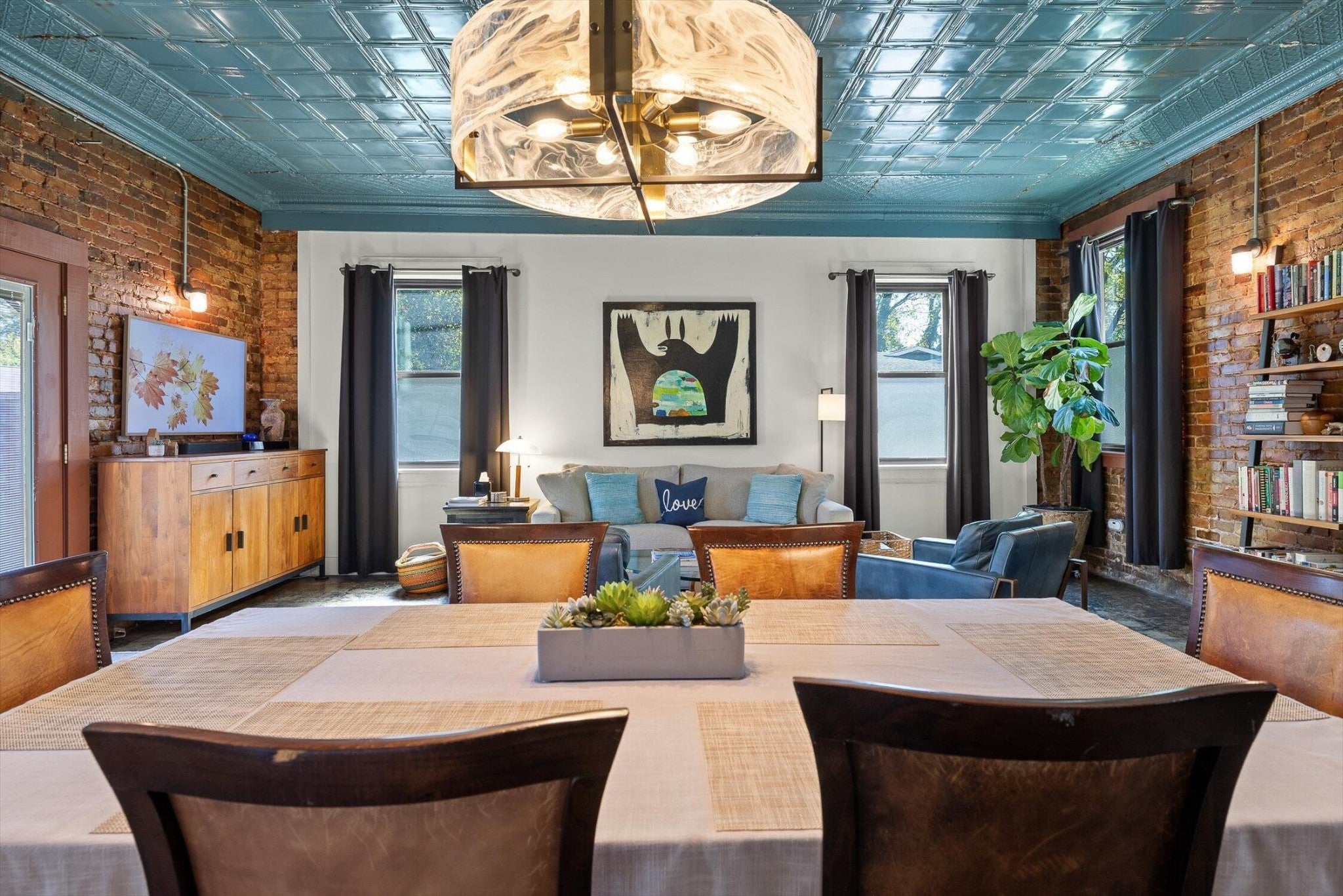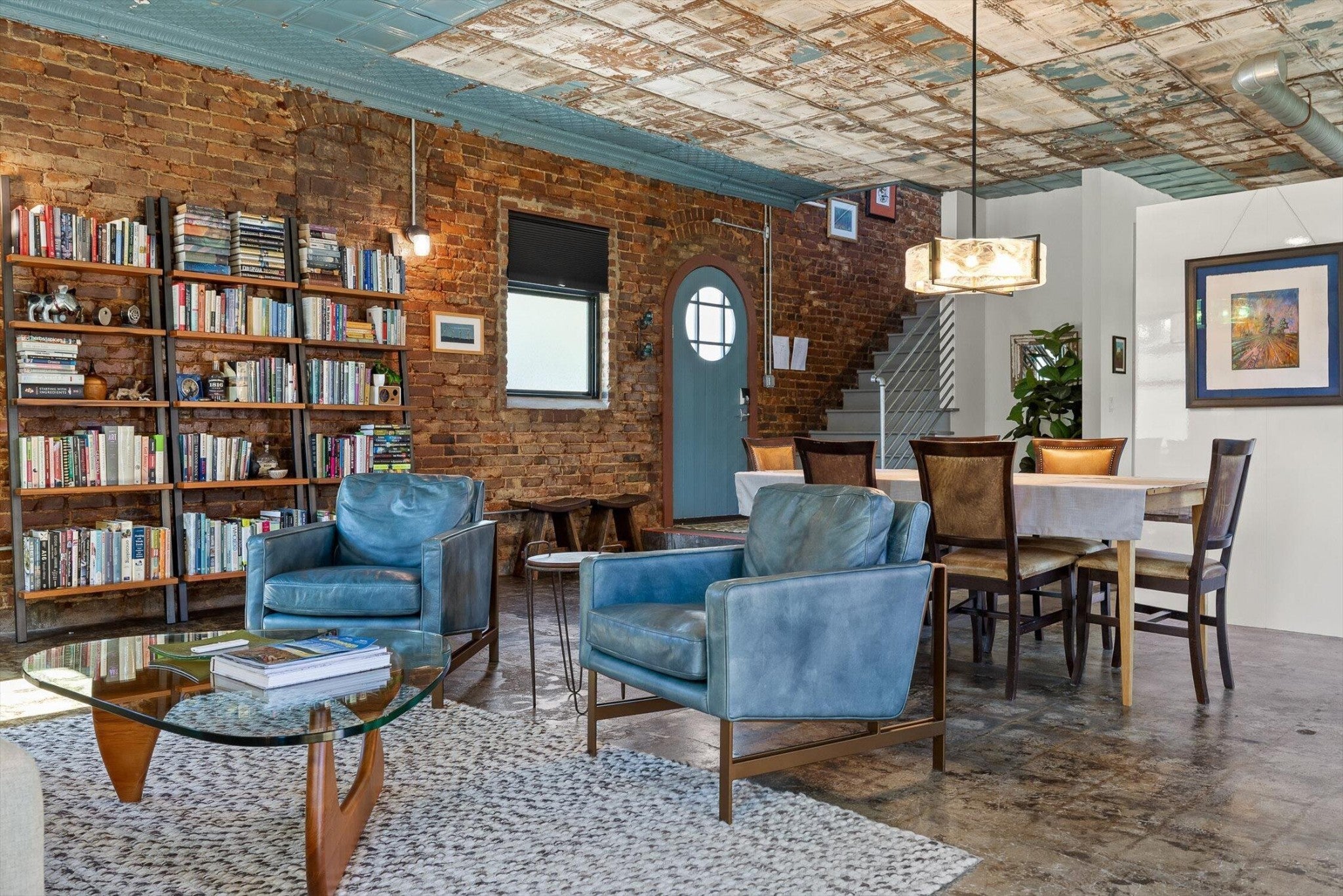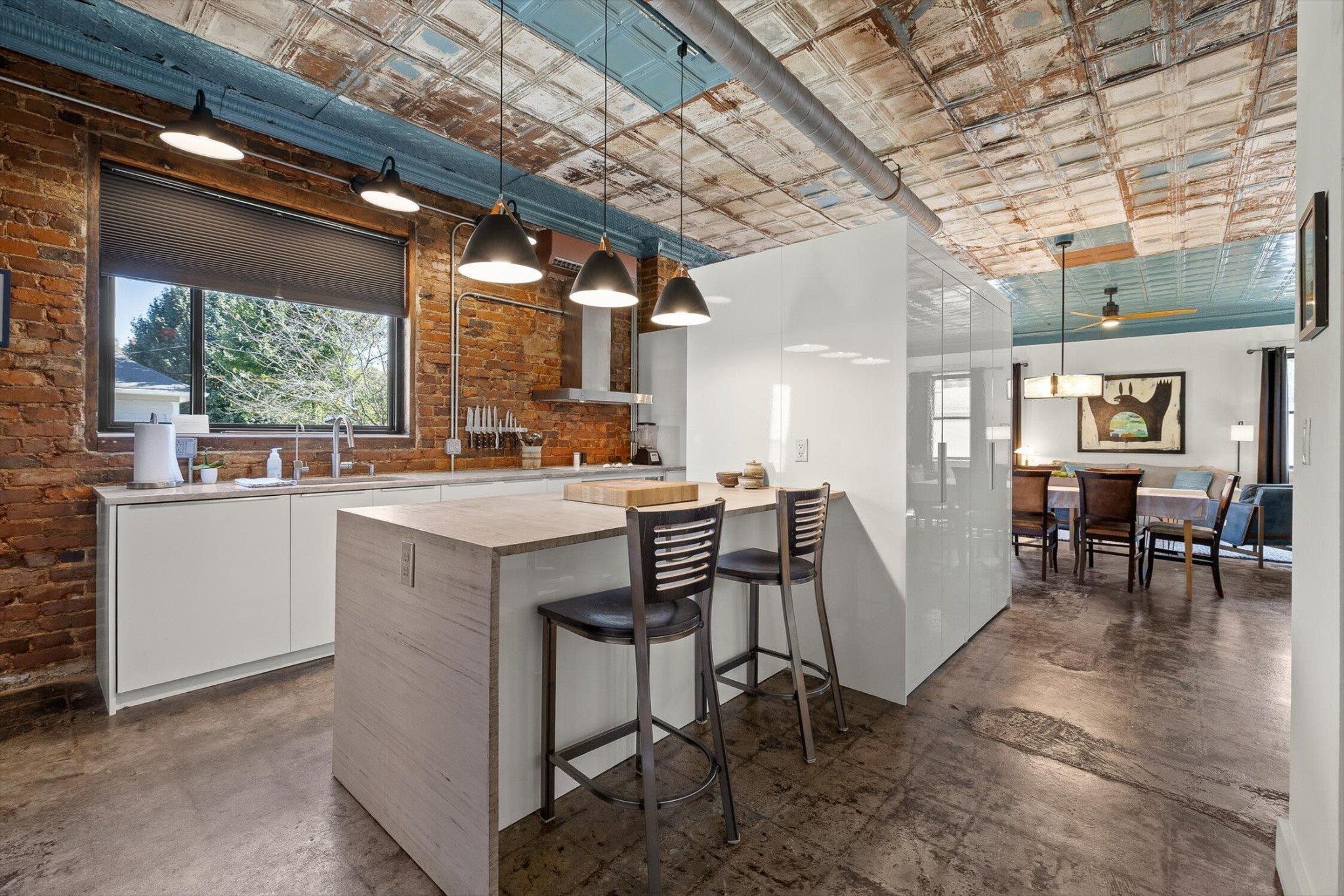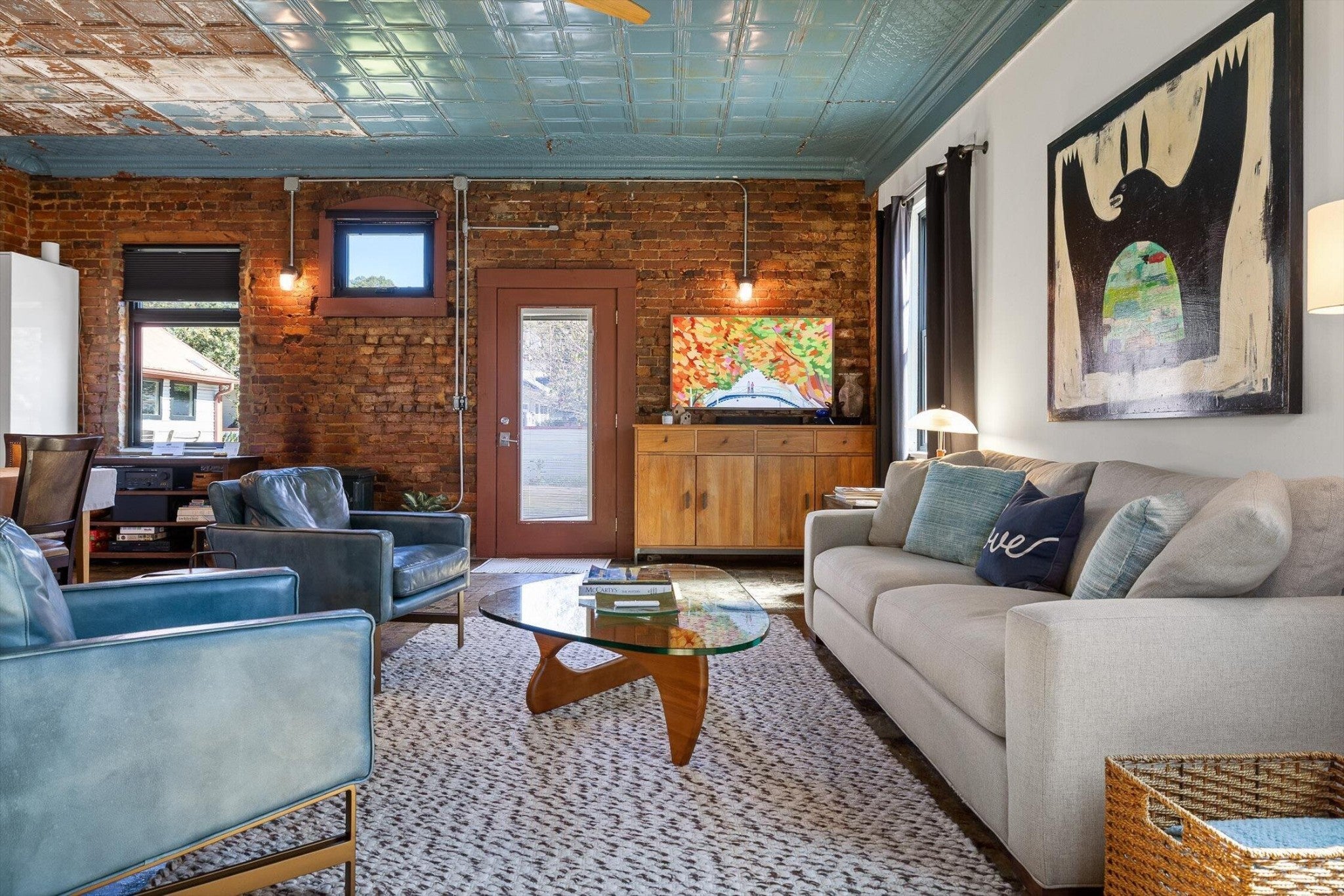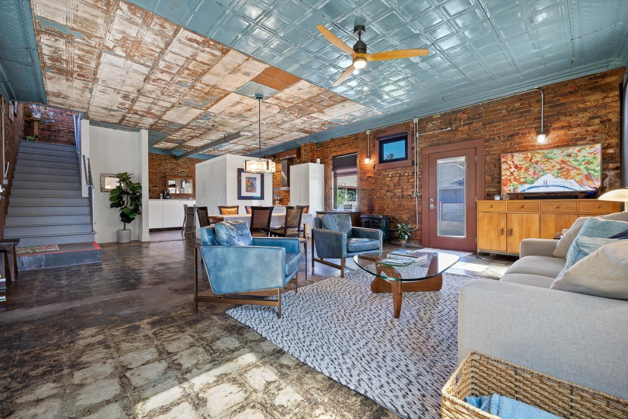 Discover an extraordinary investment property with this one-of-a-kind 1920s firehouse conversion located in the heart of North Chattanooga. Currently operating as two successful short-term rental units, with the potential for a third, this property blends historic charm with modern comfort and offers exceptional flexibility for both investors and owner-operators. The spacious main unit showcases original details including pressed tin ceilings, exposed brick walls, and polished concrete floors. It has been thoughtfully updated to provide comfort and style, featuring an open combined living and dining room, well appointed kitchen with bar seating, two bedrooms, including a main-level king suite with an immense walk-in closet and private bath, along with a half bath and laundry closet for guest convenience. Upstairs, guests enjoy a private sitting area with a second bedroom and full bath. The second unit is a private lock-out apartment accessible by exterior staircase, complete with a full kitchen, an open living room with fireplace detail, a large bedroom with oversized closet and laundry, and a custom bathroom with an expansive walk-in shower. This unit features original exposed beam ceiling and hardwood floors which merge beautifully with the modern sealed pebble flooring and fixtures. Throughout both levels, all lighting and plumbing fixtures have been chosen to accent the period and history of the property, while modern cabinetry, soaring ceilings, and efficient split units provide style and comfort. You will not find better storage anywhere in Chattanooga. A two-car garage with additional storage offers excellent potential for conversion into a third income-producing unit or studio, further enhancing revenue opportunities. Outdoor spaces are equally appealing, with a fully fenced and gated custom courtyard featuring an automatic gate, landscaped patio, and stone pathways that create a relaxing retreat for guests.