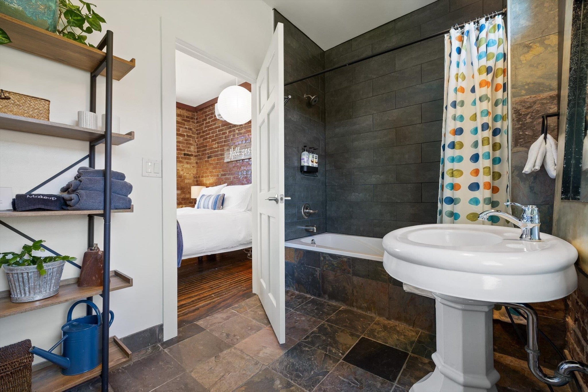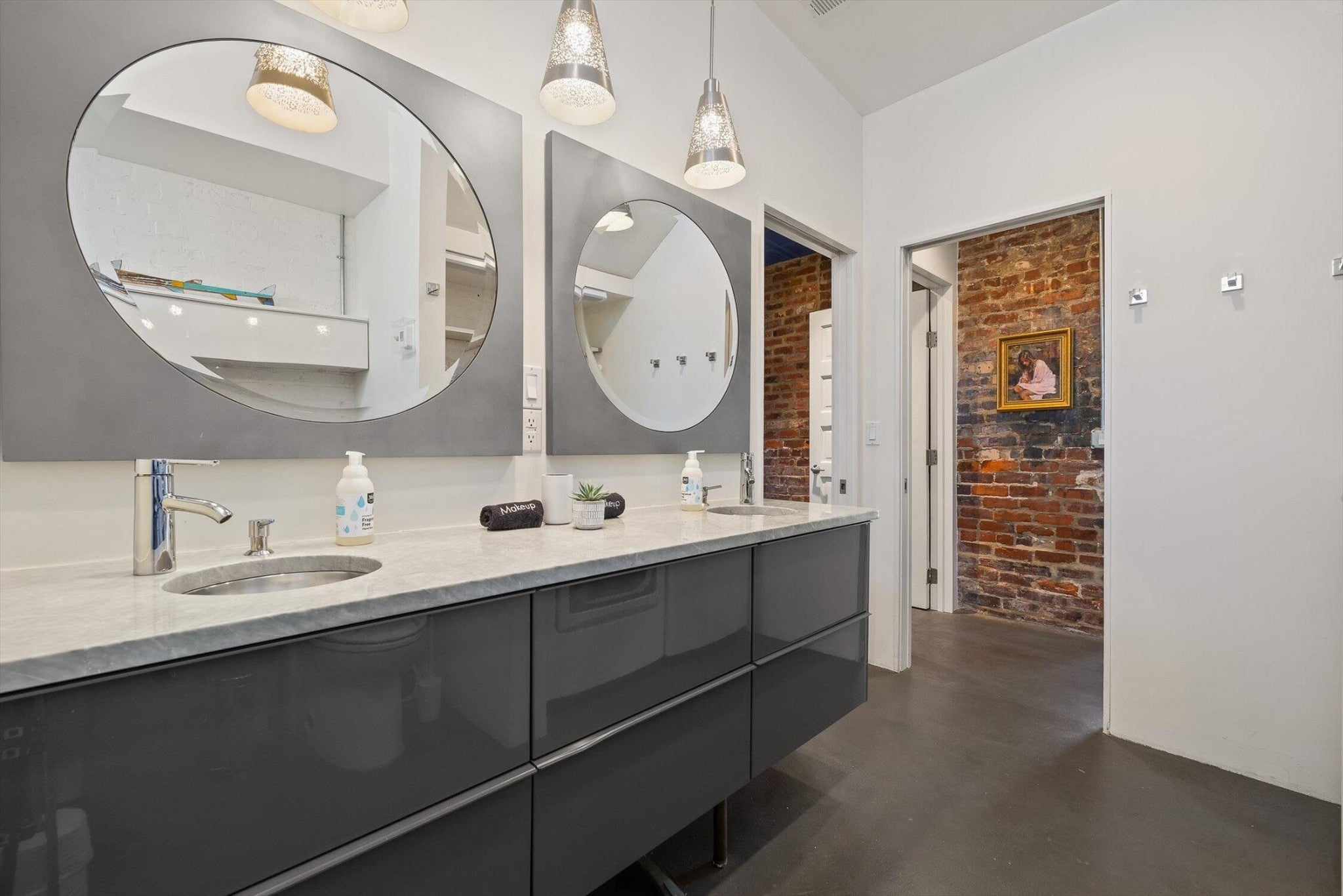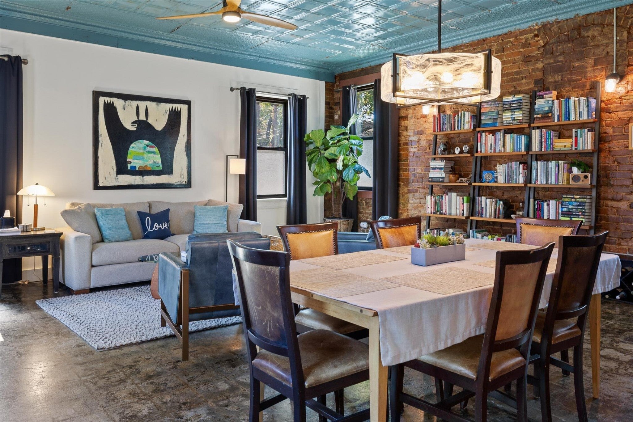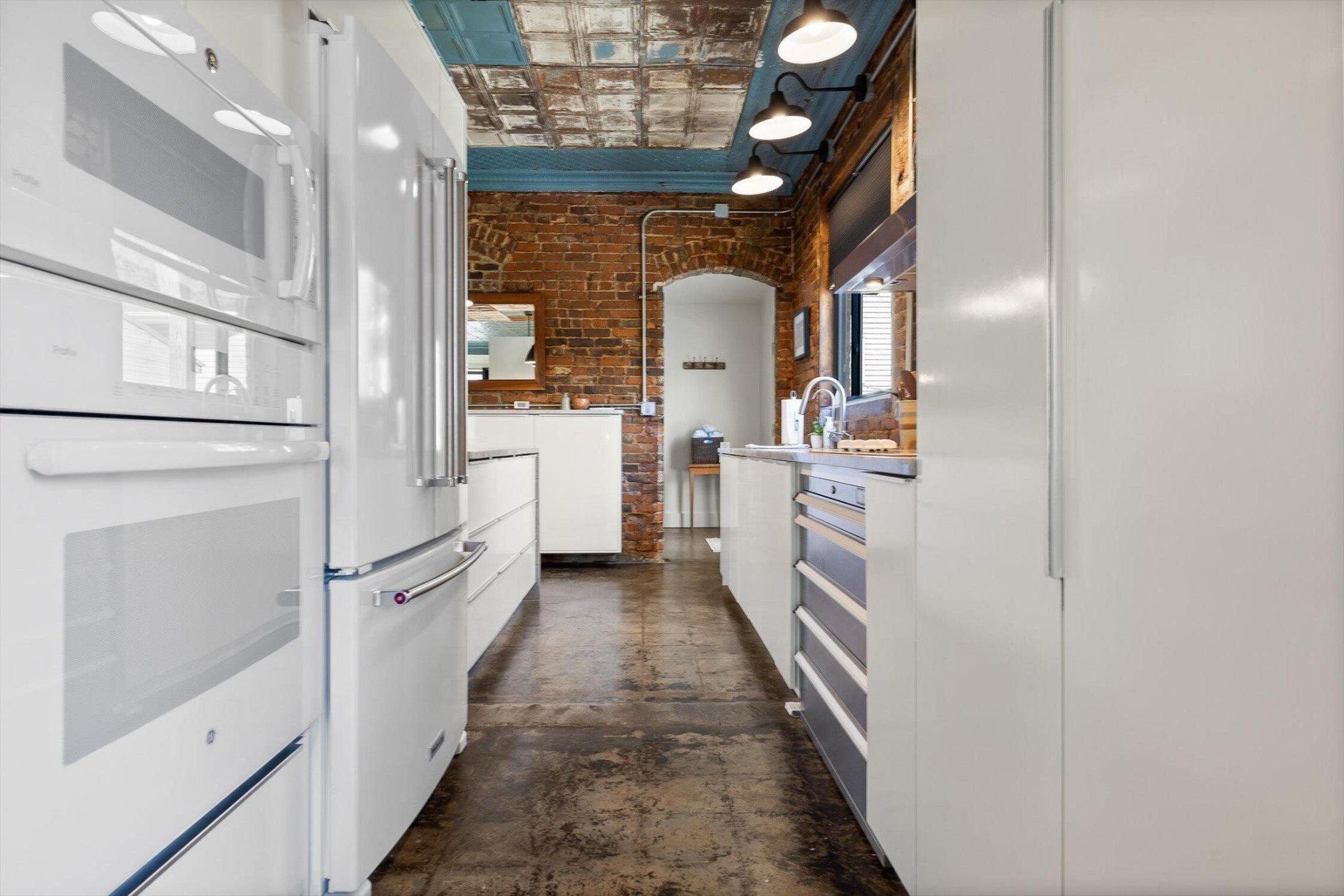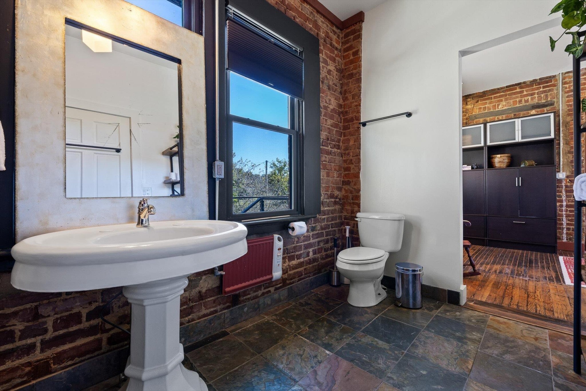 Discover an extraordinary investment property with this one-of-a-kind 1920s firehouse conversion located in the heart of North Chattanooga. Currently operating as two successful short-term rental units, with the potential for a third, this property blends historic charm with modern comfort and offers exceptional flexibility for both investors and owner-operators. The spacious main unit showcases original details including pressed tin ceilings, exposed brick walls, and polished concrete floors. It has been thoughtfully updated to provide comfort and style, featuring an open combined living and dining room, well appointed kitchen with bar seating, two bedrooms, including a main-level king suite with an immense walk-in closet and private bath, along with a half bath and laundry closet for guest convenience. Upstairs, guests enjoy a private sitting area with a second bedroom and full bath. The second unit is a private lock-out apartment accessible by exterior staircase, complete with a full kitchen, an open living room with fireplace detail, a large bedroom with oversized closet and laundry, and a custom bathroom with an expansive walk-in shower. This unit features original exposed beam ceiling and hardwood floors which merge beautifully with the modern sealed pebble flooring and fixtures. Throughout both levels, all lighting and plumbing fixtures have been chosen to accent the period and history of the property, while modern cabinetry, soaring ceilings, and efficient split units provide style and comfort. You will not find better storage anywhere in Chattanooga. A two-car garage with additional storage offers excellent potential for conversion into a third income-producing unit or studio, further enhancing revenue opportunities. Outdoor spaces are equally appealing, with a fully fenced and gated custom courtyard featuring an automatic gate, landscaped patio, and stone pathways that create a relaxing retreat for guests.
