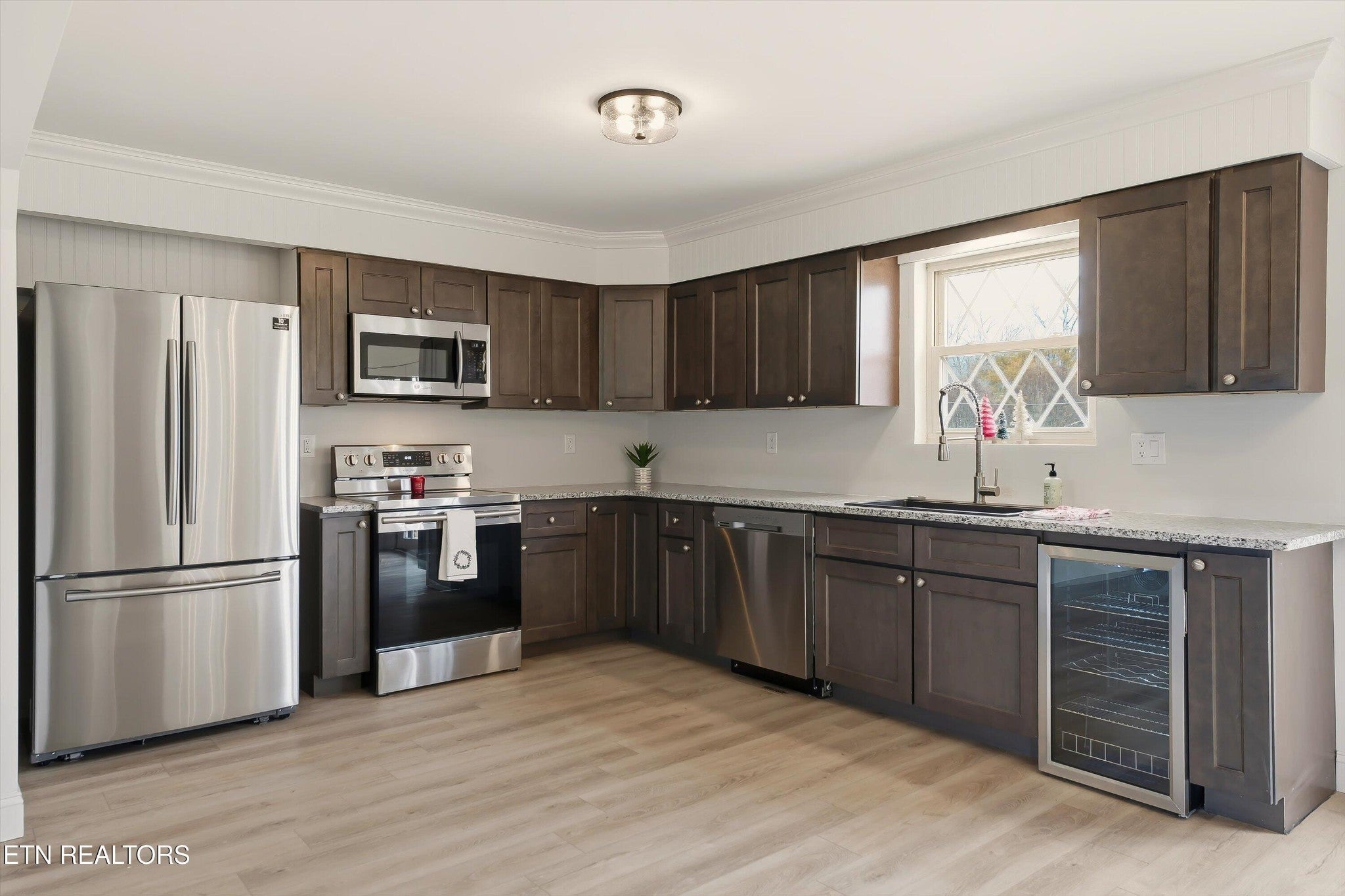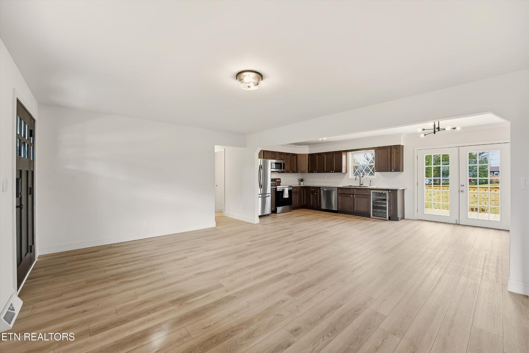 Discover this fully renovated all brick basement ranch on over half an acre in peaceful LaFollette! Offering 2,425 sq ft of updated living space plus 1,085 sq ft of unfinished storage, this home has plenty of room for the whole family! The open kitchen offers warm wooden cabinetry, new stainless steel appliances (including a wine fridge!) and an abundance of natural light. The split floor plan provides a private master suite with a spacious closet, double vanity and tiled walk-in shower. The finished basement includes brand-new carpet and a cozy fireplace wall—perfect for extra living or recreation space. Exterior features include a private side patio, brand new back deck, and a 2-car attached garage, all set on a generous lot with plenty of outdoor space and gorgeous mountain views! You won't want to miss this incredible opportunity! Call today for your private tour.