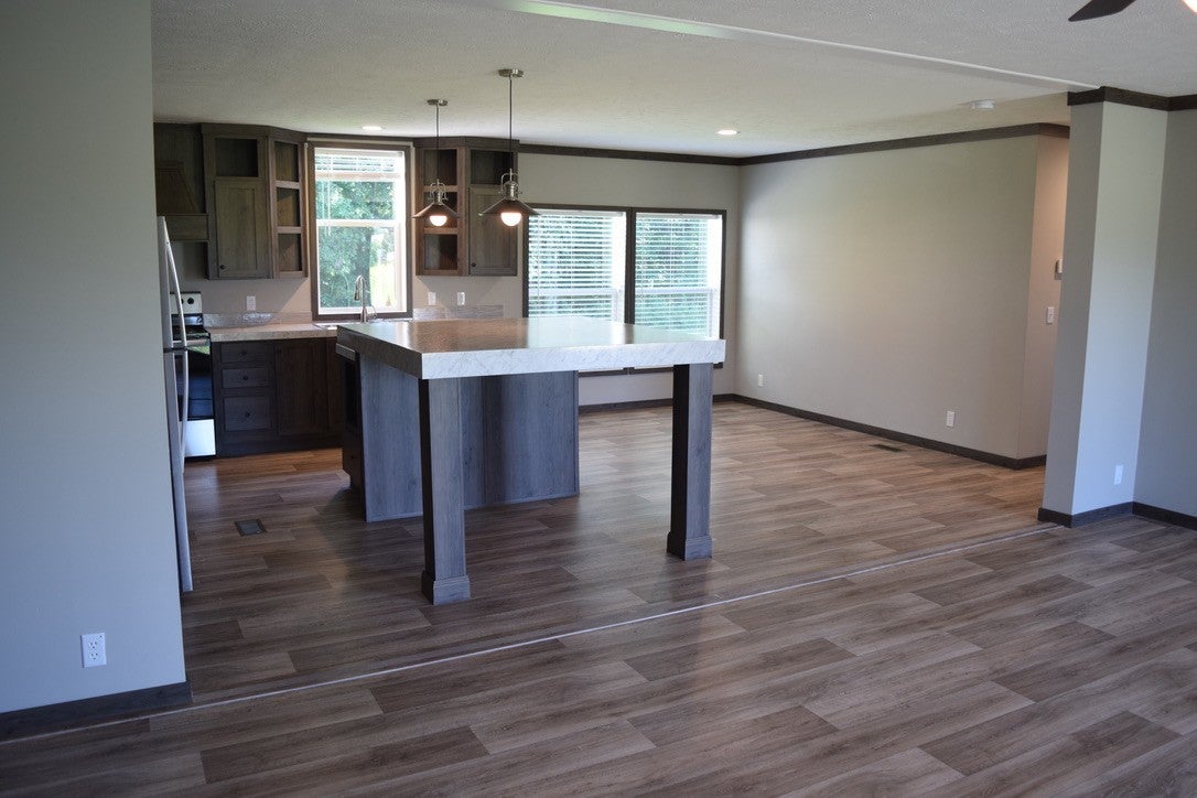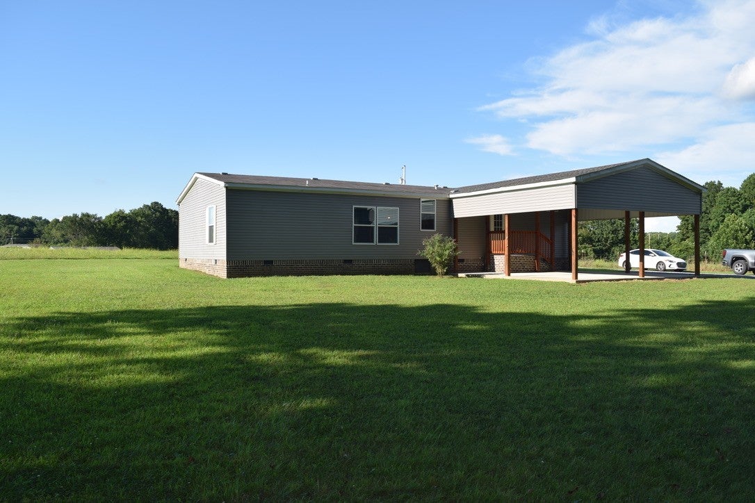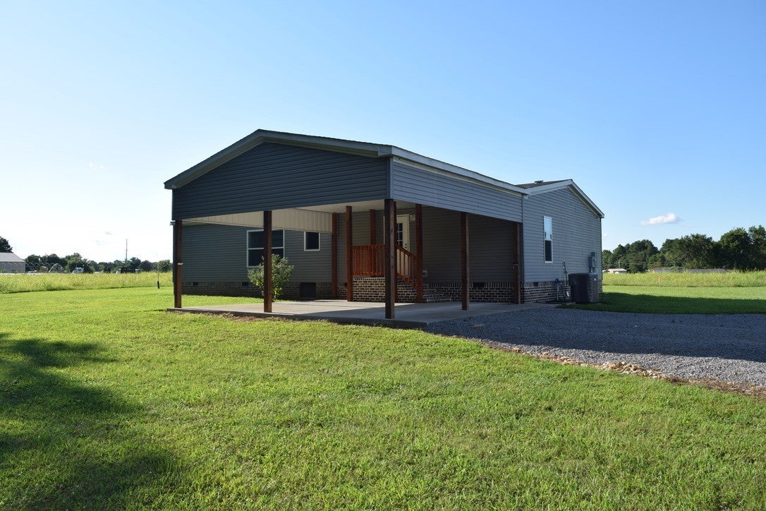 Well maintained 1680 sq ft manufactured home on 2.17 recently subdivided acres with a 19 x 9 covered front porch and 24 x 24 single car attached carport. This open concept home is carpet free featuring a large living room with an eat-in kitchen/ dining combination. Stainless appliances in the kitchen remain as do the washer and dryer in utility. Utility room has a pass through cabinet to the primary bath as well as ample built in storage and mop sink. The primary bedroom suite has a large walk in closet, double vanity in the bath, as well as a tile shower. Home also has large 2nd and 3rd bedrooms both with walk-in closets. Home has 2x6 exterior walls, 33-19-11 insulation package and is a full finish drywall hybrid (not in closets or utility).