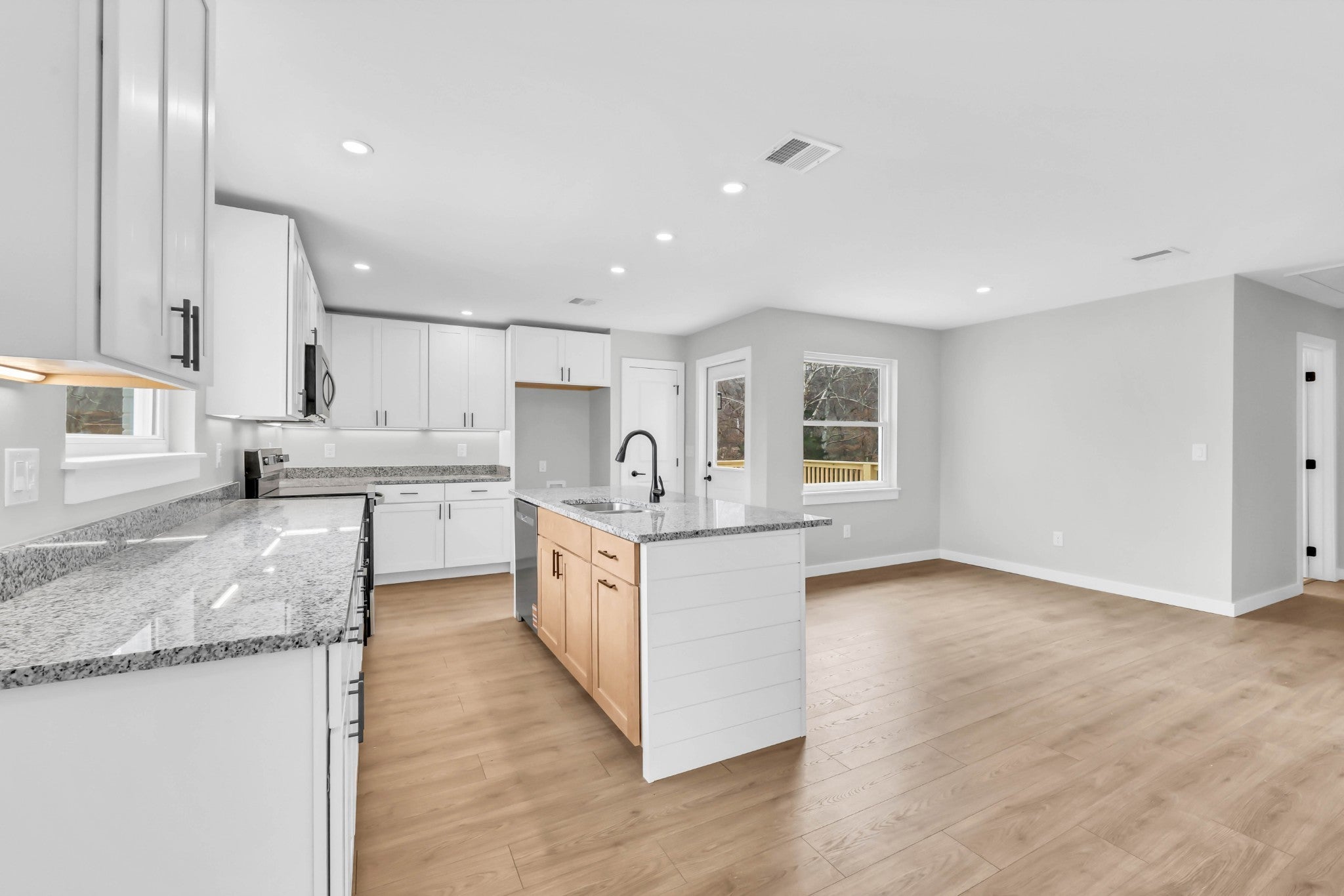 Complete renovation near Fort Campbell, top to bottom! This 4 bedroom/3 bath home was stripped down to a shell and rebuilt with a modern floorplan and high end finishes. Granite counters in the kitchen PLUS a pantry PLUS tons of extra cabinets make space feel spacious with plenty of storage. Low maintenance, all brick exterior. Master suite with walk in closet, oversized glass door shower, and double vanities. VA/FHA ready! The basement has a built-in storm shelter, full bath, and a family room with a cool coffered ceiling. Out back there's a big shed that will remain and a covered tool shed. The lot backs up to a wet-weather creek. Situated within Dover city limits in an established neighborhood with large lots and no through traffic.