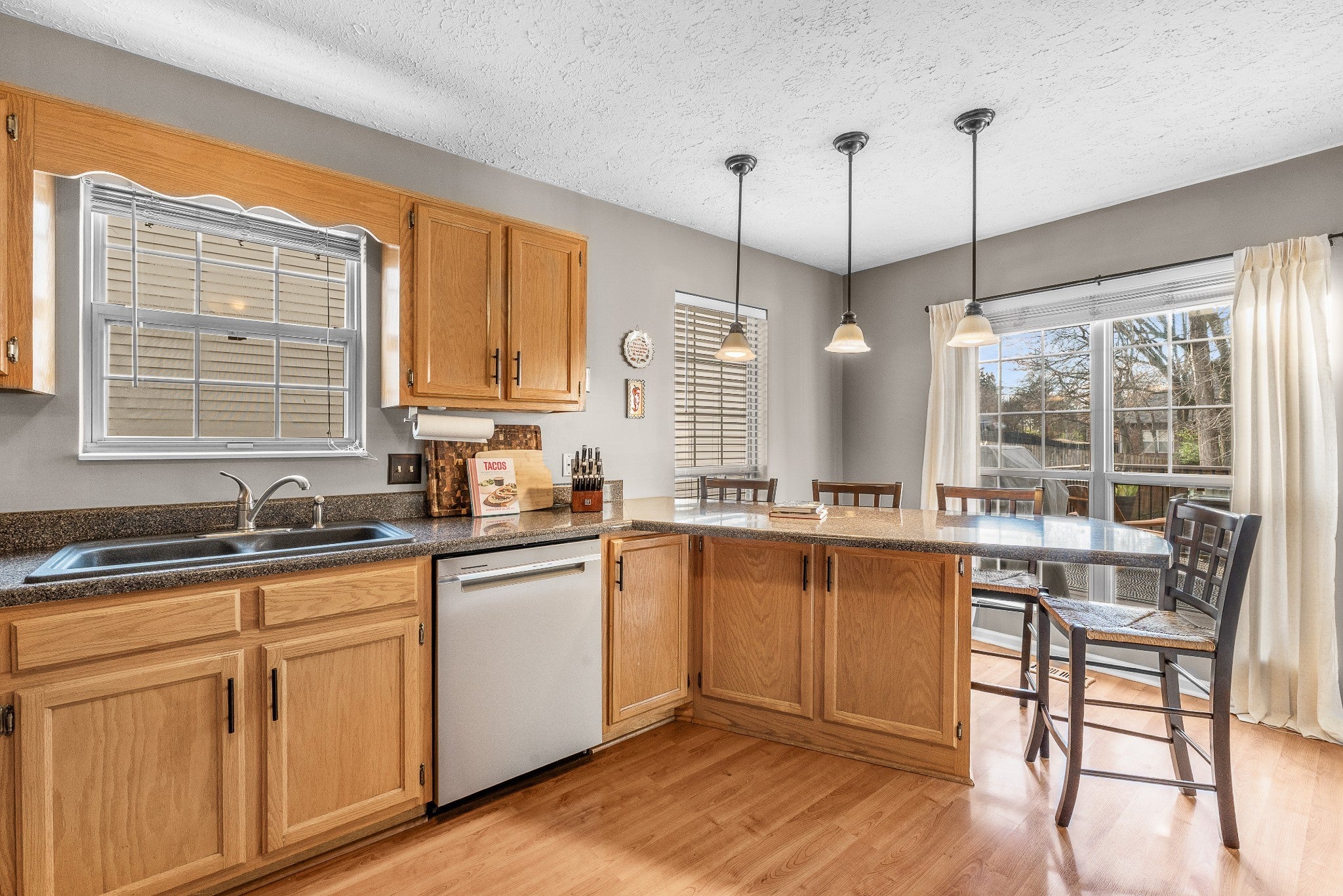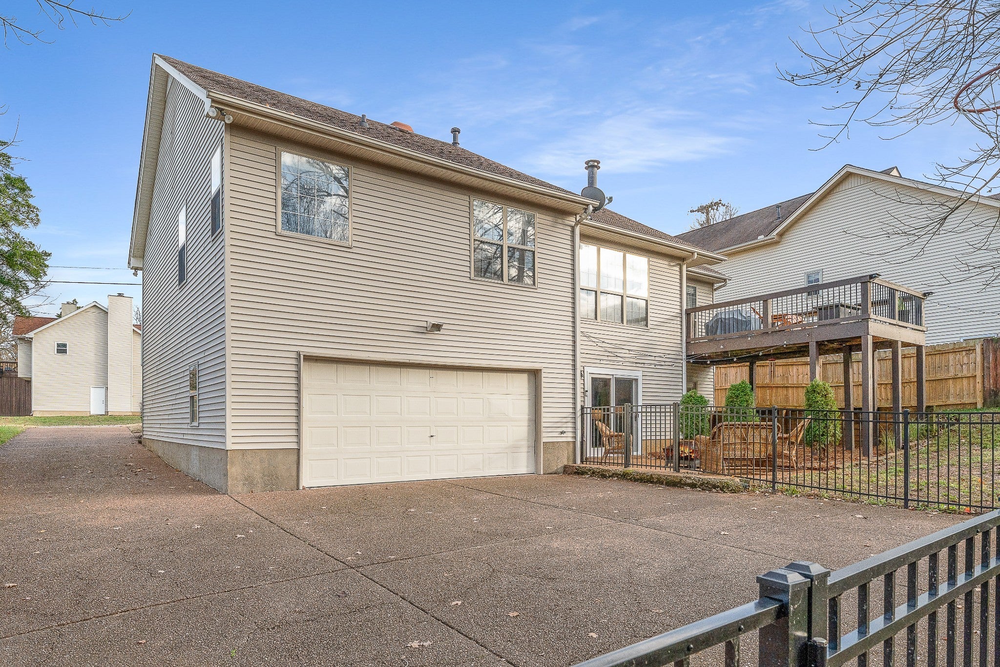 Step into this spacious, light-filled home designed for easy living and effortless entertaining. The living room features a cozy gas fireplace and opens beautifully to the kitchen, which offers bar seating and a pantry. A separate formal dining room with a built-in coffee bar niche adds the perfect touch for hosting. The primary suite includes vaulted ceilings, double vanities, a soaking tub, and a separate shower, while secondary bedrooms provide plenty of space and comfort. The lower level delivers incredible flexibility with a full bedroom, full bath, and bonus area—an ideal setup for in-law or teen quarters. The attached 2-car garage adds ample parking and workshop potential, running the depth of the home. Outside, enjoy a fully fenced, large, private backyard—best enjoyed from the upper deck for morning coffee or evening relaxation. Enjoy all the amenities of this beautiful home and neighborhood, all just minutes from Old Hickory Lake.