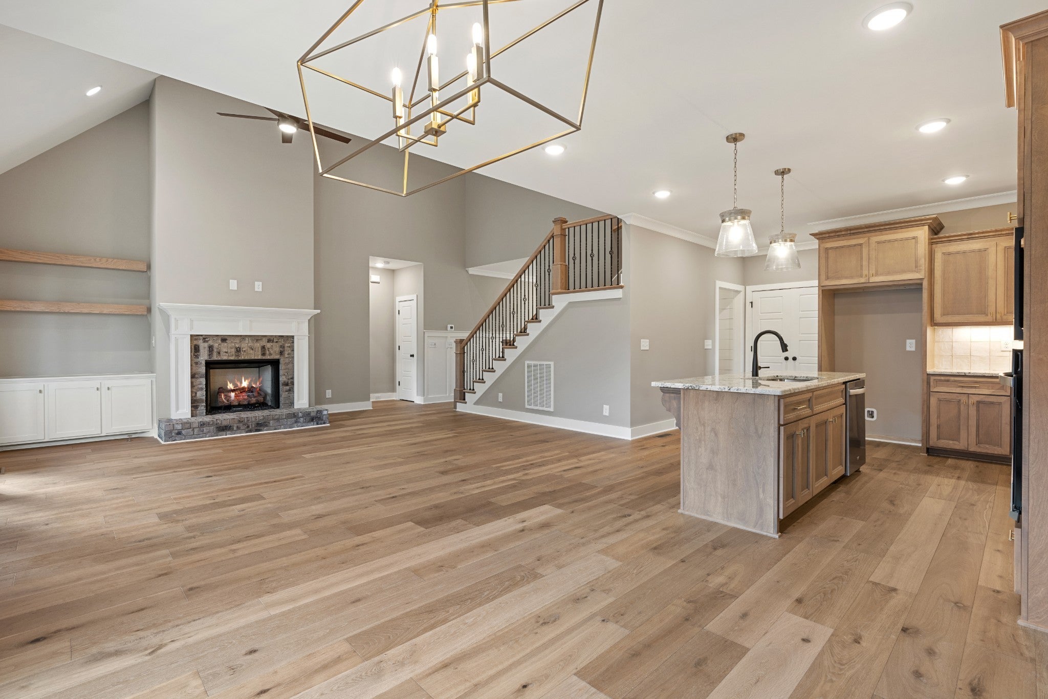 Exceptional Quality Construction by Eastland Construction Inc. $20,000 toward closing cost and/or rate buy down with Preferred Lender. Briley floor plan, Living rm w/ Hardwood Floors, Built-Ins, & Brick fireplace. Island Kitchen w/ Granite Countertops, Custom Maple Cabinets, Tile Backsplash, Hardwood Floors, Pantry, Microwave, and Dishwasher. Primary BR & BR two on Main Level with Large Bath w/ Separate Shower and Large Tub, Double Vanities, & Granite Tops, Tile in Baths and Full Utility Rm, and 21x20 Rec Rm w/ pre-wired Surround Sound, Covered Back porch and patio, Exceptional Quality Construction Throughout Home!