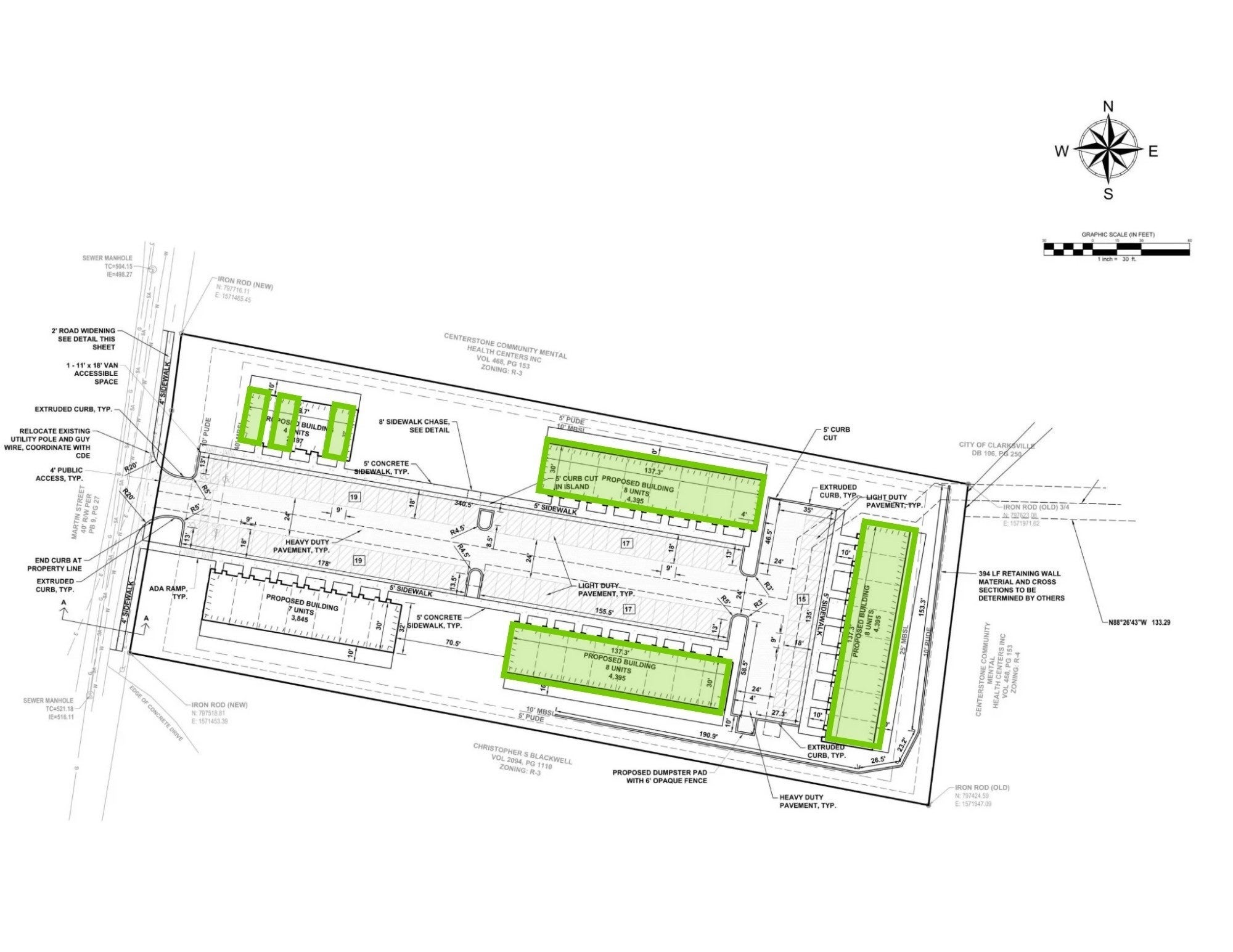Introducing Building B at Martin Place Townhomes—a fully approved, actively progressing development in the heart of Clarksville. Framing is already going vertical, providing investors the advantage of reduced build time and a faster path to revenue. Building B includes 8 modern-designed townhome units, each planned with two bedrooms featuring private en-suite bathrooms, upstairs laundry, granite countertops, stainless steel appliances, and a deck. Zoning allows short-term rentals, offering flexibility for both traditional leasing and higher-yield STR strategies. Located just minutes from downtown and the F&M Bank Arena, Building B is strategically positioned to benefit from Clarksville’s continued growth. Rent roll from Phase One, already income-producing, is available upon request to support underwriting.