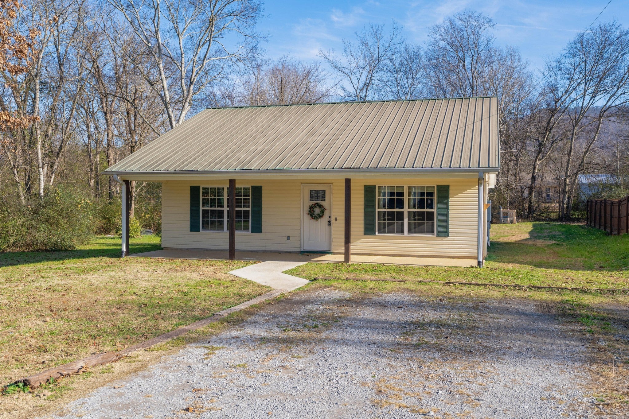 One level home in the heart of Trenton approximately 30 minutes from downtown Chattanooga. Boasting 2 bedrooms and 1 bath, the home has spacious rooms and is positioned on a nice level lot with front and back covered patios and a detached shed for extra storage. The floor plan has a nice flow with a large living room that adjoins the open kitchen and dining area with access to the laundry and back patio. The bedrooms share the use of the hall bath which has a nicely tiled shower. Recent improvements include mew interior paint, new LVP flooring in the living room and bedrooms, new baseboards, new closet doors, new vanity lights and a new back door. All of this, and you are in a USDA eligible area and enjoy Dade County taxes, so please call for more information and to schedule your private showing today. Additional photos to follow. Information is deemed reliable but not guaranteed. Buyer to verify any and all information they deem important.