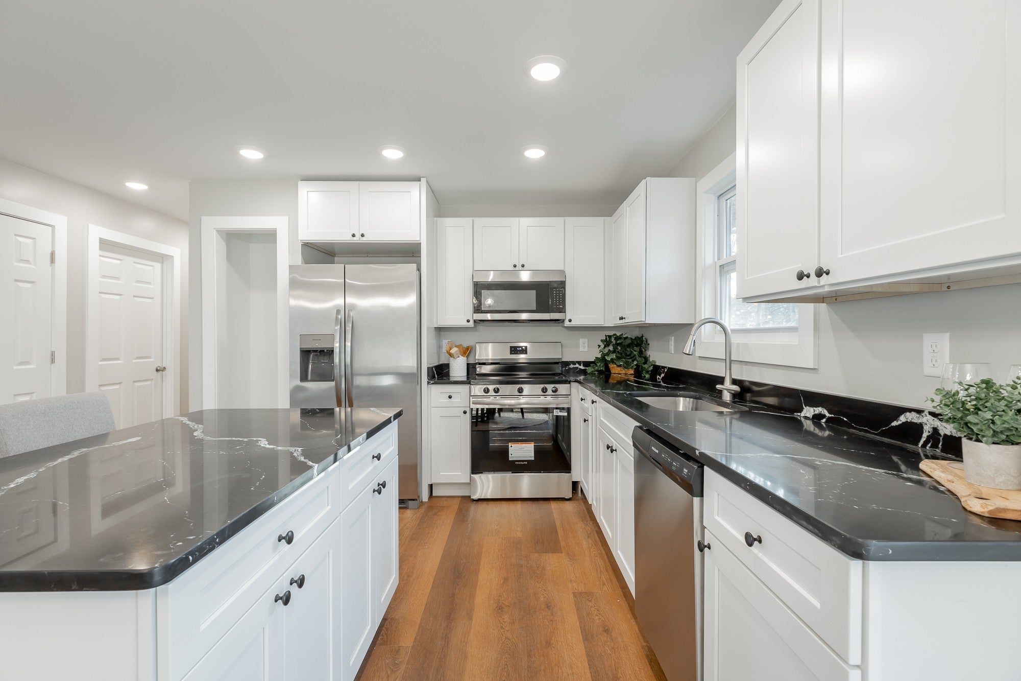 Step into a beautifully transformed home where every inch has been thoughtfully rebuilt from the studs and renewed, offering the feel of brand-new construction in a well-established neighborhood. The total square footage includes 526 sq. ft. of finished downstairs space plus the finished 2-car garage, which offers additional flexibility for storage, hobbies, workshop, or home gym use. The renovation features all-new electrical, plumbing, HVAC, insulation, windows, roof, flooring, paint, and trim to providing the reliability of a brand new home. The main level has an open living, dining, and kitchen area with all new cabinetry, countertops, appliances, and fixtures throughout. With every major system updated, this home is move-in ready and blends modern construction features with the advantages of an established location. Schedule your tour today! Buyer to verify square footage, schools, and all information.