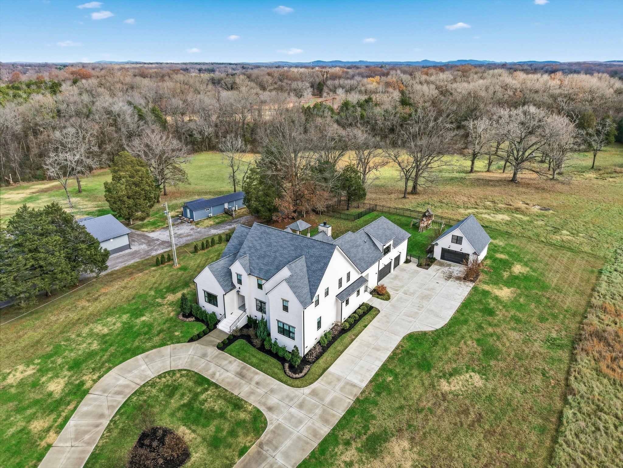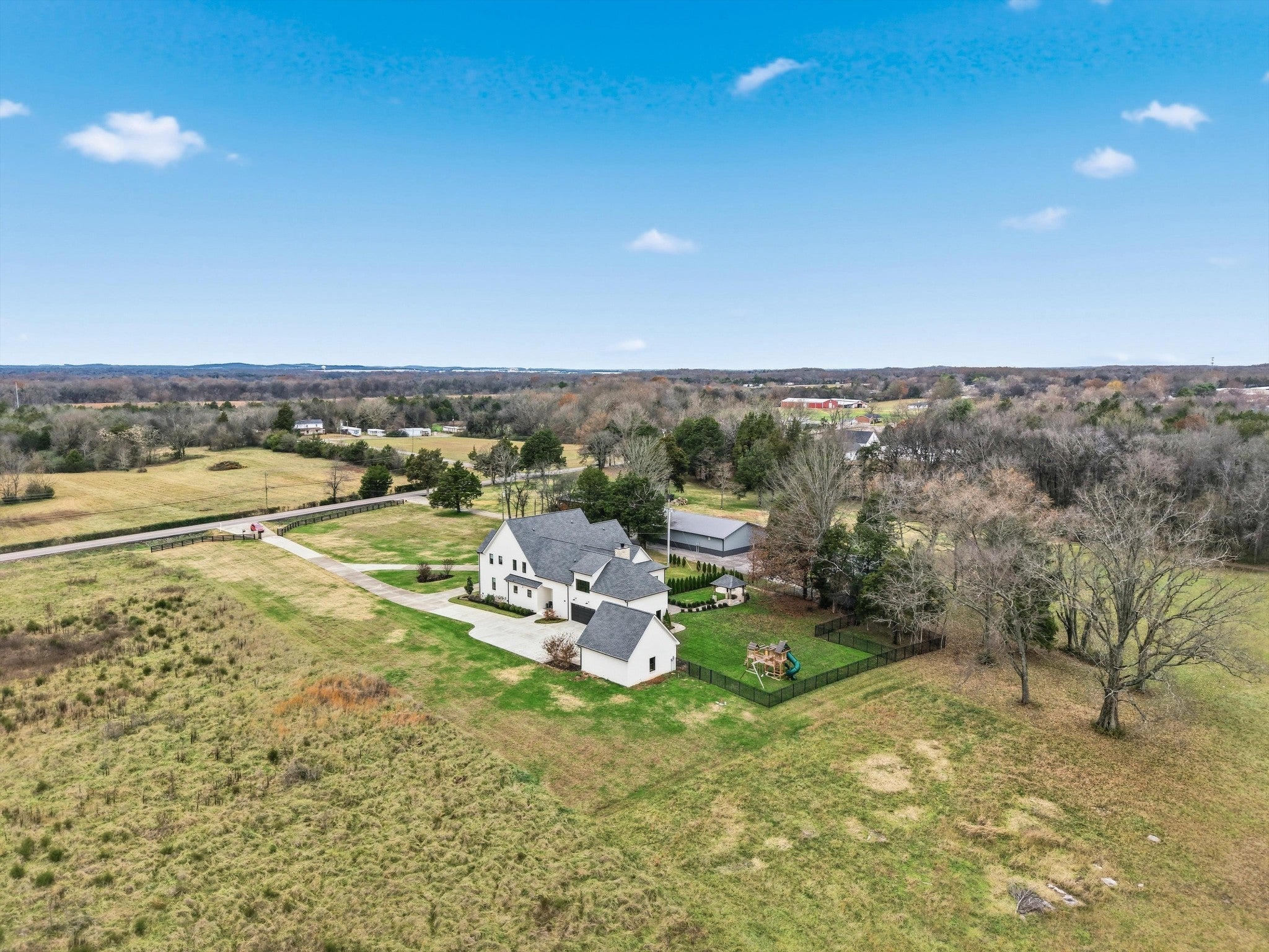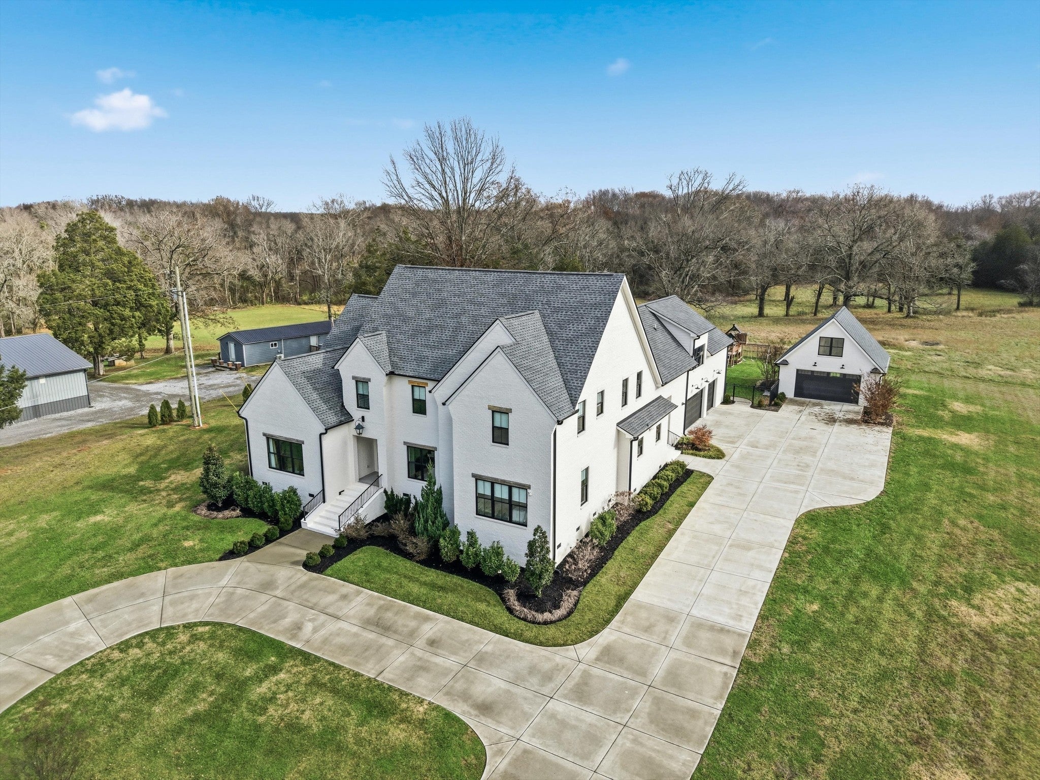 Offering 1% toward closing costs / rate buydown with our preferred lender. // Welcome to the quintessential Tennessee DREAM — a serene, private 7.4 acre homestead offering wide-open spaces, stunning craftsmanship, & the perfect blend of country charm & city convenience. Thoughtfully designed & impeccably finished, this expansive estate delivers modern luxury w/ true homestead potential. From the moment you approach the majestic gated drive & step through the iron entry, you’re greeted by ultra-high vaulted ceilings w/ massive wood beams, wide-plank white oak floors, a gorgeous stone fireplace, arched doorways, custom cabinetry, designer lighting, & an abundance of natural light at every turn. The main level feels warm & welcoming w/ a natural flow from kitchen to living area, expansive primary suite, guest suite, boutique office, & safe room. The primary suite features a beautiful vaulted ceiling w/ wood accents, a spa-like bath w/ soaking tub and dual vanities! The chef’s kitchen showcases custom white oak cabinetry, natural stone counters, & generous prep space ideal for hosting large gatherings. A massive walk-in pantry w/ jaw-dropping antique doors keeps everything clutter-free while offering incredible function w/ a built-in ice maker, microwave, refrigerator drawers, & a filtered bottle filler. A beautifully designed laundry room & central vacuum system add everyday convenience. Upstairs, a HUGE bonus room provides flexible space for a playroom, media room, hobbies, or extra sleeping quarters. Outdoors, enjoy crisp evenings by the wood-burning patio fireplace or gather around the built-in fire pit overlooking your fenced backyard. With a private well & electric pump for irrigation, abundant storage, a 5-car garage, & room for chickens or even a horse — this property truly has it all. Just a short commute to Franklin or Nashville and minutes from Murfreesboro’s shops & restaurants. This is your refined country estate with room to truly have your peace.